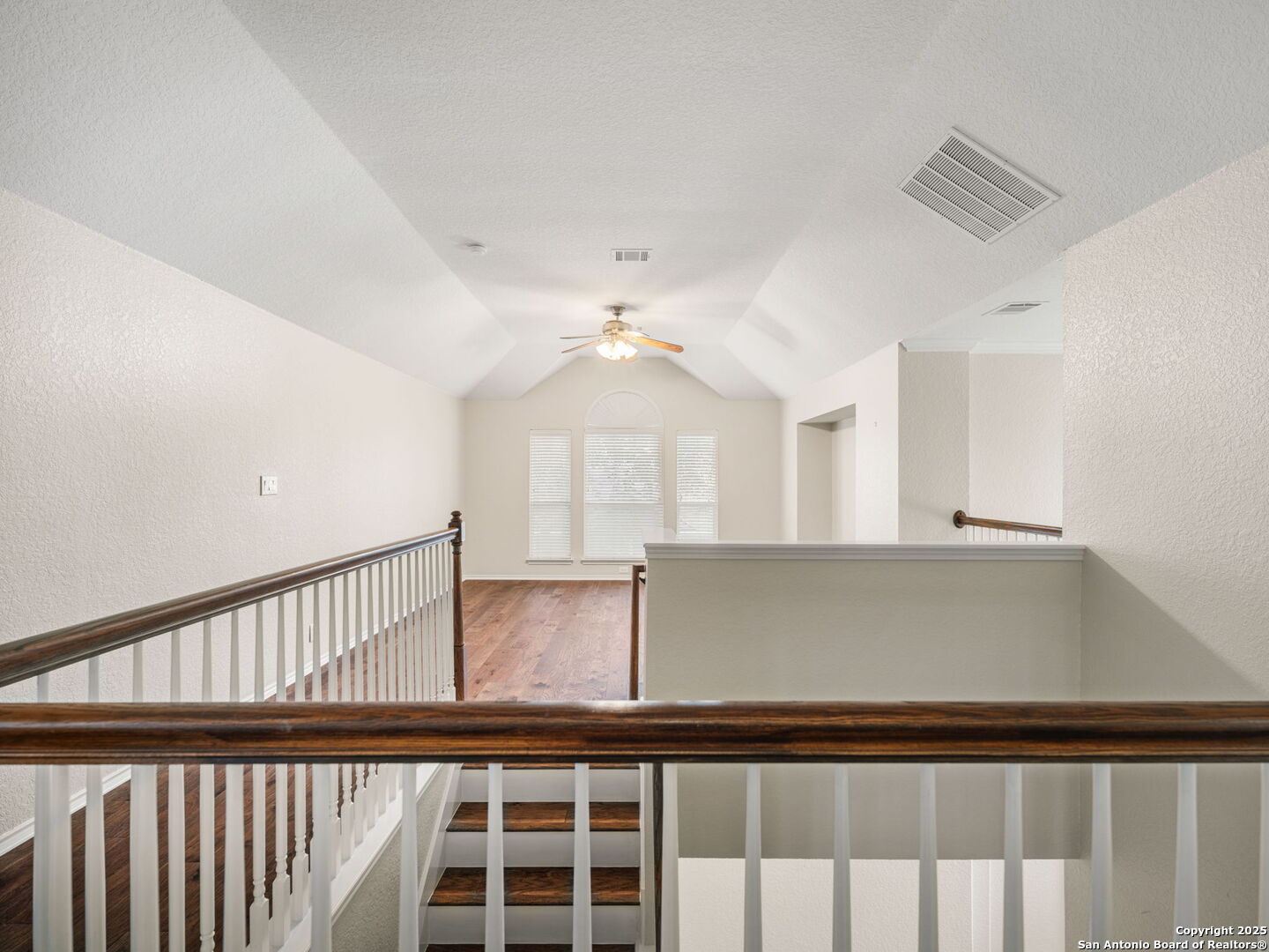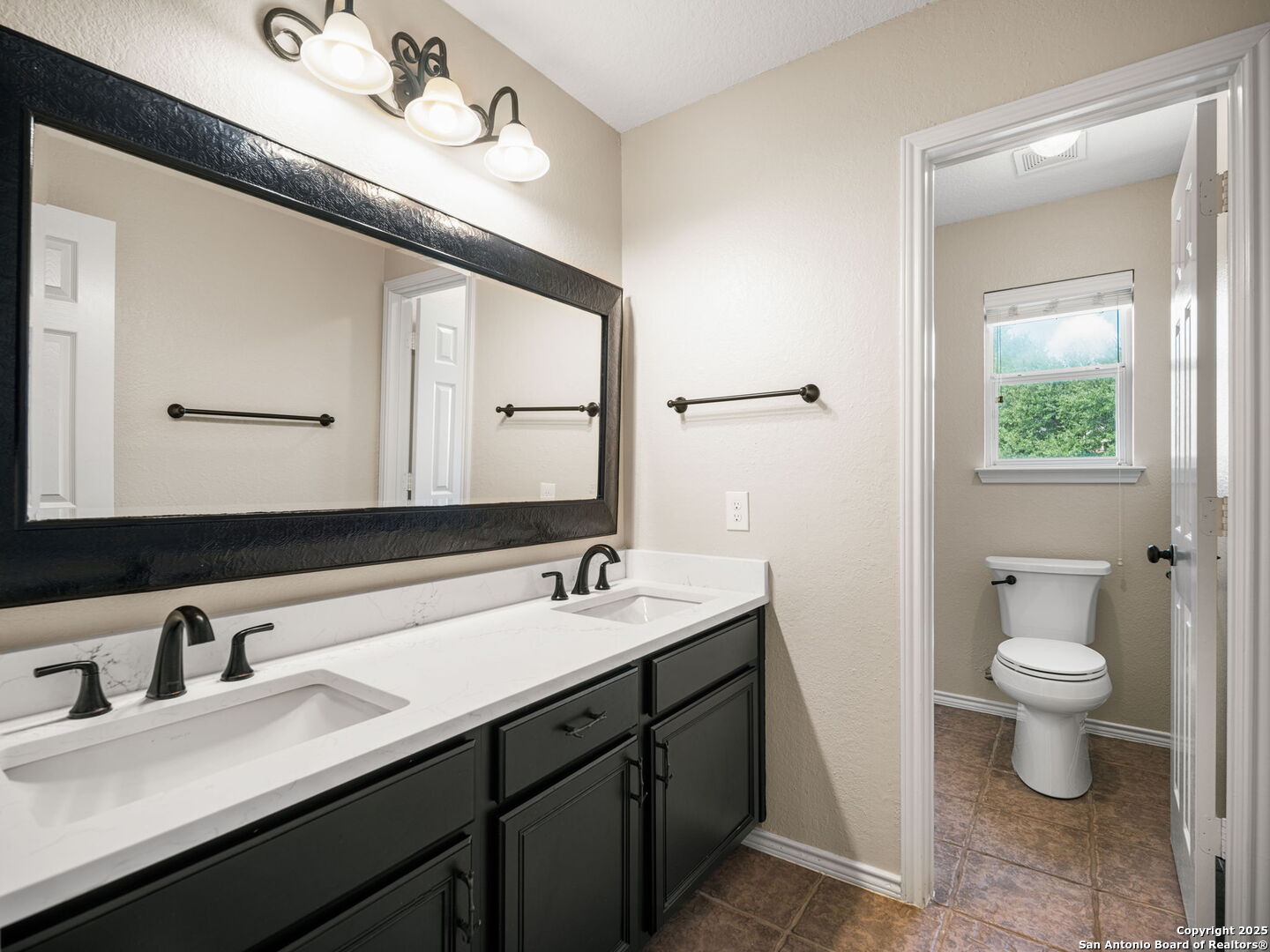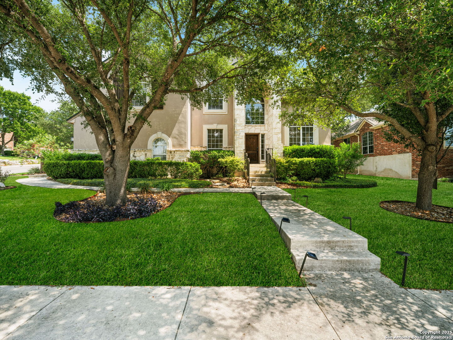**UNDER CONTRACT** Nestled on a quiet, secluded corner lot in the gated community of The Oaks at Sonterra, this stunning two-story home offers 4 beds, 3 baths, and +/- 3,471 sqft of thoughtfully designed living space. Step inside to soaring cathedral ceilings that create a bright, open feel, with generous areas for both formal and casual gatherings. At the heart of the home, the gourmet kitchen boasts a new gas range (installed September 2023), a large island, and a spacious walk-in pantry. The layout also includes a dedicated office and a loft-style entertainment area. The fully remodeled primary bathroom, completed in April 2024, showcases quartz countertops, modern fixtures, and a garden tub for a true spa-like retreat. Additional updates include polished engineered hardwood floors in the stairwells and upstairs (November 2023), plus refreshed bathrooms with new sinks and stylish finishes. Enjoy a seamless indoor-outdoor connection with backyard views from the breakfast nook. As a resident of Sonterra, you'll have access to the private Club at Sonterra, featuring multiple golf courses, a 25-meter outdoor pool, fitness center, and a Kid's Club-perfect for family-friendly activities. Conveniently located near Loop 1604 and Highway 281, this home is minutes from highly rated schools, premium shopping at Costco, Trader Joe's, and Whole Foods, plus an array of fine dining options. North East ISD. Welcome home!