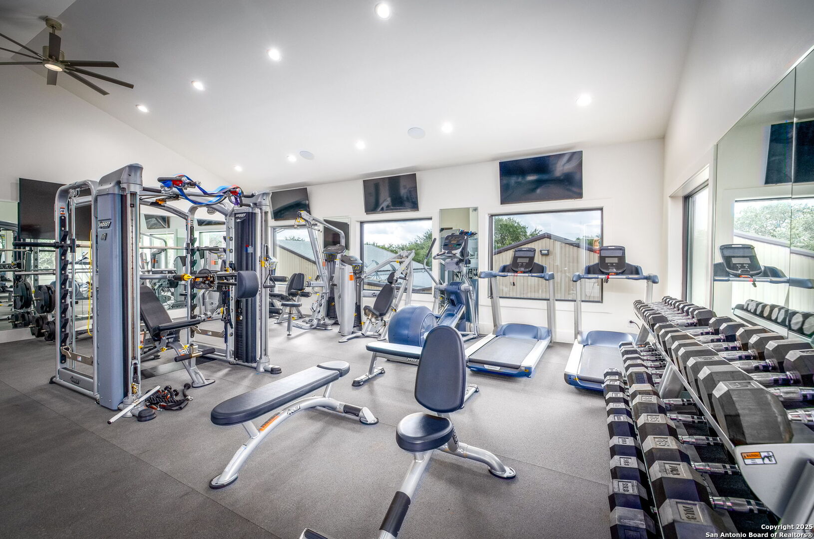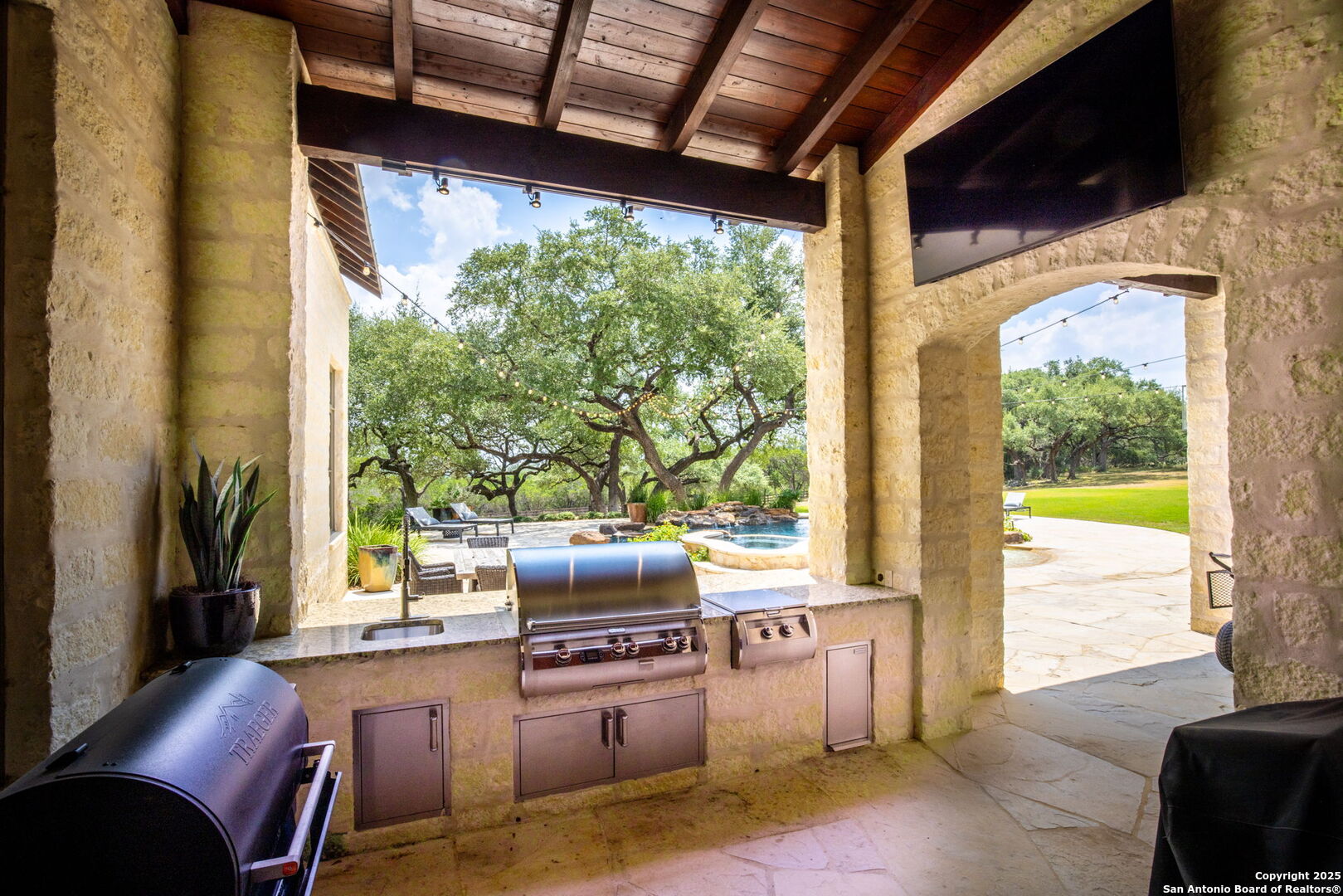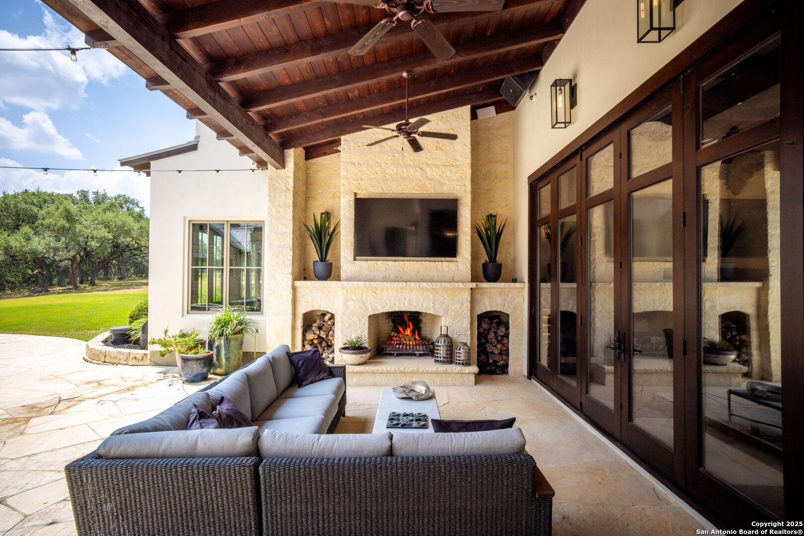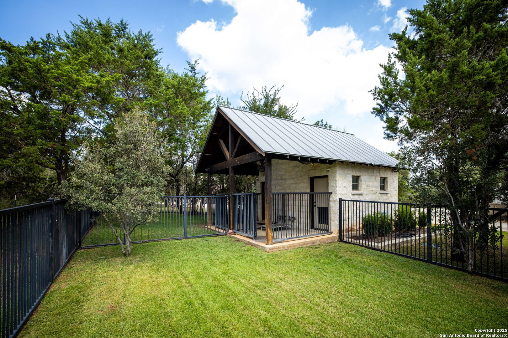 Welcome to this breathtaking property nestled on 19.59 acres of land. This slice of paradise offers an incredible array of features and amenities that will make you fall in love with it. The property includes a main residence with attached garage, kennel house, air conditioned shop/garage with full bathroom, climate controlled RV barn and additional garages, complete gym with full bathroom. and RV barn. As you arrive through the private gated grounds, you'll be greeted by a magnificent main house spanning 5,715 square feet. This spacious and elegant residence boasts ample rooms for comfortable living and entertaining. The thoughtfully designed layout provides a seamless flow between the living spaces, allowing for effortless everyday living with 3 Bedrooms, 3.5 Bathrooms, 2 living rooms, game room, 2 offices, double island kitchen, 2 eating areas, full size bar, walk in pantry/laundry area downstairs and laundry room upstairs. The master bedroom has large windows overlooking the pool, making it bright and relaxing. With spacious dual sinks, comfortable counter area with coffee bar and mini fridge, a deep jet tub for soaking, and a large tile shower with glass doors. The whole space is designed for comfort, convenience, and a pleasant view. The back yard private oasis is spectacular setting for entertaining or just soaking up hill country living. A state-of-the-art kennel facility purposefully designed for the boarding and meticulous care of treasured canine companions. For those who appreciate craftsmanship and functionality, this property features two massive shop areas. These fully insulated structures are equipped with electricity, making them ideal for various uses such as storage, workshops, or even converting them into additional living spaces. The entire property is controlled by a Crestron automation system as well as hooked up to a back up generator. More information can be obtained on the state of art Crestron system, fencing qualities, electrical/generator, wildlife exemption and additional features located in RV and storage buildings.