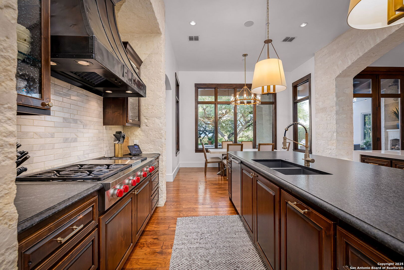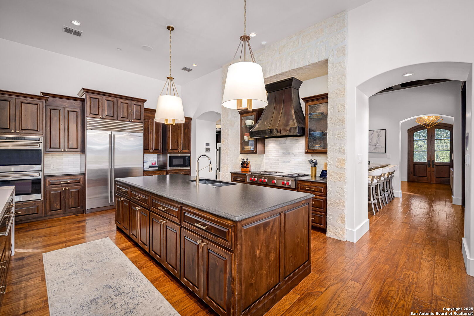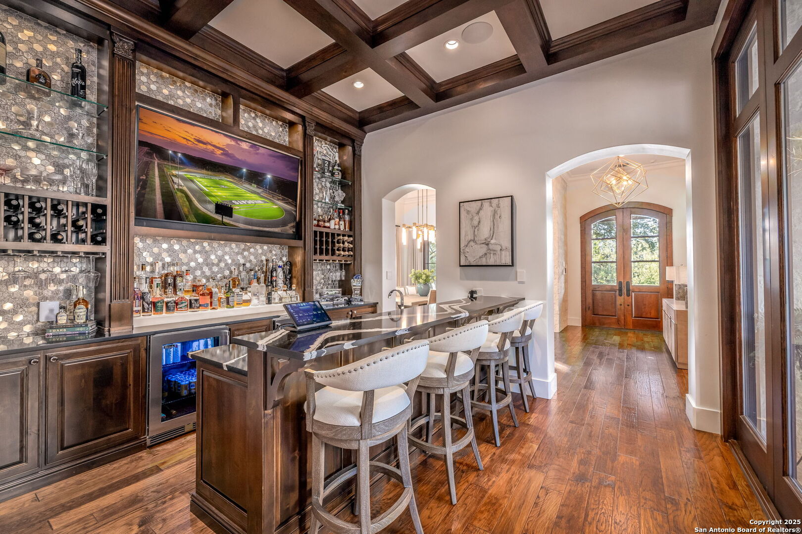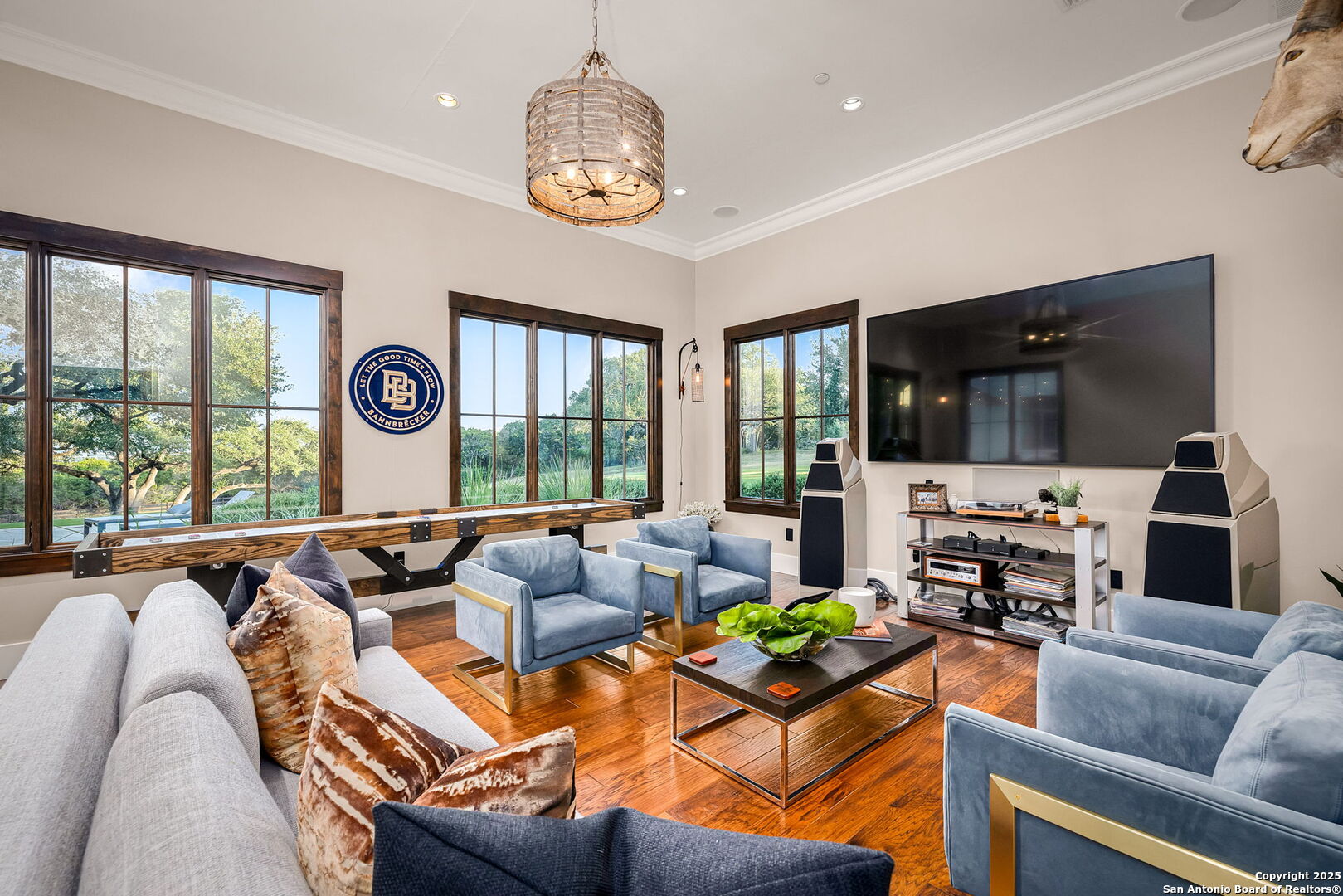 Welcome to this breathtaking property nestled on 19.59 acres of land. This slice of paradise offers an incredible array of features and amenities that will make you fall in love with it. The property includes a main residence with attached garage, kennel house, air conditioned shop/garage with full bathroom, climate controlled RV barn and additional garages, complete gym with full bathroom. and RV barn. As you arrive through the private gated grounds, you'll be greeted by a magnificent main house spanning 5,715 square feet. This spacious and elegant residence boasts ample rooms for comfortable living and entertaining. The thoughtfully designed layout provides a seamless flow between the living spaces, allowing for effortless everyday living with 3 Bedrooms, 3.5 Bathrooms, 2 living rooms, game room, 2 offices, double island kitchen, 2 eating areas, full size bar, walk in pantry/laundry area downstairs and laundry room upstairs. The master bedroom has large windows overlooking the pool, making it bright and relaxing. With spacious dual sinks, comfortable counter area with coffee bar and mini fridge, a deep jet tub for soaking, and a large tile shower with glass doors. The whole space is designed for comfort, convenience, and a pleasant view. The back yard private oasis is spectacular setting for entertaining or just soaking up hill country living. A state-of-the-art kennel facility purposefully designed for the boarding and meticulous care of treasured canine companions. For those who appreciate craftsmanship and functionality, this property features two massive shop areas. These fully insulated structures are equipped with electricity, making them ideal for various uses such as storage, workshops, or even converting them into additional living spaces. The entire property is controlled by a Crestron automation system as well as hooked up to a back up generator. More information can be obtained on the state of art Crestron system, fencing qualities, electrical/generator, wildlife exemption and additional features located in RV and storage buildings.