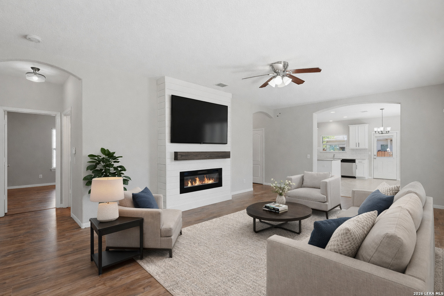 Welcome to 1951 Barn Swallow! A move-in ready, single-story home offering comfort, confidence, and exceptional value. Featuring 3 bedrooms, 2 full bathrooms, and 1,560 square feet of thoughtfully designed living space. The updated kitchen serves as the centerpiece of the home, opening into a warm and inviting living area highlighted by a stylish built-in fire glass fireplace. Natural light fills the space, creating an inviting atmosphere throughout. The fenced backyard offers a covered patio along with an extended patio. Residents also enjoy community amenities including a neighborhood pool and playground. Conveniently located near shopping, dining, and commuter routes, Schedule your showing today and discover everything this New Braunfels home has to offer.