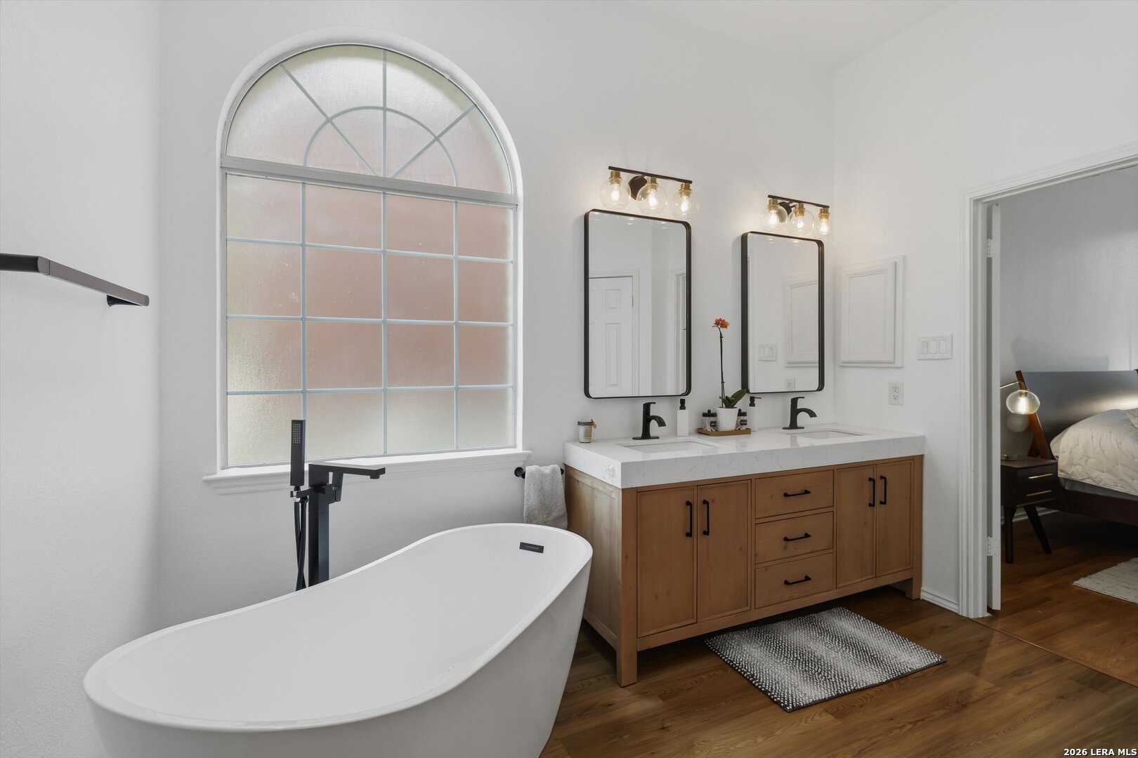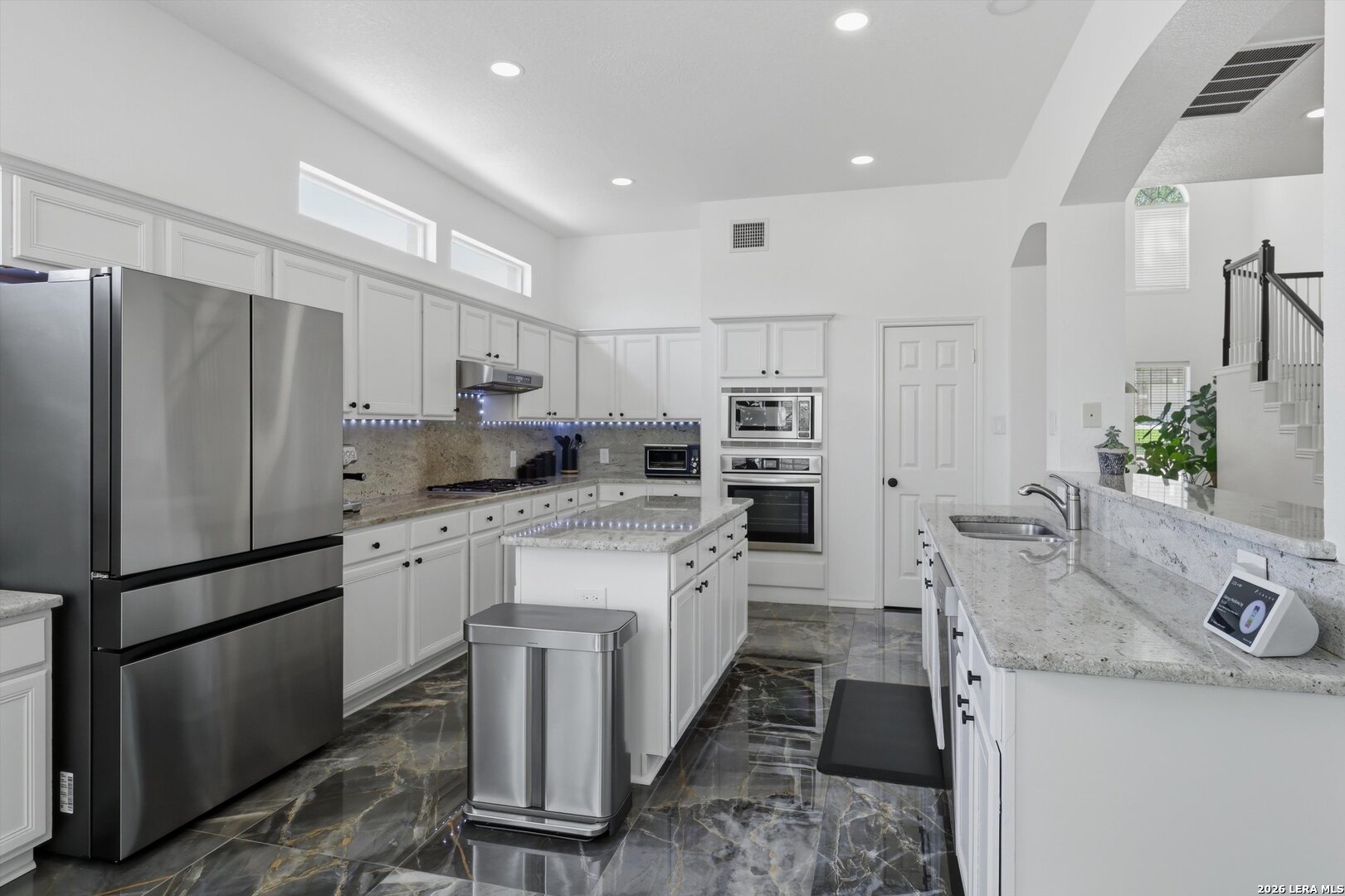 Amazing, move in ready home in pristine condition, offering 2,971 square feet with 4 bedrooms and 3.5 bathrooms, located on a cul-de-sac in the heart of Stone Oak within the exclusive Sonterra community with controlled access. This beautifully maintained 4 side brick property features an open and spacious floor plan with high ceilings and abundant natural light throughout. Recently painted, with updated flooring throughout and renovated bathrooms, offering a modern and inviting feel. The oversized primary suite provides a comfortable retreat. Upstairs, you'll find a spacious game room, perfect for additional living or entertainment space. Enjoy the oversized deck, ideal for relaxing or hosting gatherings. Additional features include smart LED lighting with customizable color settings, controlled via mobile app, sprinkler system, and water softener. Prime location with convenient access to top-rated schools, shopping, and dining.