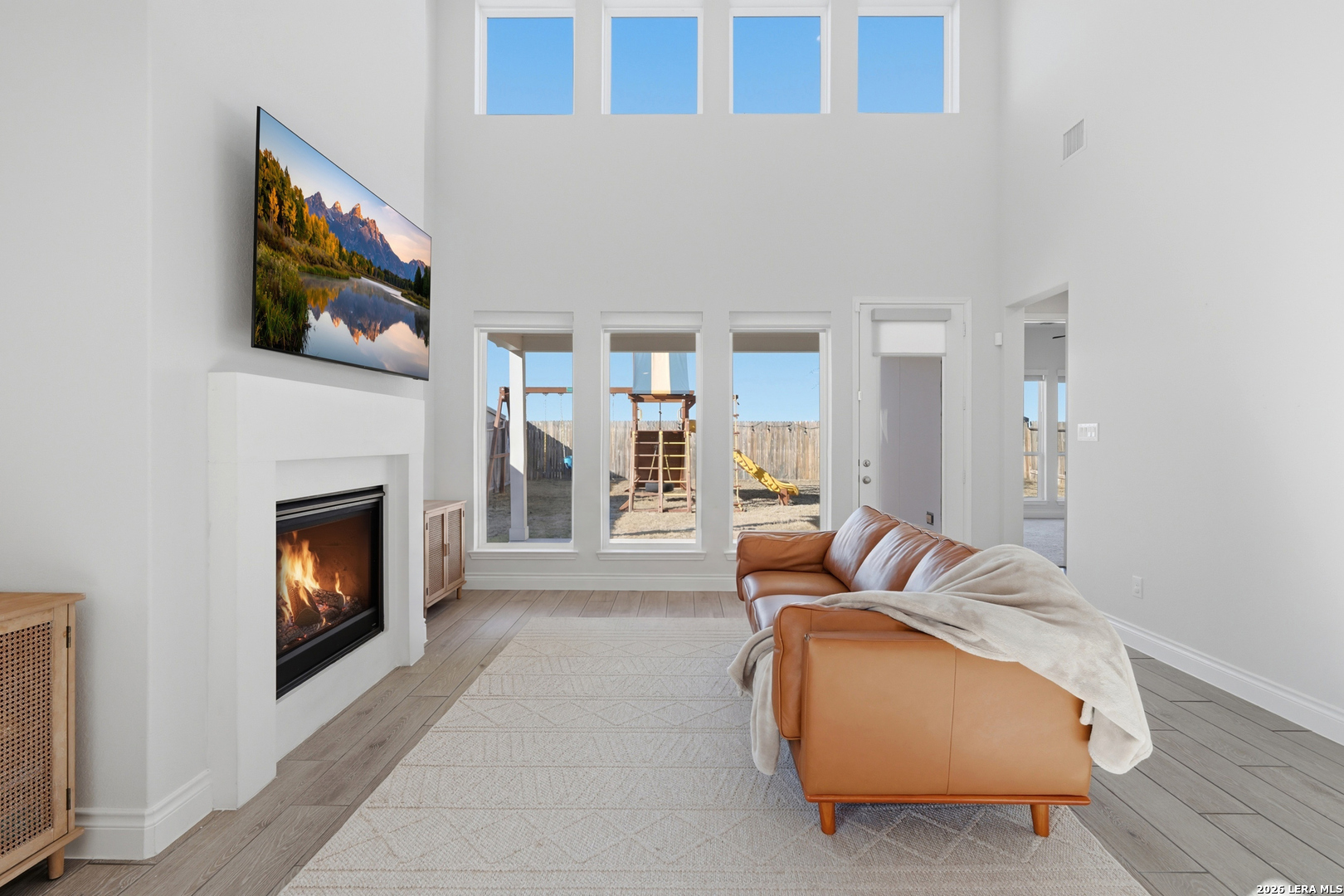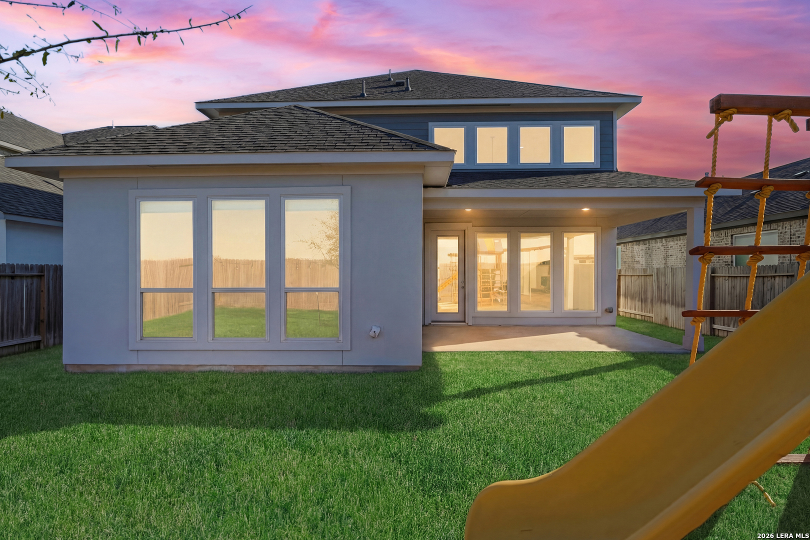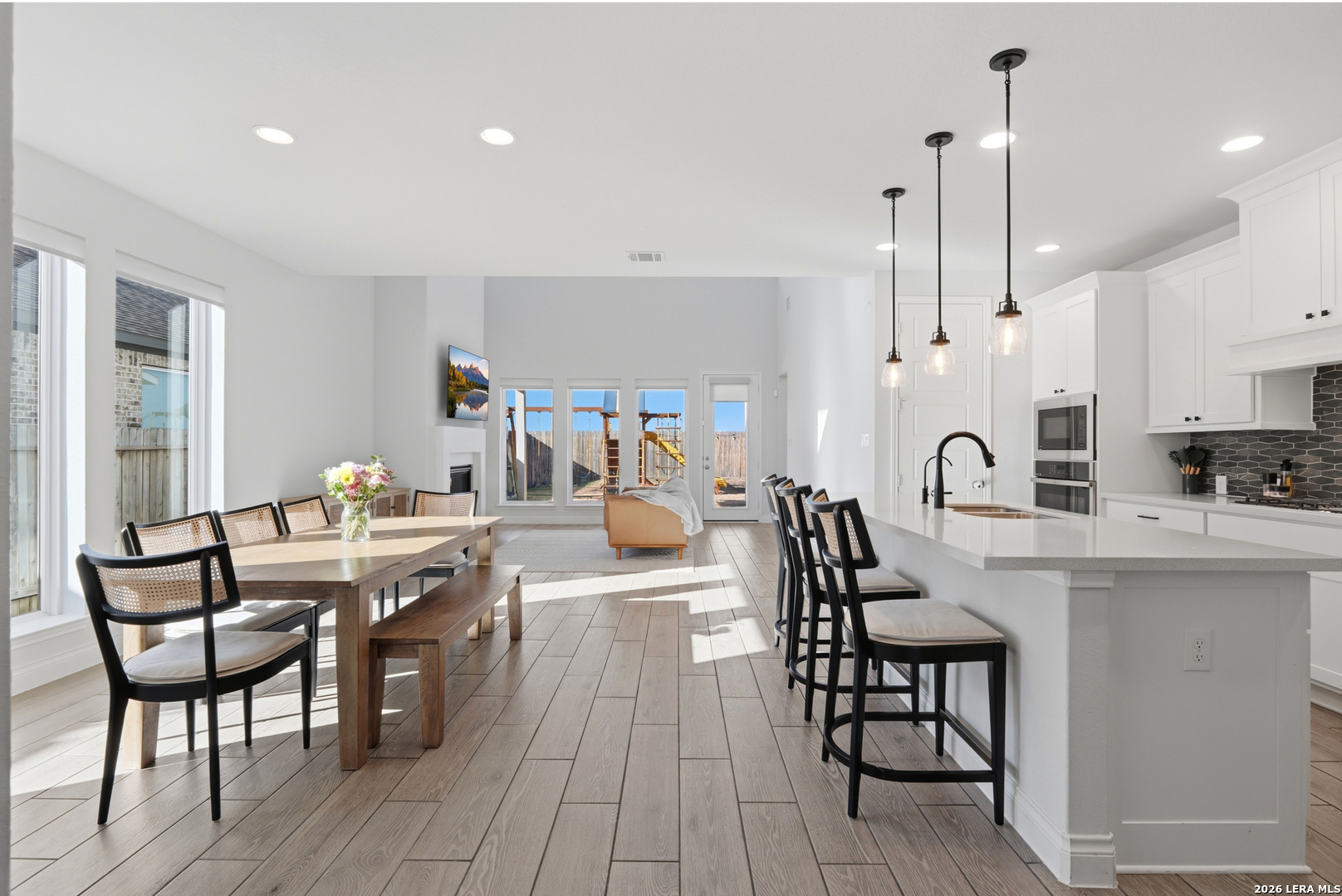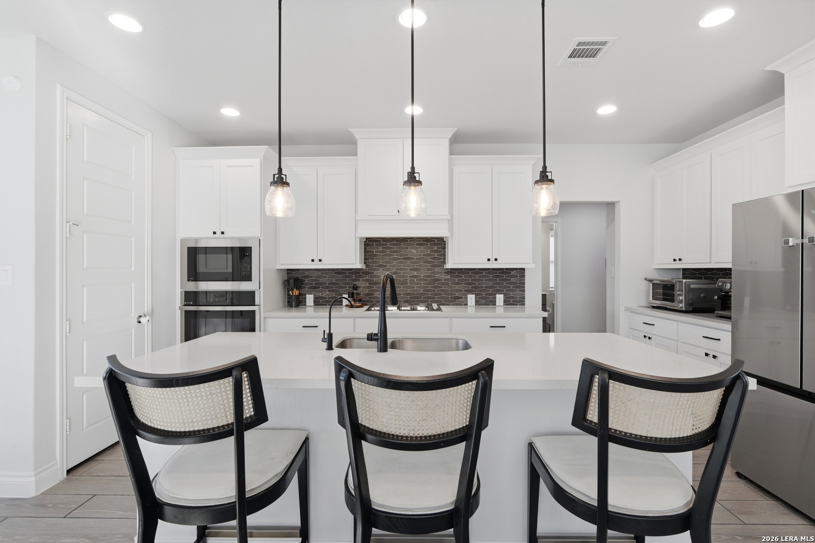 Perfectly located just minutes from New Braunfels and Lake McQueeney, and zoned to the highly desirable Navarro ISD, this stunning home offers the best of location, luxury, and value. Completed in December 2022, this recently built home gives you everything you'd want in new construction, at a fraction of the price, with all major components practically brand new. As you arrive, you're immediately welcomed by a beautiful stucco exterior that extends to all four sides, a rare and valuable upgrade in today's new builds. Step inside and prepare to be impressed by soaring 20-foot ceilings and upgraded tile flooring throughout the entire first floor, setting the tone for the elevated design throughout. To your immediate left, you'll find a versatile office/game room flex space with elegant double doors, perfect for working from home or creating a private retreat. Just beyond is the spacious laundry room. The exposed stair railing and open catwalk above add a modern architectural touch that enhances the home's open-concept feel. The kitchen is truly a chef's dream! Featuring abundant quartz countertop space, ample cabinetry, built-in appliances that elevate the design, a 4-burner gas cooktop, and an incredible walk-in pantry. This space was made for entertaining and everyday living. The dining area sits just off the kitchen, surrounded by beautiful windows that flood the space with natural light. The living room is nothing short of breathtaking, highlighted by 20-foot ceilings, an abundance of windows, and a built-in electric fireplace that creates the perfect focal point. For added convenience and comfort, windows in the living room and dining area include electric blinds. The primary suite is privately located on the first floor and generously sized. The spa-like primary bathroom features a separate soaking tub, walk-in shower, dual vanities, and one of the best features, separate his and hers walk-in closets. Also on the first floor is a secondary bedroom with a full bathroom, making it ideal for a mother-in-law suite or a private guest room. Upstairs, you'll find an expansive loft overlooking the main living area, along with two additional generously sized bedrooms that share a full bathroom, offering plenty of space for family or guests. Step outside to enjoy a spacious backyard with an extended covered patio complete with a gas line ready for hosting BBQs and gatherings. With no back neighbors, you'll enjoy added privacy and peaceful views. To top it off, the home includes a water softener system and reverse osmosis system, already installed and ready to go. This home truly checks every box. Don't miss your opportunity to see it before it's gone!