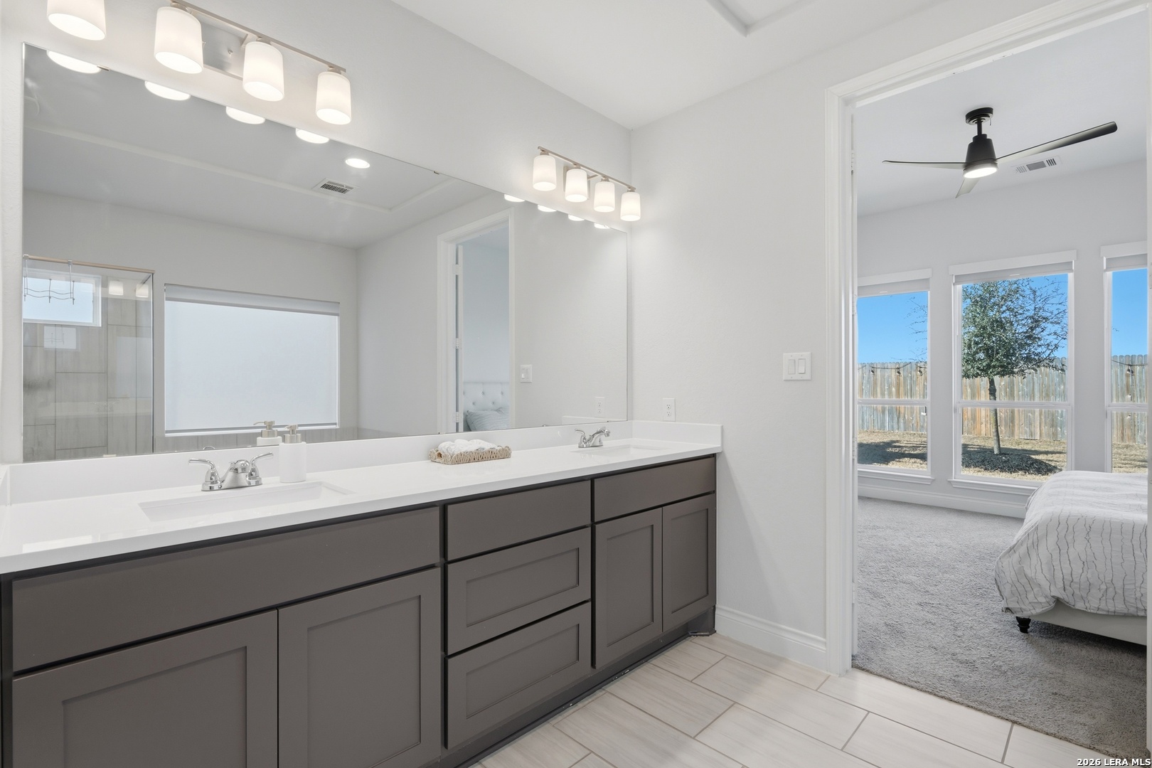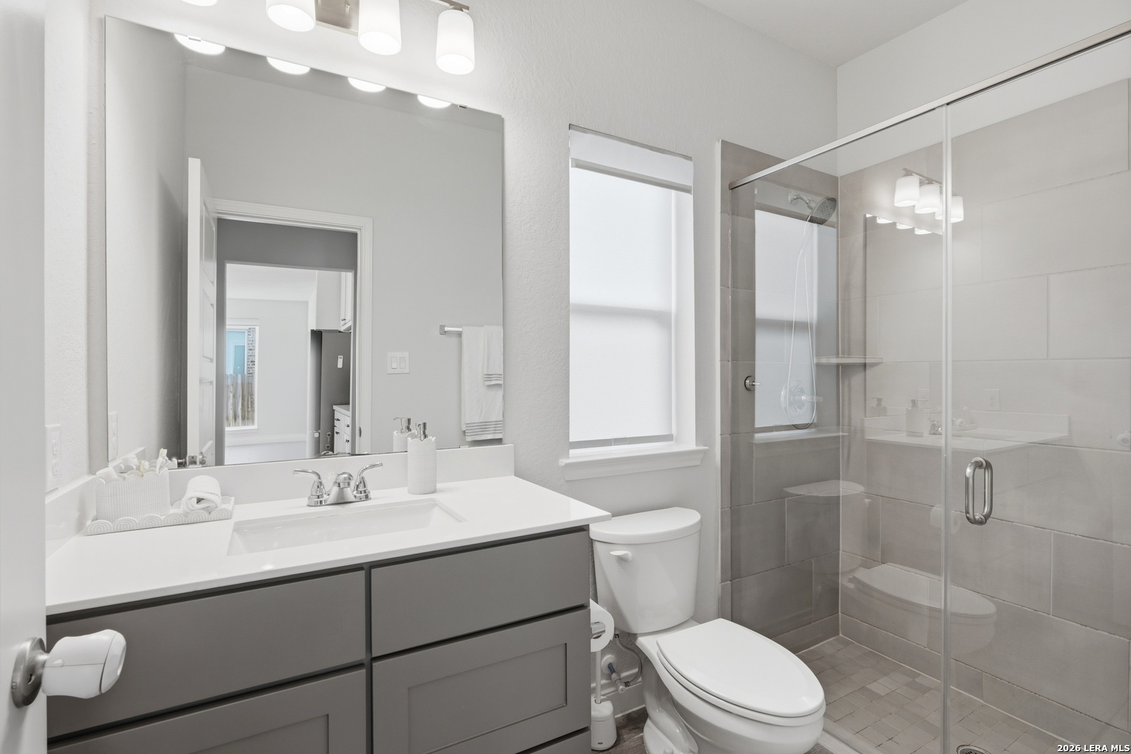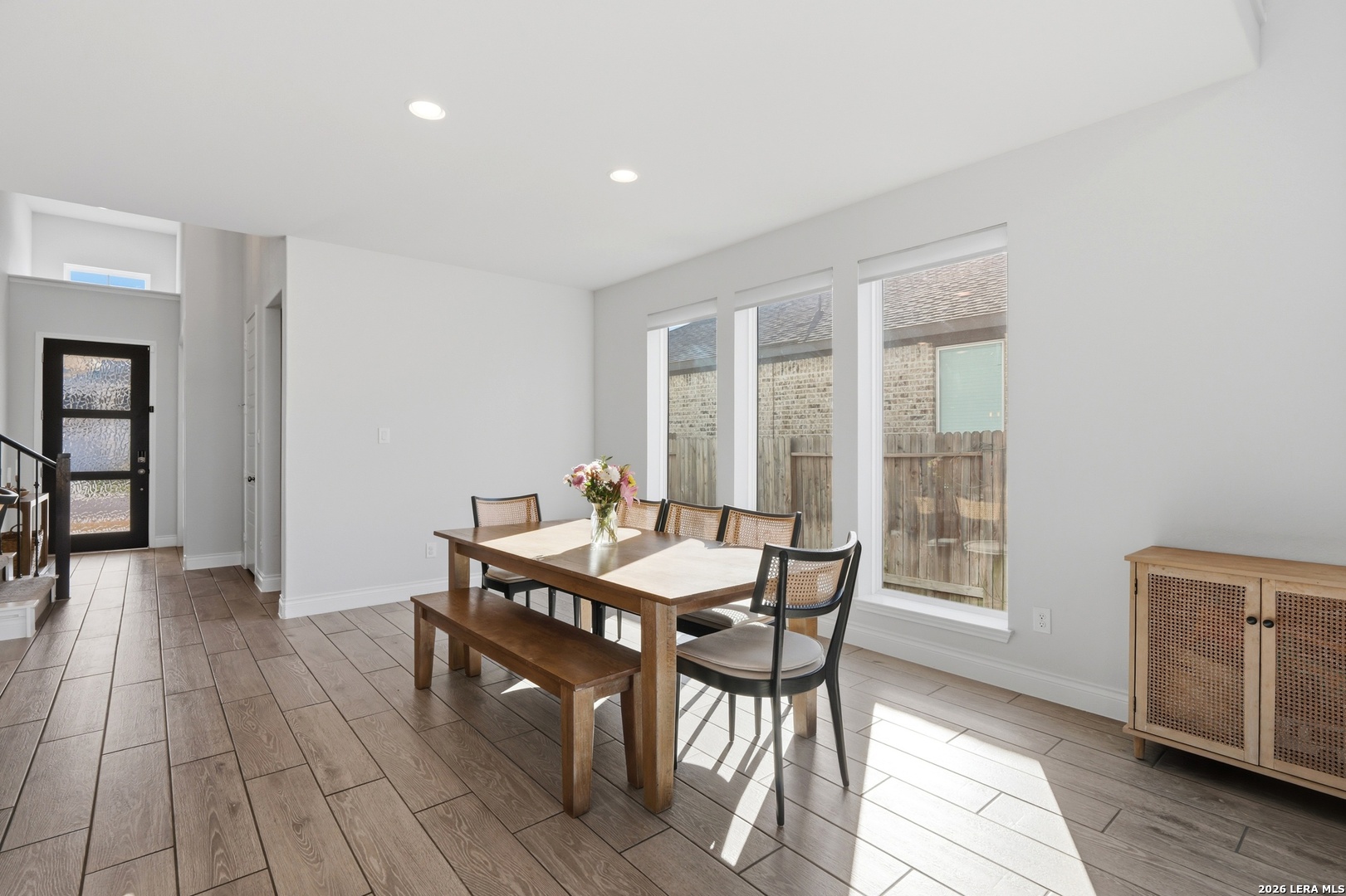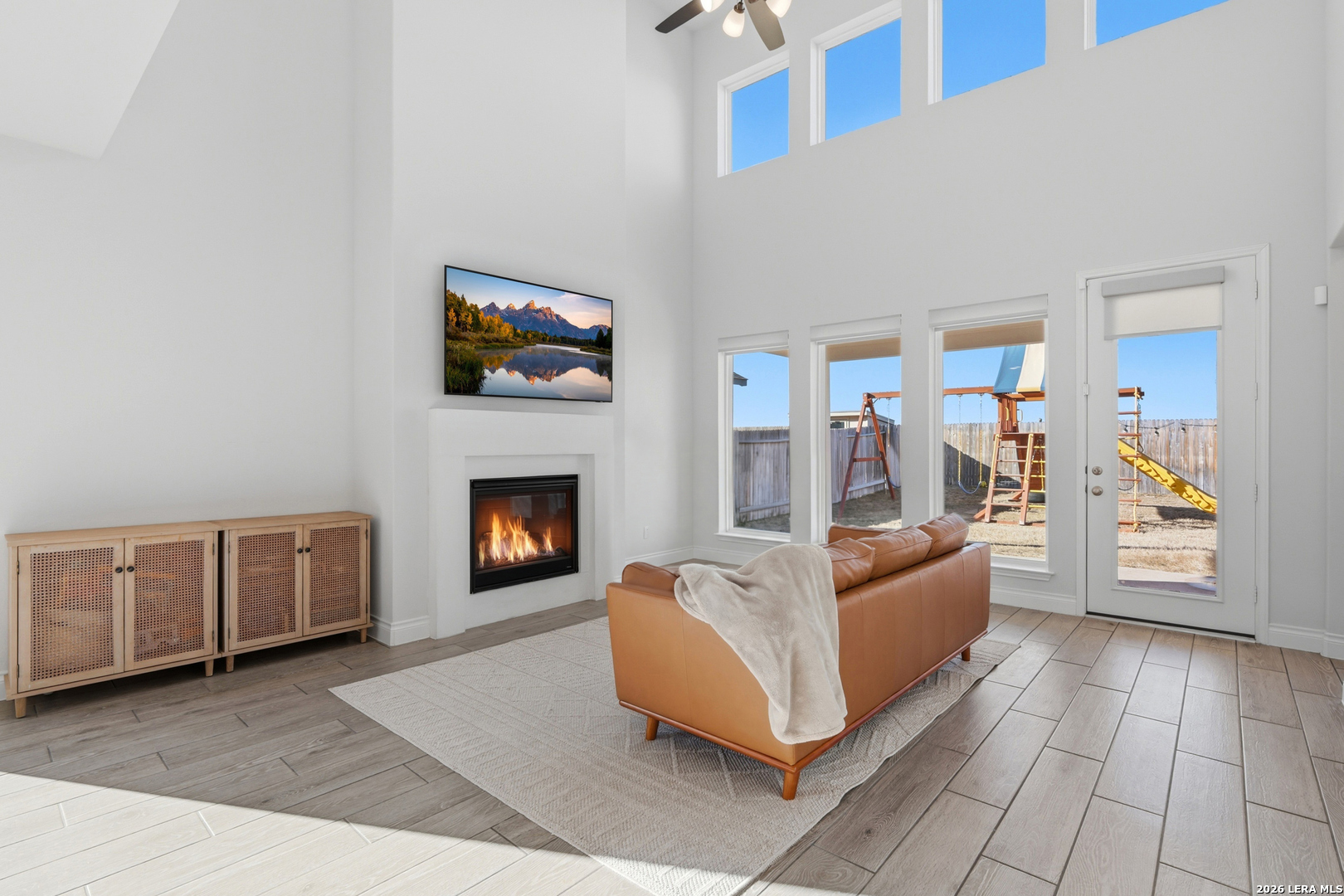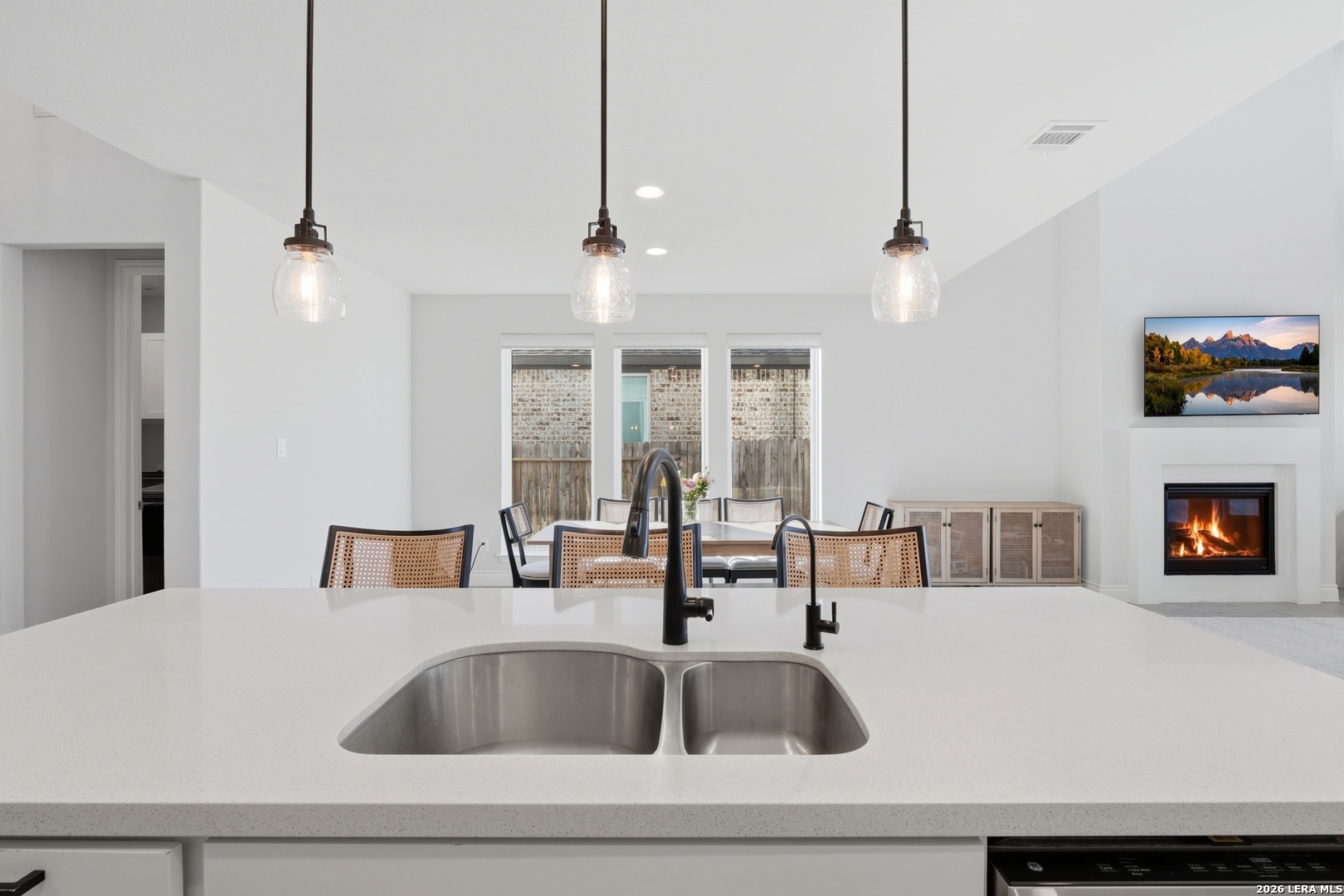 Perfectly located just minutes from New Braunfels and Lake McQueeney, and zoned to the highly desirable Navarro ISD, this stunning home offers the best of location, luxury, and value. Completed in December 2022, this recently built home gives you everything you'd want in new construction, at a fraction of the price, with all major components practically brand new. As you arrive, you're immediately welcomed by a beautiful stucco exterior that extends to all four sides, a rare and valuable upgrade in today's new builds. Step inside and prepare to be impressed by soaring 20-foot ceilings and upgraded tile flooring throughout the entire first floor, setting the tone for the elevated design throughout. To your immediate left, you'll find a versatile office/game room flex space with elegant double doors, perfect for working from home or creating a private retreat. Just beyond is the spacious laundry room. The exposed stair railing and open catwalk above add a modern architectural touch that enhances the home's open-concept feel. The kitchen is truly a chef's dream! Featuring abundant quartz countertop space, ample cabinetry, built-in appliances that elevate the design, a 4-burner gas cooktop, and an incredible walk-in pantry. This space was made for entertaining and everyday living. The dining area sits just off the kitchen, surrounded by beautiful windows that flood the space with natural light. The living room is nothing short of breathtaking, highlighted by 20-foot ceilings, an abundance of windows, and a built-in electric fireplace that creates the perfect focal point. For added convenience and comfort, windows in the living room and dining area include electric blinds. The primary suite is privately located on the first floor and generously sized. The spa-like primary bathroom features a separate soaking tub, walk-in shower, dual vanities, and one of the best features, separate his and hers walk-in closets. Also on the first floor is a secondary bedroom with a full bathroom, making it ideal for a mother-in-law suite or a private guest room. Upstairs, you'll find an expansive loft overlooking the main living area, along with two additional generously sized bedrooms that share a full bathroom, offering plenty of space for family or guests. Step outside to enjoy a spacious backyard with an extended covered patio complete with a gas line ready for hosting BBQs and gatherings. With no back neighbors, you'll enjoy added privacy and peaceful views. To top it off, the home includes a water softener system and reverse osmosis system, already installed and ready to go. This home truly checks every box. Don't miss your opportunity to see it before it's gone!
