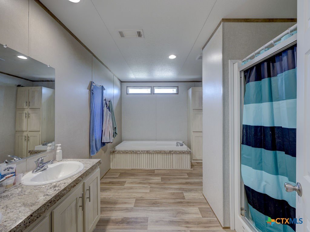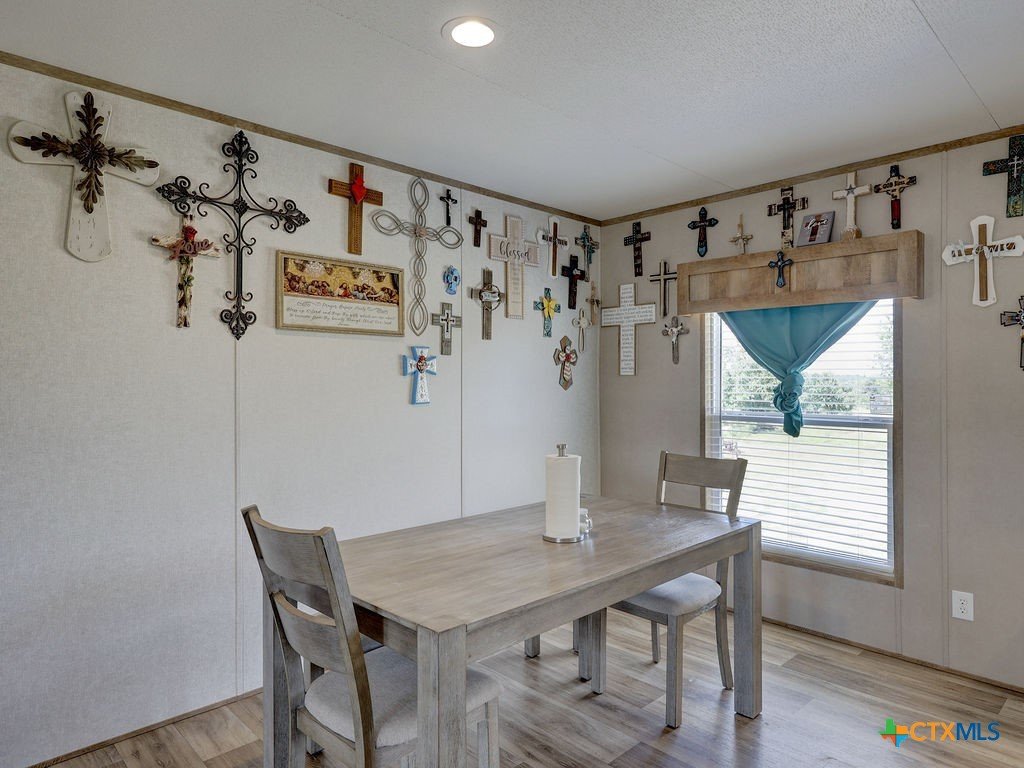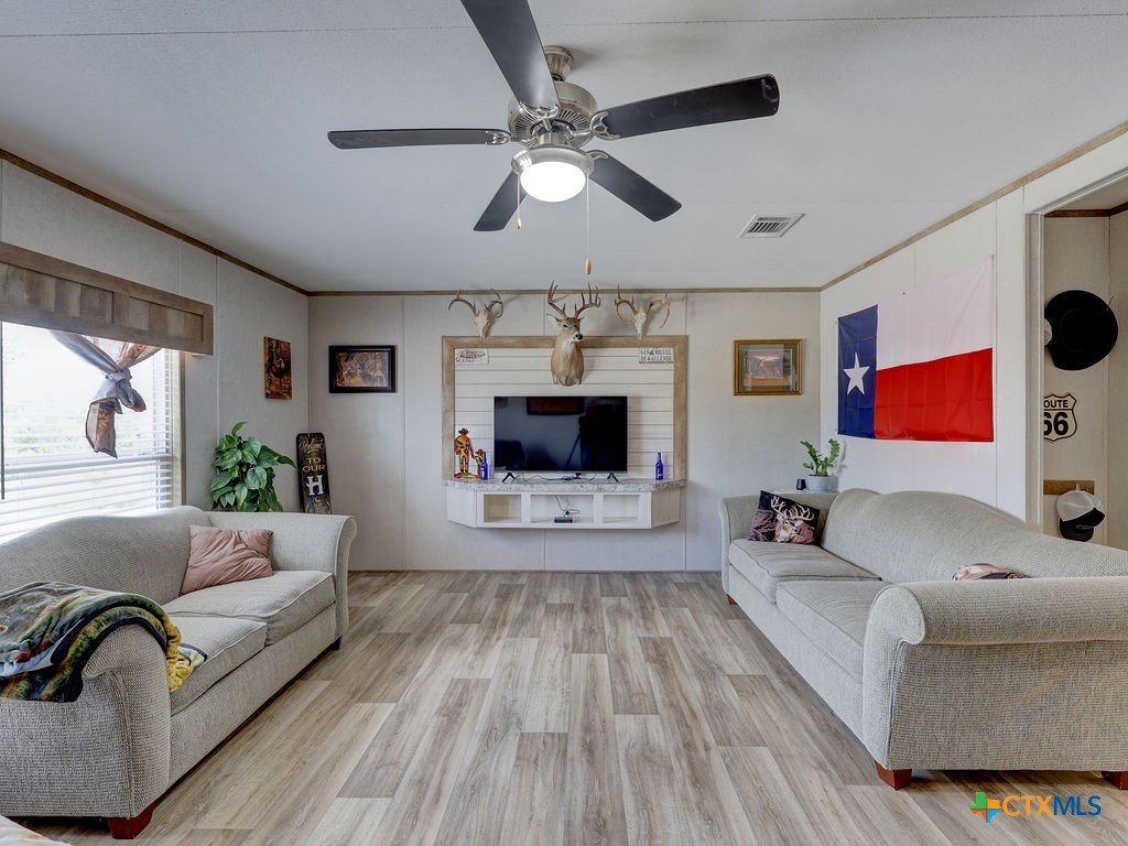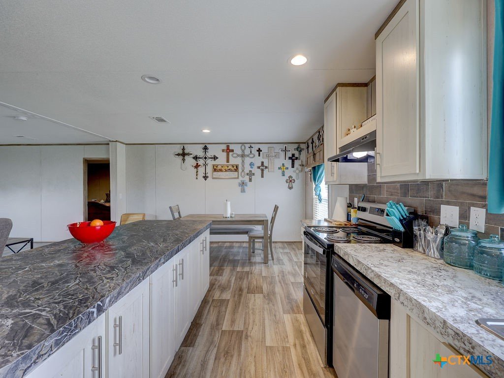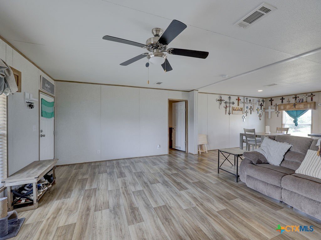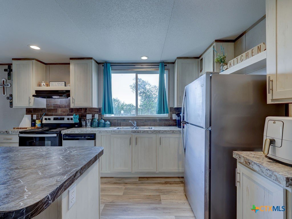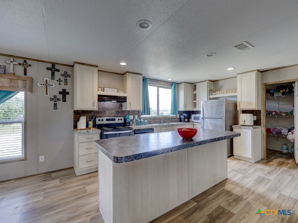 Stunning 2021 Double-Wide with Full Rock Exterior & Storm Shelter on 1.39 Acres of Privacy land. This immaculate 2,040 sq. ft. manufactured home blends modern design with exceptional craftsmanship. Built in 2021, it boasts a striking full rock exterior from top to bottom, offering timeless beauty and low maintenance. Step onto the inviting covered front porch—perfect for morning coffee—or relax on the spacious back patio, ideal for hosting gatherings. The back patio also features a built-in storm shelter for safety and peace of mind. Inside, you’ll find an open-concept layout filled with natural light, showcasing generous living and dining areas, a well-appointed kitchen with ample cabinetry and counter space, and comfortable bedrooms with plenty of storage. The primary suite includes a private bath with a walk in shower and walk-in closet, creating a true retreat. Currently on a shared well, new owner may have to drill a well.
