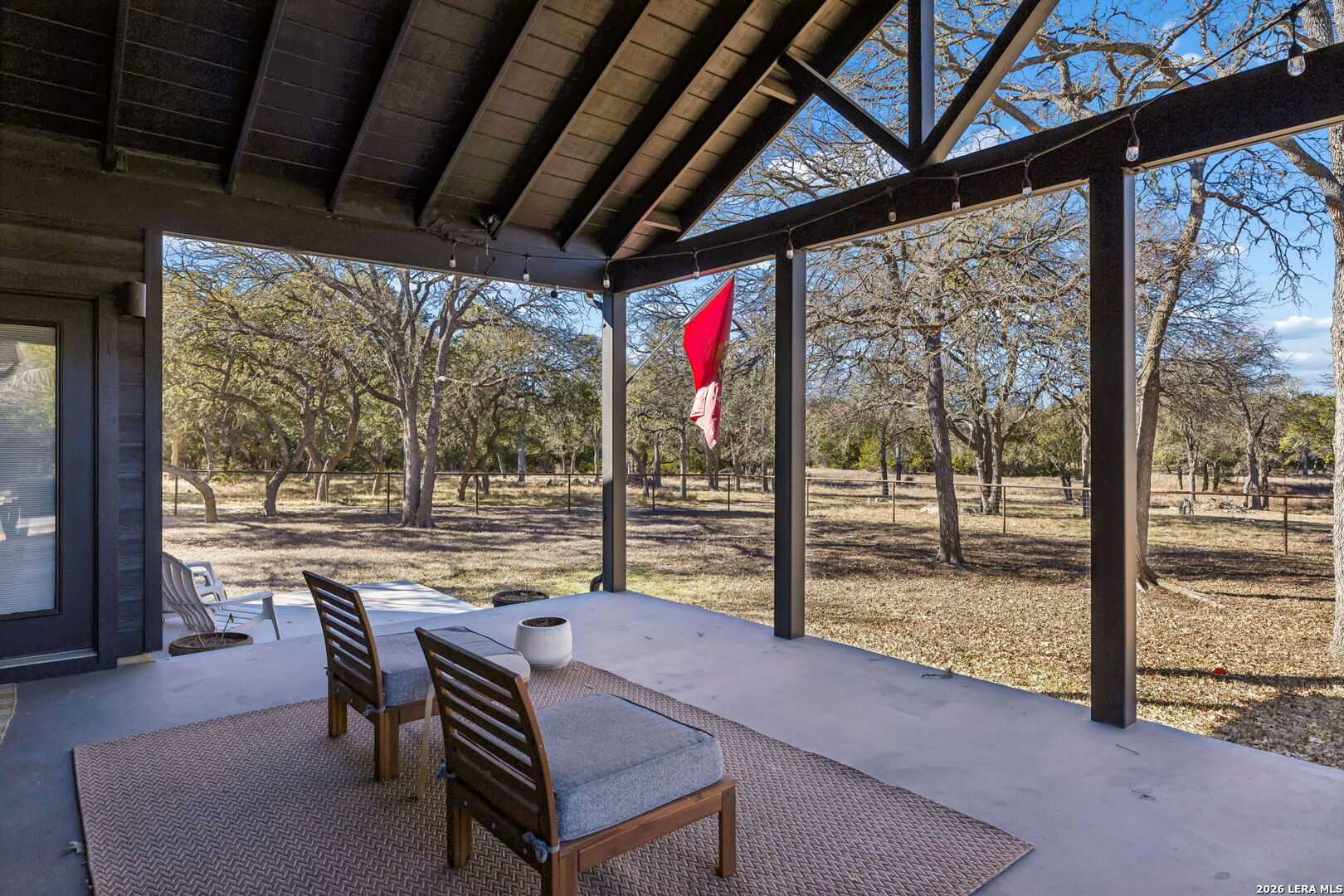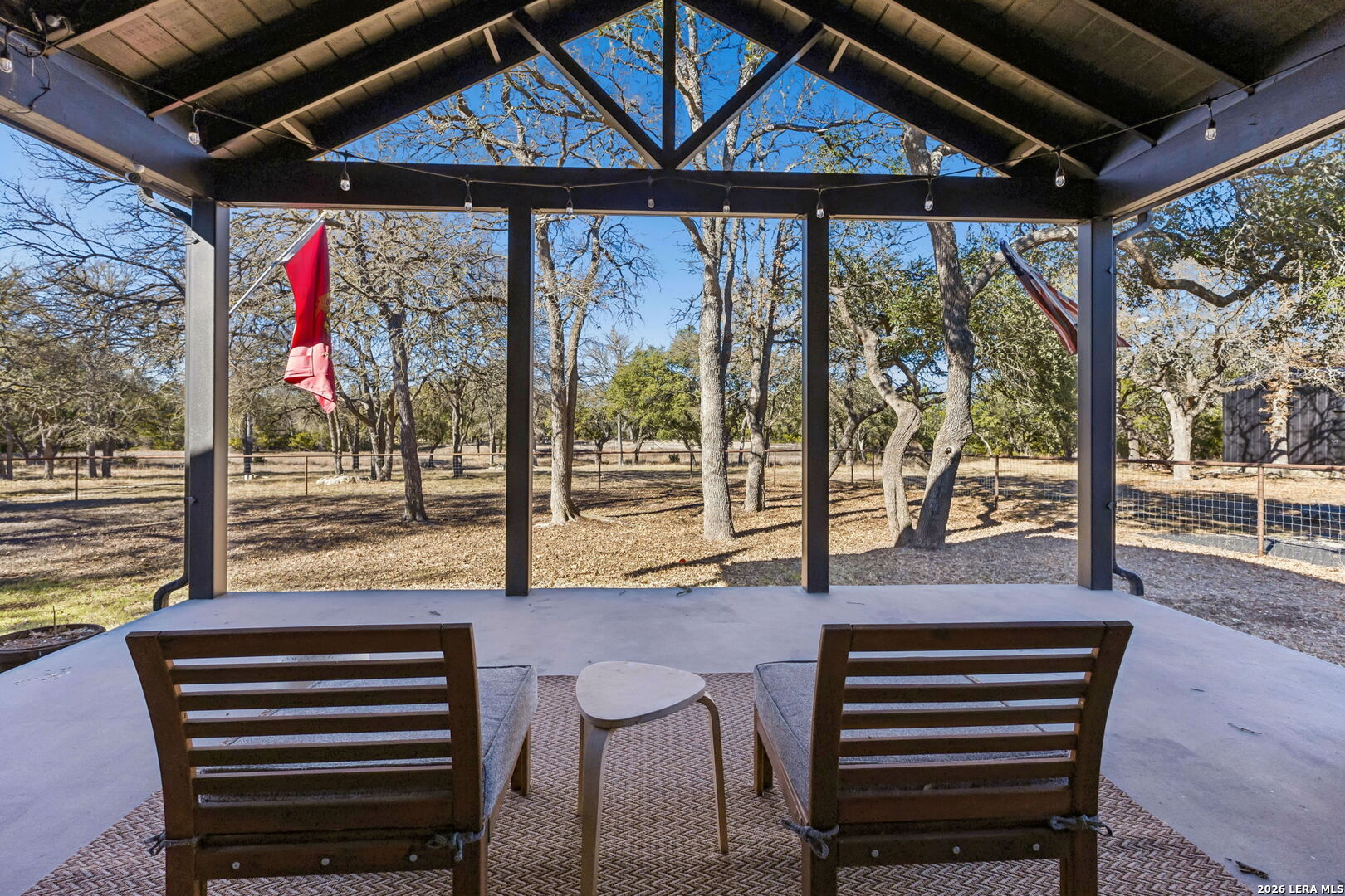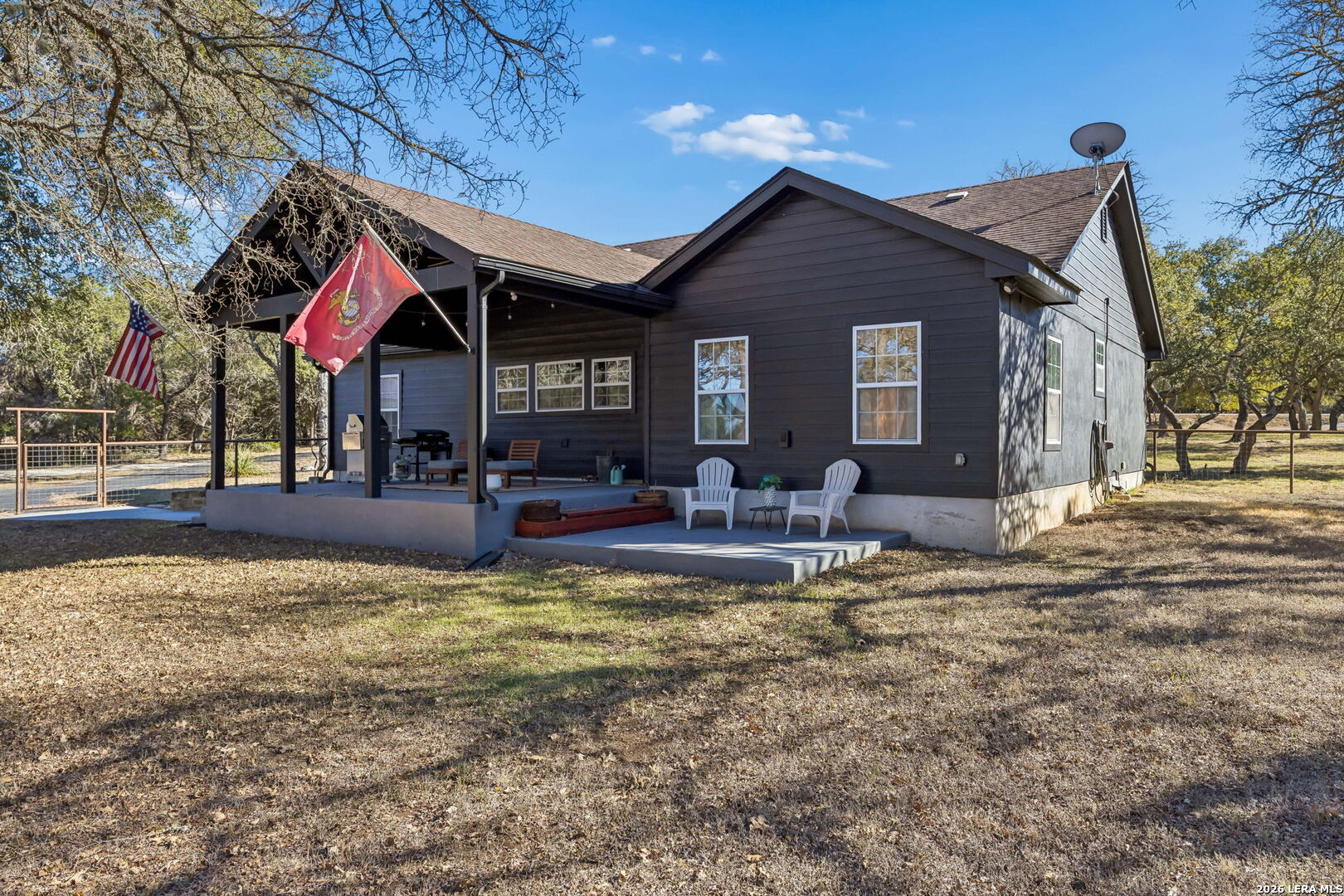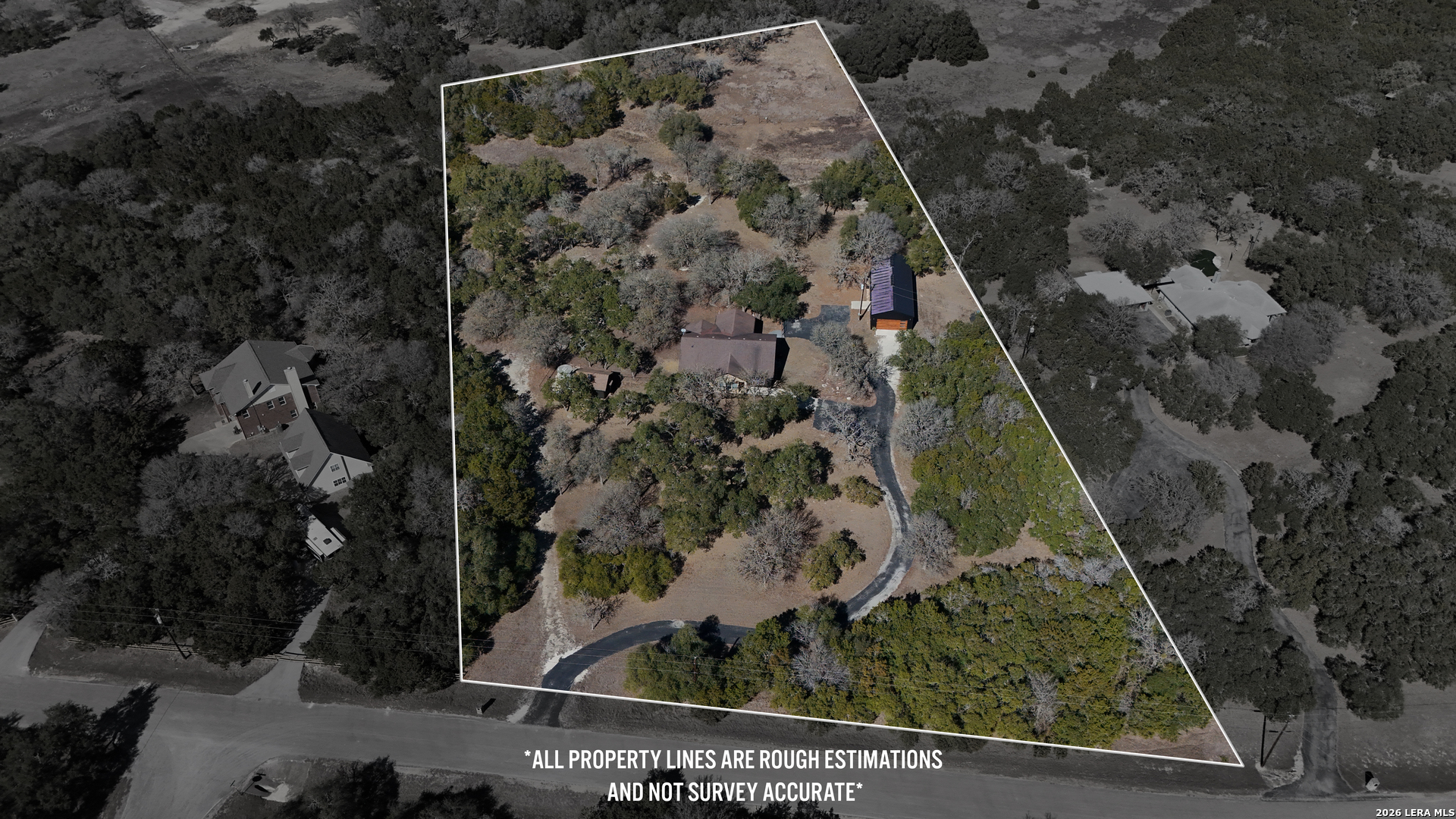 Tucked away on 5+ private acres in Cypress Springs, this tranquil Hill Country retreat offers rare freedom, thoughtful infrastructure, and everyday comfort. Mature oaks, open country views, and a peaceful setting just minutes from shopping, restaurants, and Hwy 281. The single story home features 3 bedrooms, 2 baths, an oversized island kitchen, and a steam shower in the primary suite. Step outside to the covered patio and firepit and enjoy quiet evenings under the stars. This property truly stands apart because of the infrastructure already in place. Expansive 4+ car detached oversized garage and workshop wired for 220V. Auxiliary dual fuel generator professionally wired for power outages. Dedicated RV parking with 50 amp hookup. Separate RV septic plus an independent home septic system. A 3,400 gallon cistern. 220V wiring suitable for a future outdoor hot tub. Bring the horses. Livestock is allowed at one per acre and there is already a paddock in place. Owners enjoy river access and RV park access for residents and guests. ADUs are permitted with approval and must be site built, making multigenerational living possible. No current short term rental restrictions. Subdivision is not allowed, preserving privacy and acreage integrity. Private acreage. Mature trees. Seasonal creek. Real usable land with real infrastructure already done. Opportunities like this do not come around often.