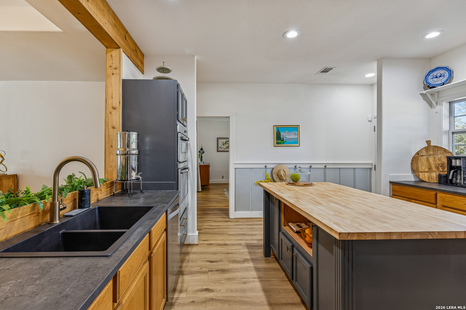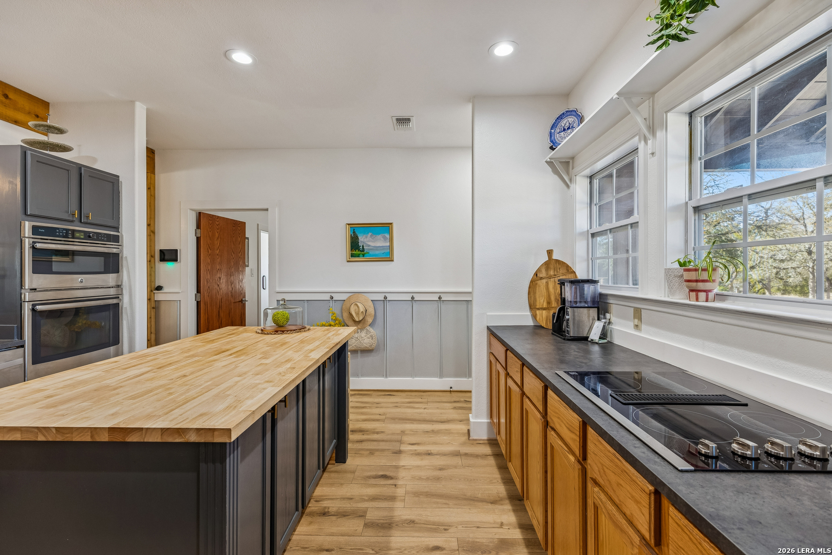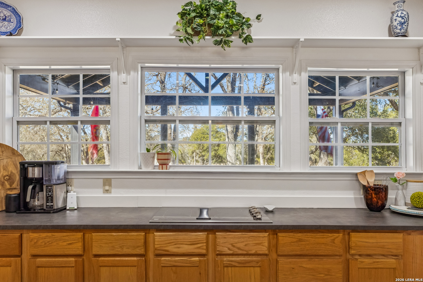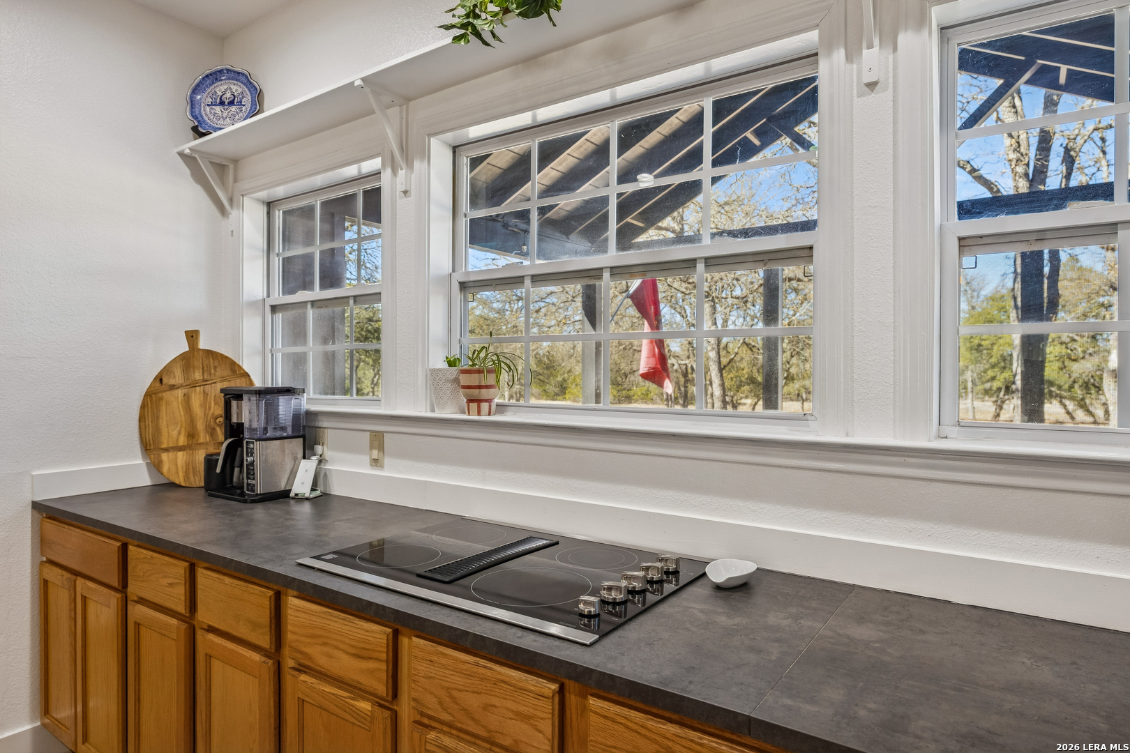 Tucked away on 5+ private acres in Cypress Springs, this tranquil Hill Country retreat offers rare freedom, thoughtful infrastructure, and everyday comfort. Mature oaks, open country views, and a peaceful setting just minutes from shopping, restaurants, and Hwy 281. The single story home features 3 bedrooms, 2 baths, an oversized island kitchen, and a steam shower in the primary suite. Step outside to the covered patio and firepit and enjoy quiet evenings under the stars. This property truly stands apart because of the infrastructure already in place. Expansive 4+ car detached oversized garage and workshop wired for 220V. Auxiliary dual fuel generator professionally wired for power outages. Dedicated RV parking with 50 amp hookup. Separate RV septic plus an independent home septic system. A 3,400 gallon cistern. 220V wiring suitable for a future outdoor hot tub. Bring the horses. Livestock is allowed at one per acre and there is already a paddock in place. Owners enjoy river access and RV park access for residents and guests. ADUs are permitted with approval and must be site built, making multigenerational living possible. No current short term rental restrictions. Subdivision is not allowed, preserving privacy and acreage integrity. Private acreage. Mature trees. Seasonal creek. Real usable land with real infrastructure already done. Opportunities like this do not come around often.
