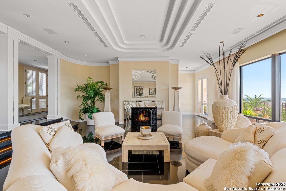 Ready to live like a Super Star? The most grand estate in all of San Antonio spans over 3 acres, equipped with an elevator, safe room, a separate access maids quarters, helicopter pad, workshop room, mini bar, two large family rooms and an over-sized pool overlooking downtown and the Hill Country. Community amenities include a tennis/basketball court and a pool. You'll love the close proximity to The Rim,La Cantera, local parks, and entertainment. The views are truly unforgettable and yes, family and friends will want to see the fireworks from the best spot in the city(your new home).***Multiple offers received , all offer due today ! August 17 at 5pm***