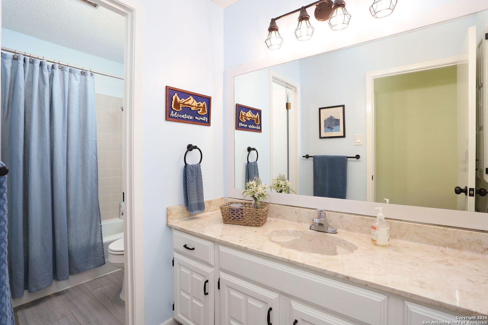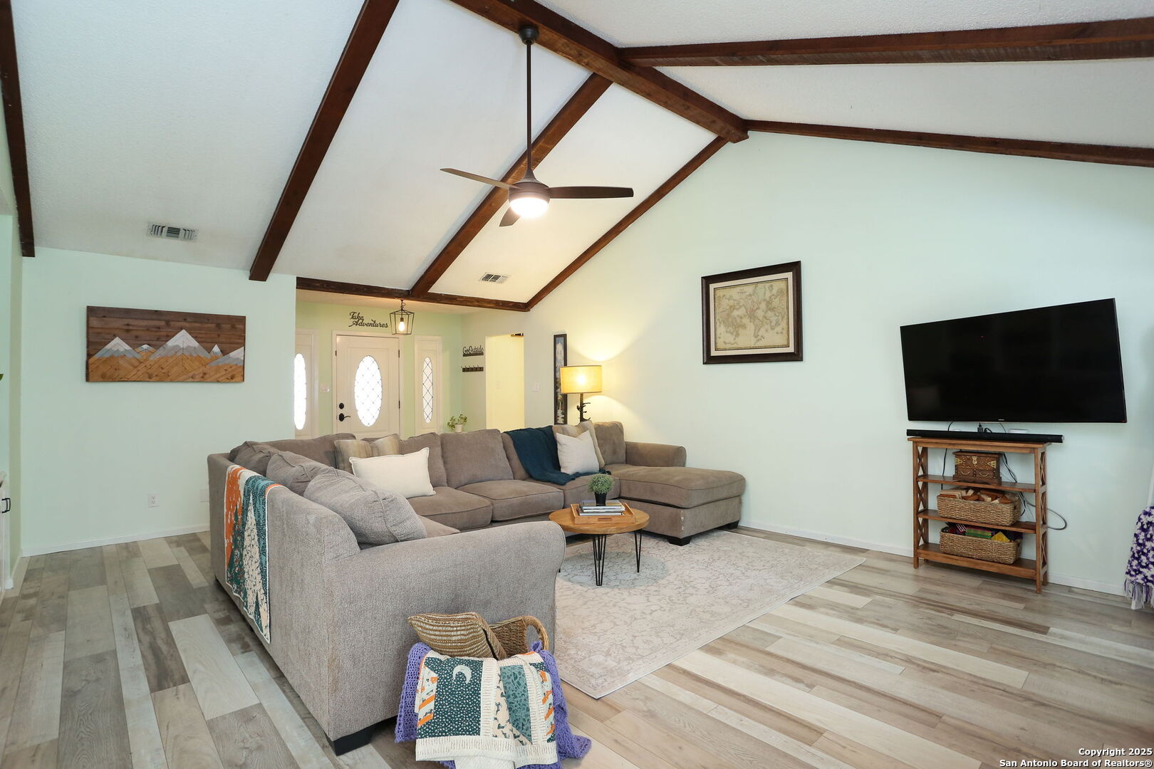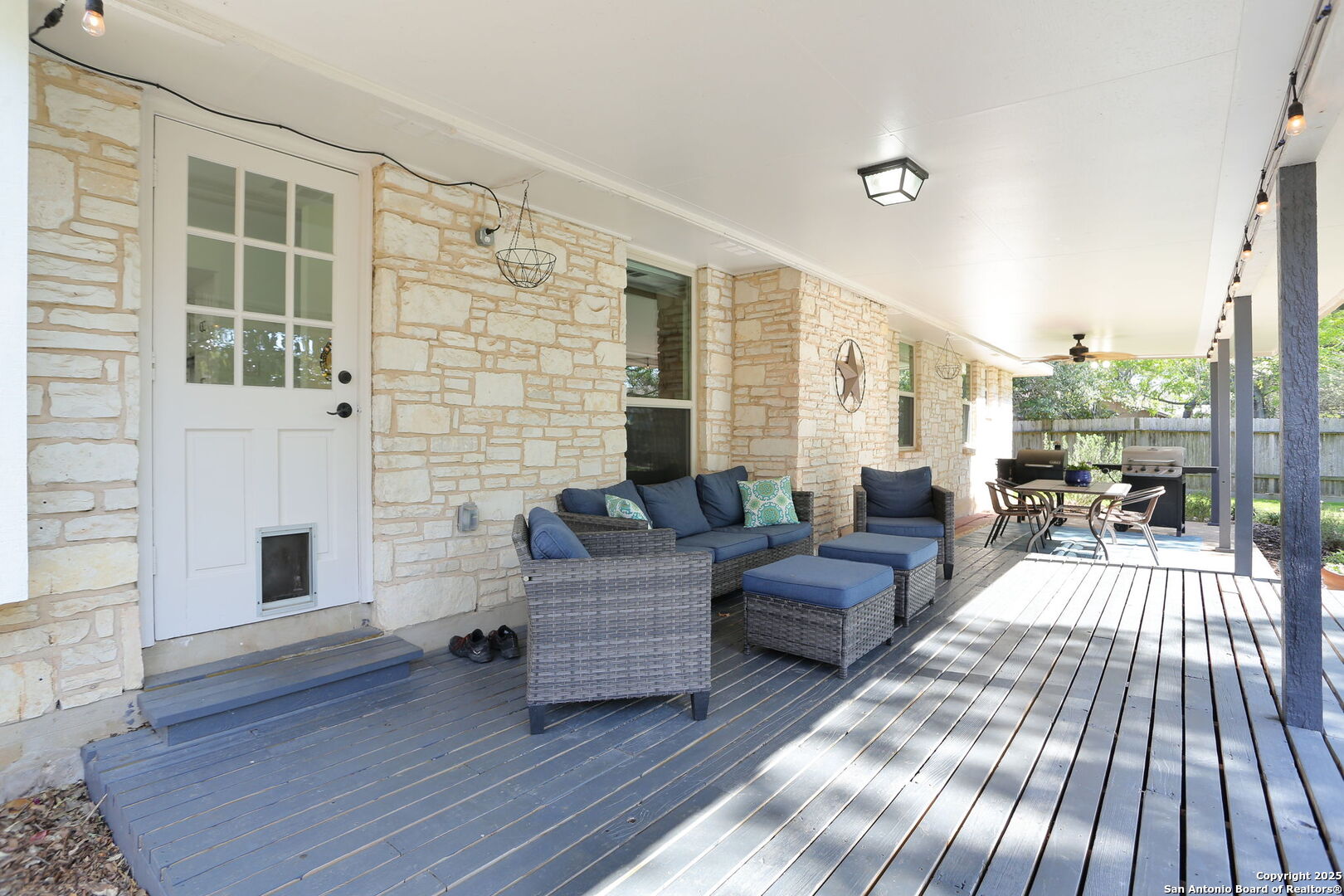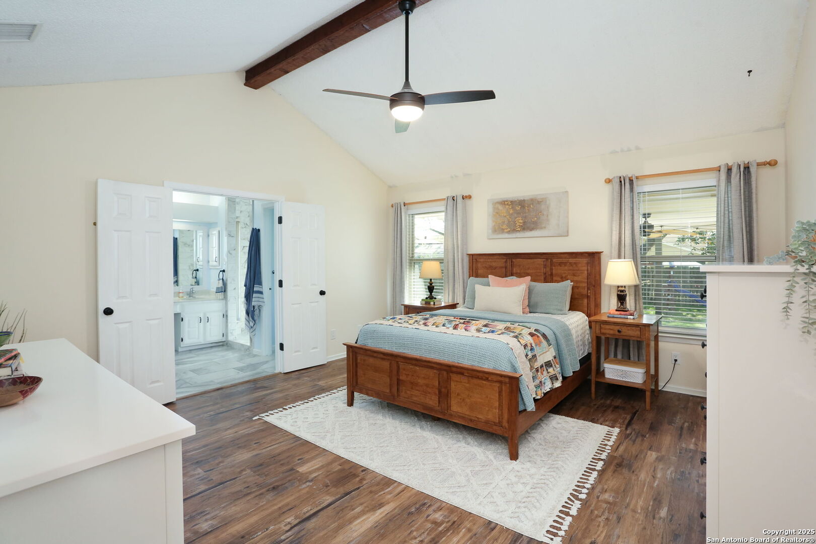 Nestled in the heart of the Encino Park community, this beautifully updated 3-bedroom, 2-bath home offers 1967 sq ft. of stylish living space on a spacious .28-acre lot. Attractive rock exterior on 4 sides and recently upgraded windows allow this home to be loaded with natural light while enhancing energy efficiency. The inviting kitchen and family room are the best for family gatherings. In the cooler months enjoy get-togethers by the cozy fireplace. With so many wonderfully warm days, you'll spend many an evening under the spacious outdoor patio area relaxing under the Texas stars. The modernized master bath is a luxurious retreat, featuring contemporary finishes and a spa-like ambiance. This home improvement was completed in 2022. Step outside to a kid friendly backyard, a safe and spacious haven perfect for playtime, family gatherings, or simply relaxing. With its open floor plan, inviting living areas, and updated features, this home offers the perfect blend of comfort and functionality. Located in the north central area of the city with access to top NEISD schools and community amenities, it's an ideal choice for those seeking both convenience and charm. Additional perks: Roof replaced less than 5 years ago with warranty through 2035. Window warranty through 2033, Dishwasher and water heater replaced, 2024. Don't miss your chance to make this updated gem your forever home-schedule a tour today!