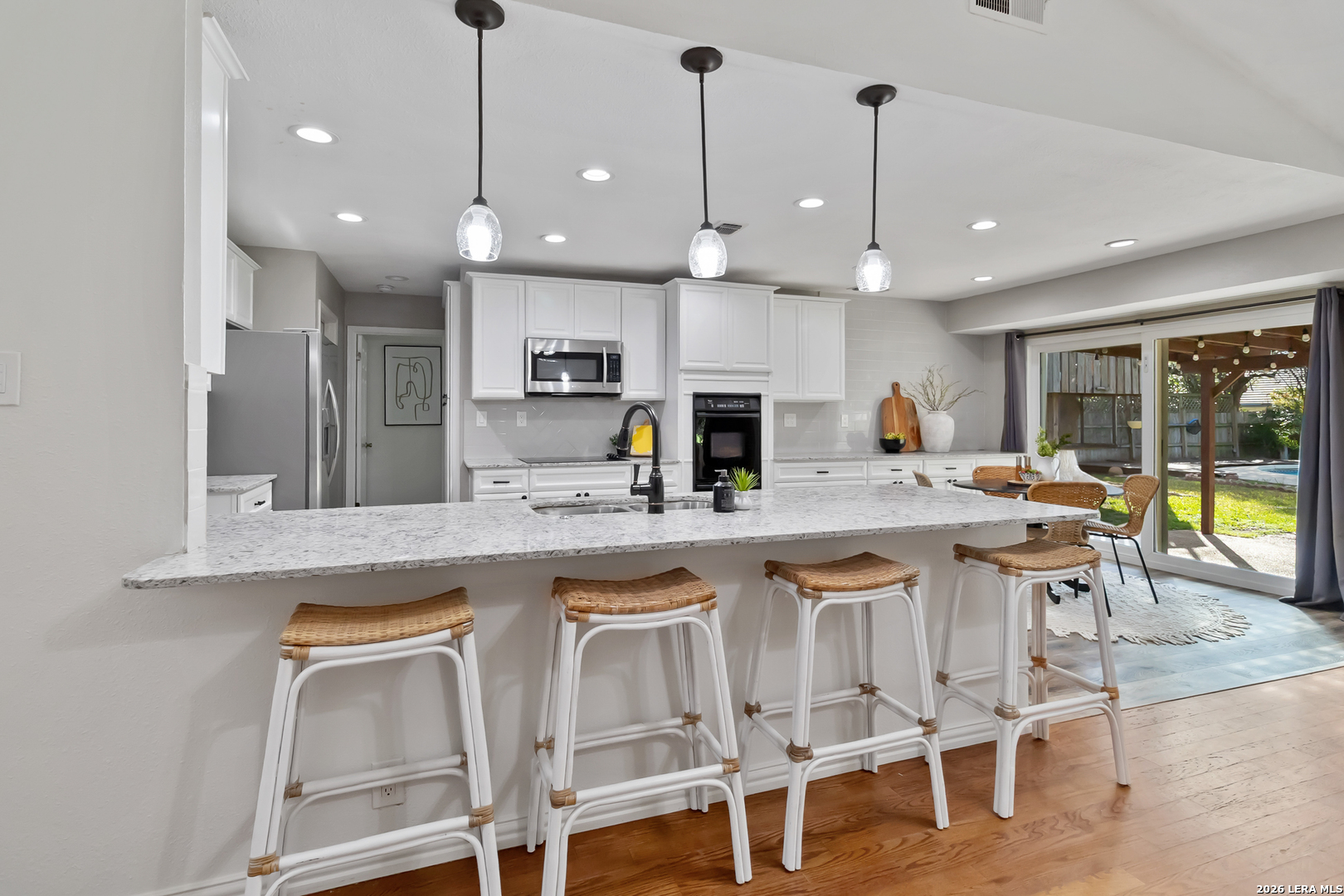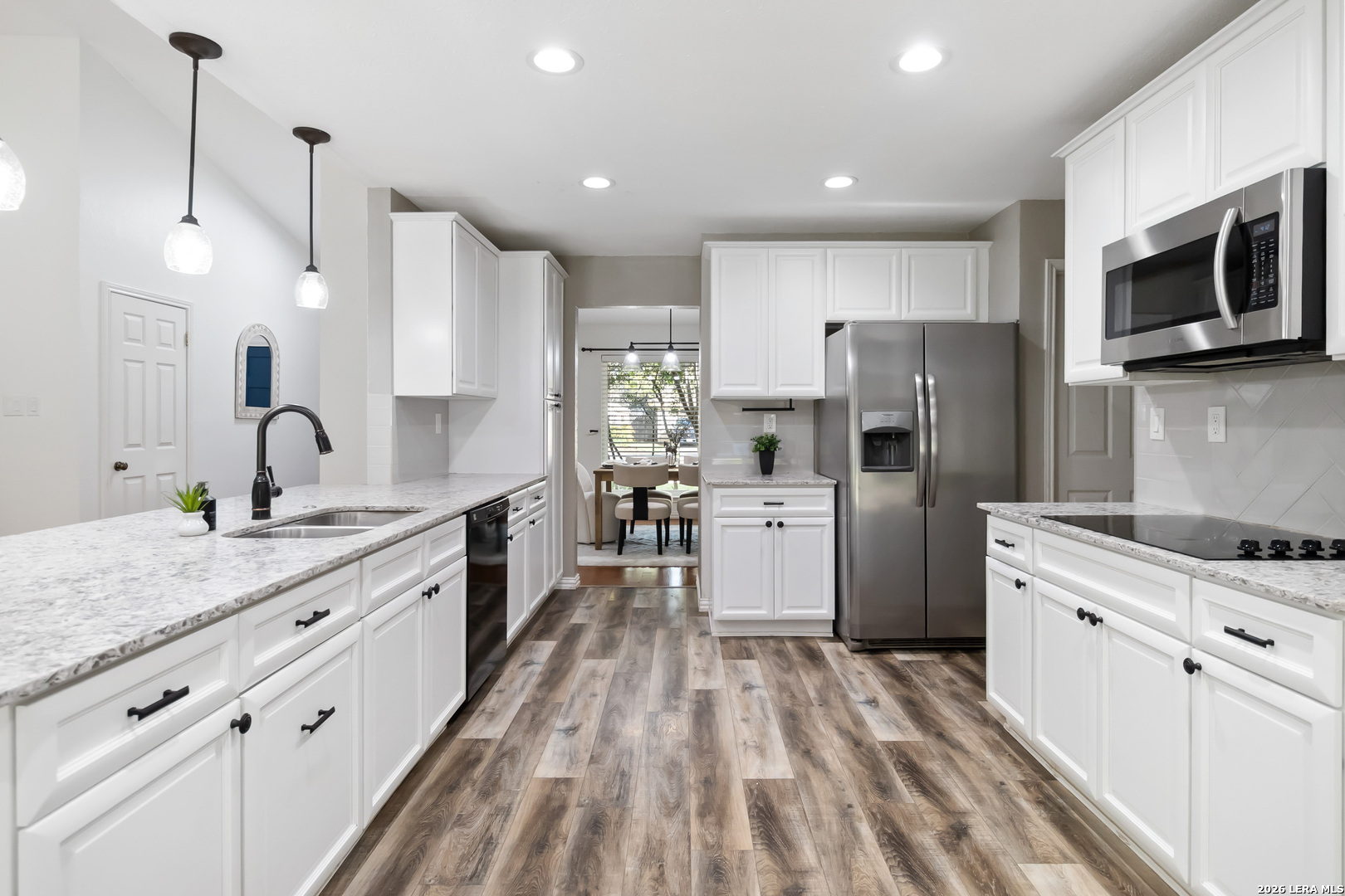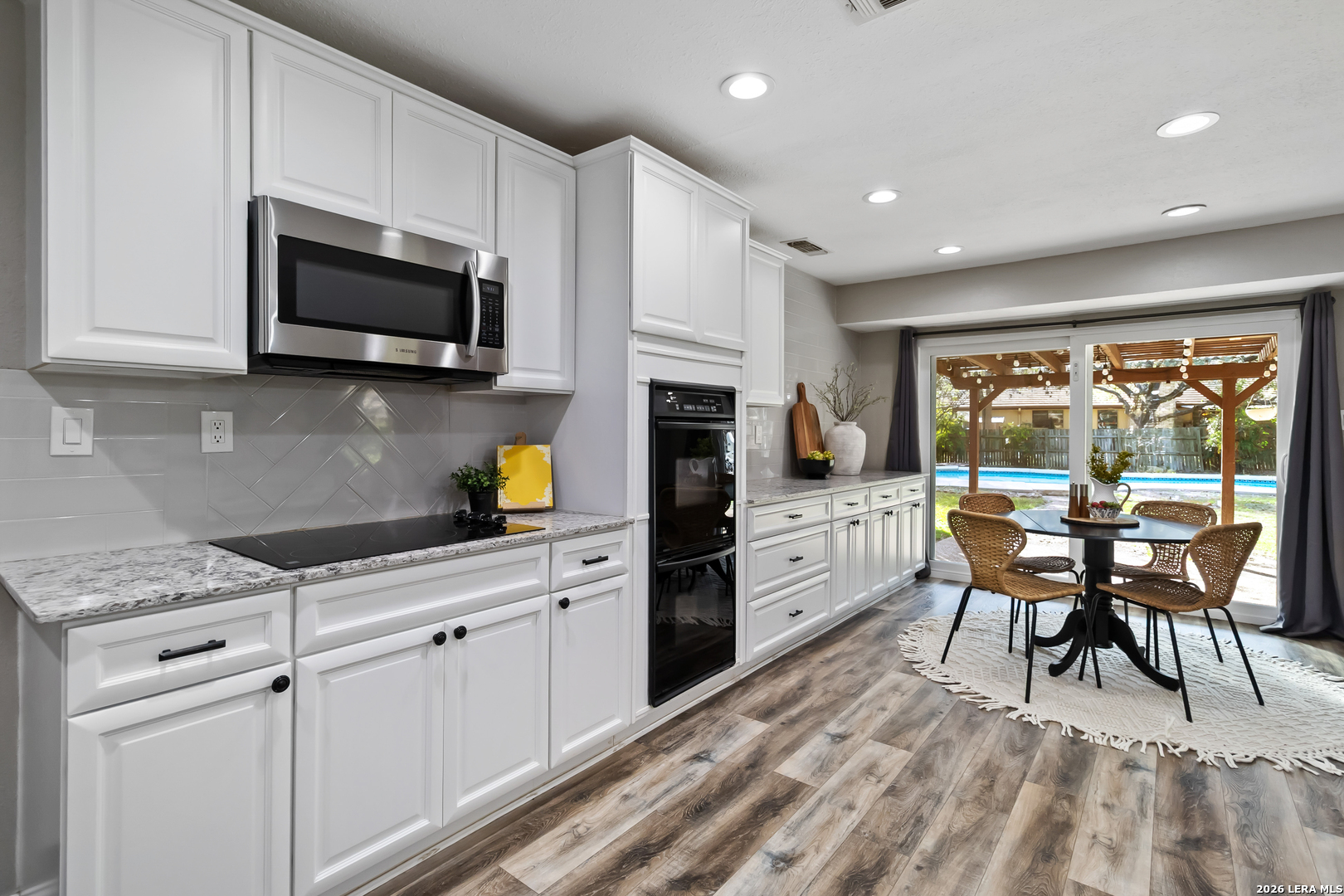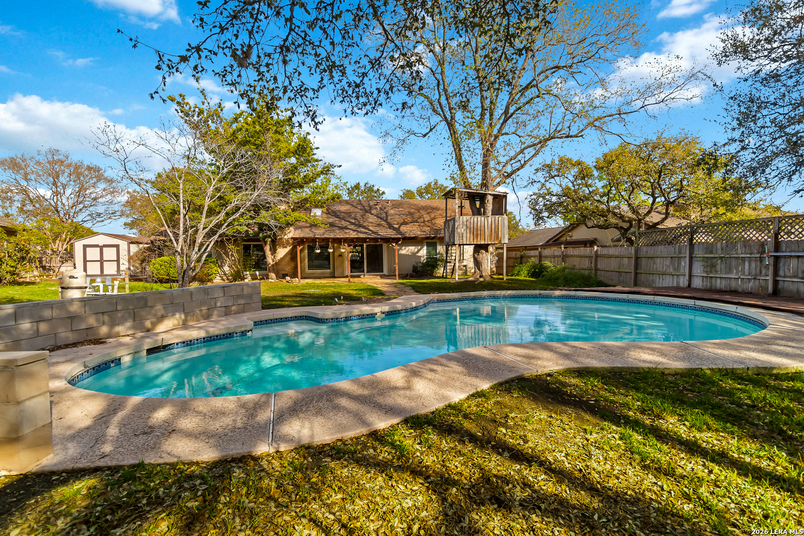 Step inside this completely modernized 4bed, 2bathroom home in the highly sought-after Encino Park community. Fresh paint, new carpet, and brand-new 2025 windows and doors make this open-concept space feel incredibly crisp and bright. The upgraded kitchen features a premium double oven, while the renovated primary suite offers a custom steam shower to help you unwind. Out back, the 0.29-acre lot offers total privacy. A massive shade tree with a built-in treehouse anchors the yard, surrounded by mature, fruit-bearing trees. Just steps away, you can enjoy an oversized in-ground pool with a new 2025 filter is perfectly prepped for long Texas summers. Major updates are already handled, including a 2024 water heater and a full electrical upgrade. Beyond the property line, you get full access to Encino Park's active community pool, sports courts, and top-rated NEISD schools. Just unpack and start living.