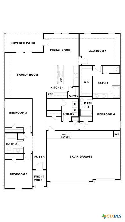 MOVE IN READY! Introducing one of our newest floorplans, the Courtland, at Hartland Ranch. This thoughtfully designed one-story home includes 4 bedrooms and 3 bathrooms within 2,290 square feet of living space. . This floorplan features a 3-car garage. Cross through the covered entryway and down the long foyer to the family room, kitchen and dining room. This open concept space is perfect for entertaining and everyday living. The L-shaped kitchen includes an island with undermount sink, quartz countertops, decorative tile backsplash, a corner pantry closet, stainless-steel appliances and 36’’ upper cabinets. Enjoy the natural light from the four rear windows looking out to the backyard. The primary bedroom is off the family room and includes its own attached bathroom, making the start of your day a seamless step from sleep to your morning routine. Enjoy the 5’ walk in shower, raised cultured marble vanity with double sinks and toilet area with a separate door. A walk-in closet with generous shelving is connected to the bathroom. At the front of the home is bedroom 2 and 3 with a secondary bathroom conveniently located between each room. Down a short hallway in the middle of the home, you’ll find bedroom 4 with its own private bathroom, and the utility room with an extra storage space. Each bedroom includes a closet with shelving and the secondary bathrooms feature a shower/tub combination. Whether you use these rooms as an office, child’s room or guest room, there is plenty of space for work, sleep and play. The Courtland includes vinyl flooring throughout the common areas of the home and the primary bedroom, and carpet in the secondary bedrooms. All our new homes feature a covered back patio, full sod, an irrigation system in the front and back yard, and full gutters. This home features our America’s Smart Home base package, which includes the Video Front Doorbell, Front Door Deadbolt Lock, Home Hub, Thermostat, and Deako® Smart Switches.