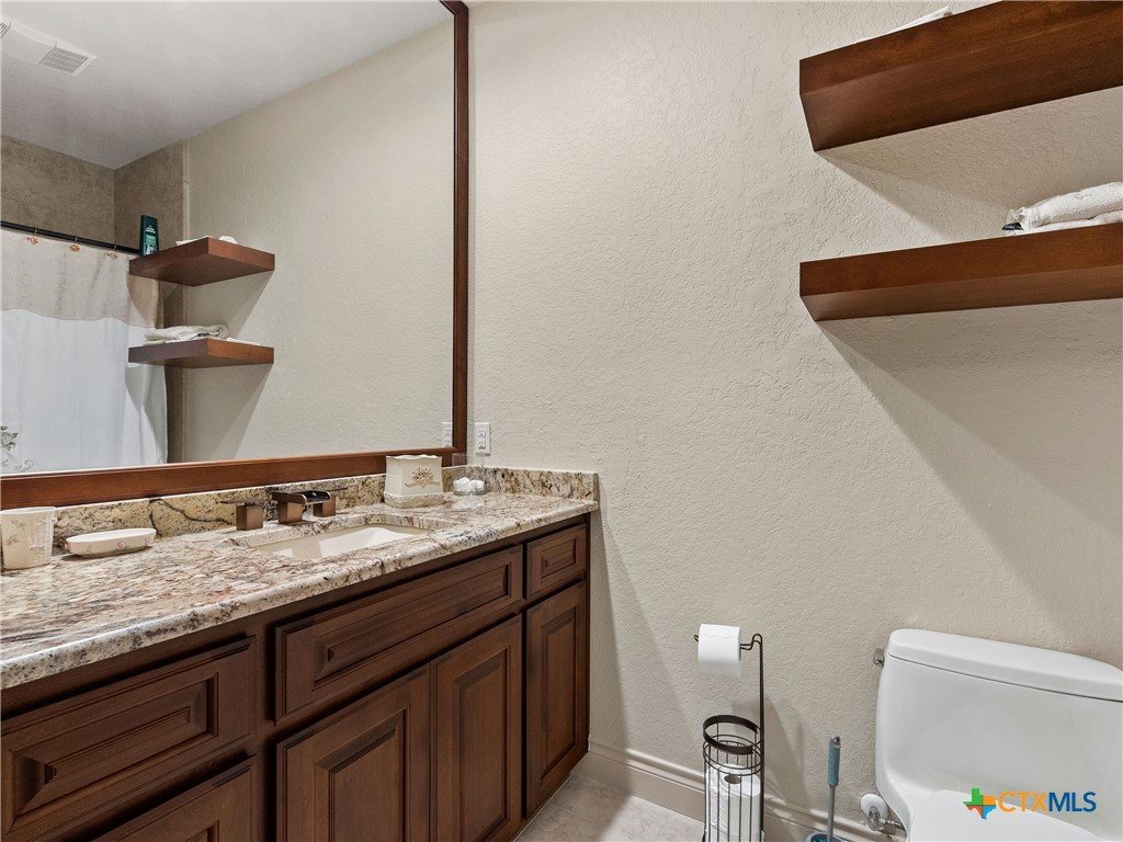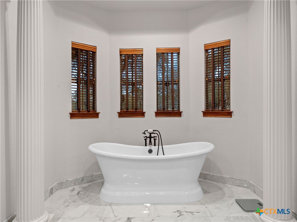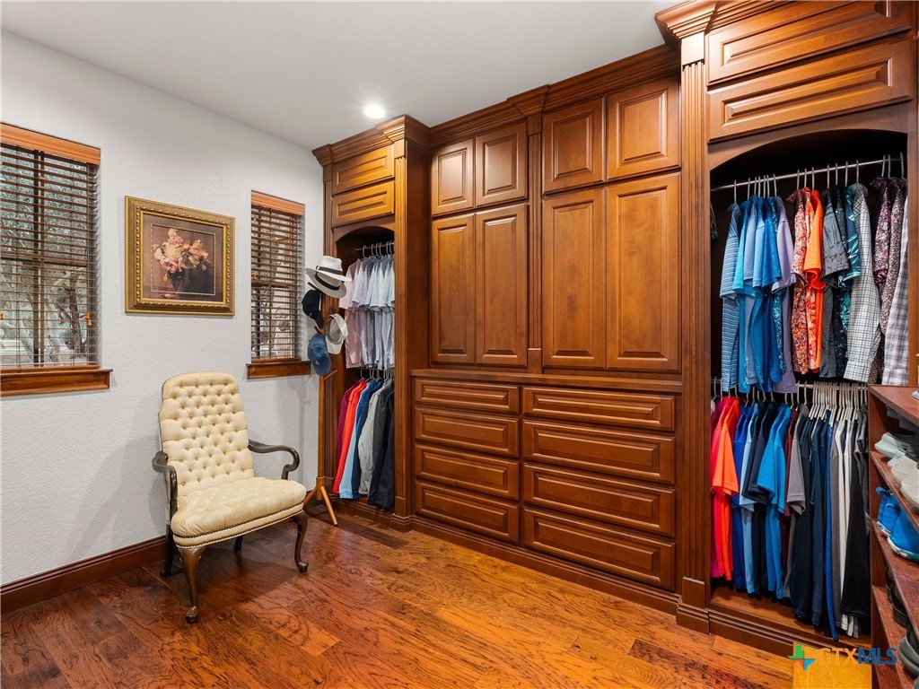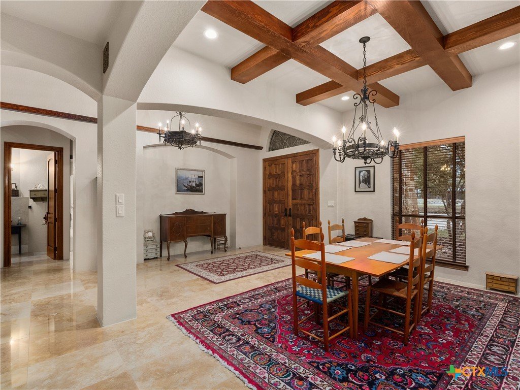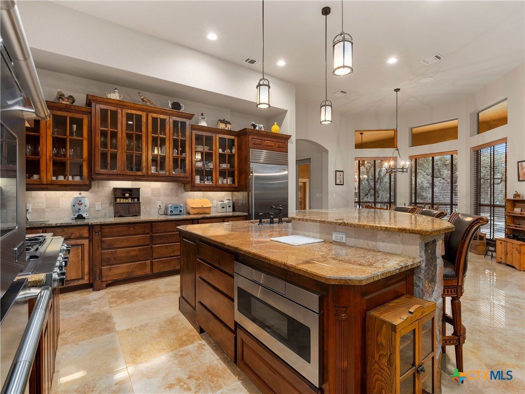 Custom built by Craftman and remodeled by Pencsak, this exceptional estate blends timeless craftsmanship with thoughtful modern updates in the highly sought-after Wild Wind community of Garden Ridge. Positioned on a spacious corner lot surrounded by mature trees and lush landscaping, the property offers privacy, scale, and enduring architectural appeal. The interior showcases expansive living spaces with 24x24 travertine flooring throughout the common areas, complemented by new hardwood floors in all main-level bedrooms and closets. Distinctive features include 8-foot solid wood interior doors on the main level, custom wood slat blinds, and multiple gas and wood-burning fireplaces that enhance both comfort and character. The primary suite has been beautifully updated, featuring a fully remodeled spa-style bath and a custom walk-in closet by Michael Edwards. Designed for seamless indoor-outdoor living, the backyard is a true retreat with a custom swimming pool, heated spa, and waterfall feature. Outdoor lighting, fireplaces, and custom cast-iron fencing create an inviting environment ideal for entertaining or quiet evenings at home. The main floor includes the primary suite, a dedicated office, and two guest bedrooms, each with its own ensuite bath, while the second level offers an additional guest suite with private bath and a versatile multi-use craft or storage space. Meticulously maintained, this Craftman built and Pencsak remodeled residence delivers the quality, comfort, and presence of a newly constructed home within an established neighborhood.