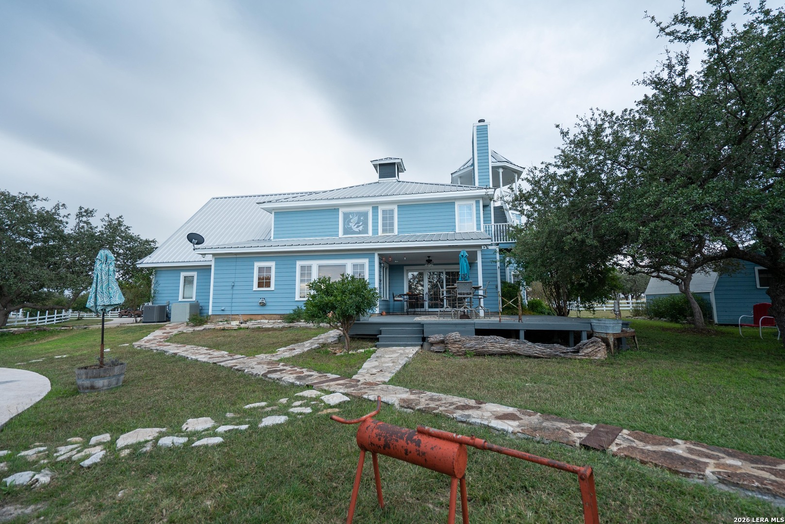 In the rolling heart of the Texas Hill Country, just outside Junction, lies a ranch where the horizon stretches endlessly and the pace of life slows to something sacred. Perched amid sweeping scenic views, this unique Victorian-style 4-bedroom, 3.5-bath home stands as a timeless centerpiece-its upstairs and downstairs gazebos offering front-row seats to sunrises that spill gold across cross-fenced pastures. Covered porches invite long conversations and quiet mornings, while the in-ground pool-with its fountain and natural stone features-overlooks the land like a private resort carved into the countryside. Beneath vast skies, native flora and fauna flourish, and the rhythm of wildlife is ever-present: whitetail and axis deer moving at dusk, coveys of quail rising from the brush, turkey and dove passing through, and songbirds filling the air for the avid birdwatcher. Water is abundant with strong wells, and adventure waits just minutes away near the North and South Llano Rivers and South Llano River State Park. Though it feels worlds away, you're only moments from downtown Junction's shopping and dining, 50 miles from Fredericksburg, roughly 100 miles from San Antonio International Airport, and even have access to a private airport nearby for seamless travel. An RV barn complete with two full hookups and septic offers room for guests or extended stays, making this property as functional as it is beautiful. This is more than a ranch-it's a Hill Country legacy property designed for gathering, recreation, and the kind of quiet luxury that only Texas land can provide.