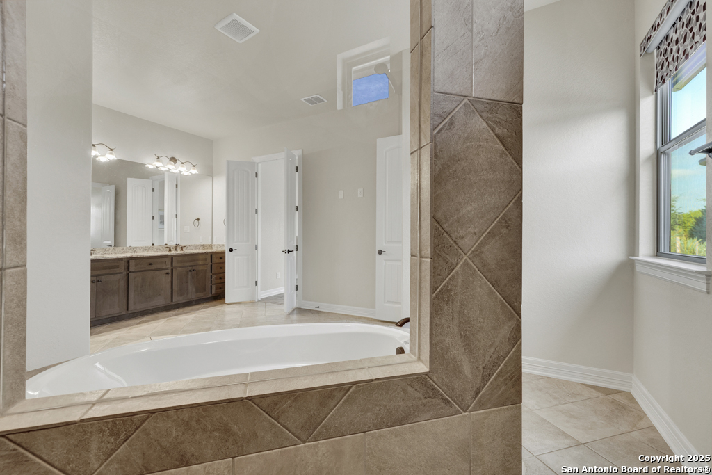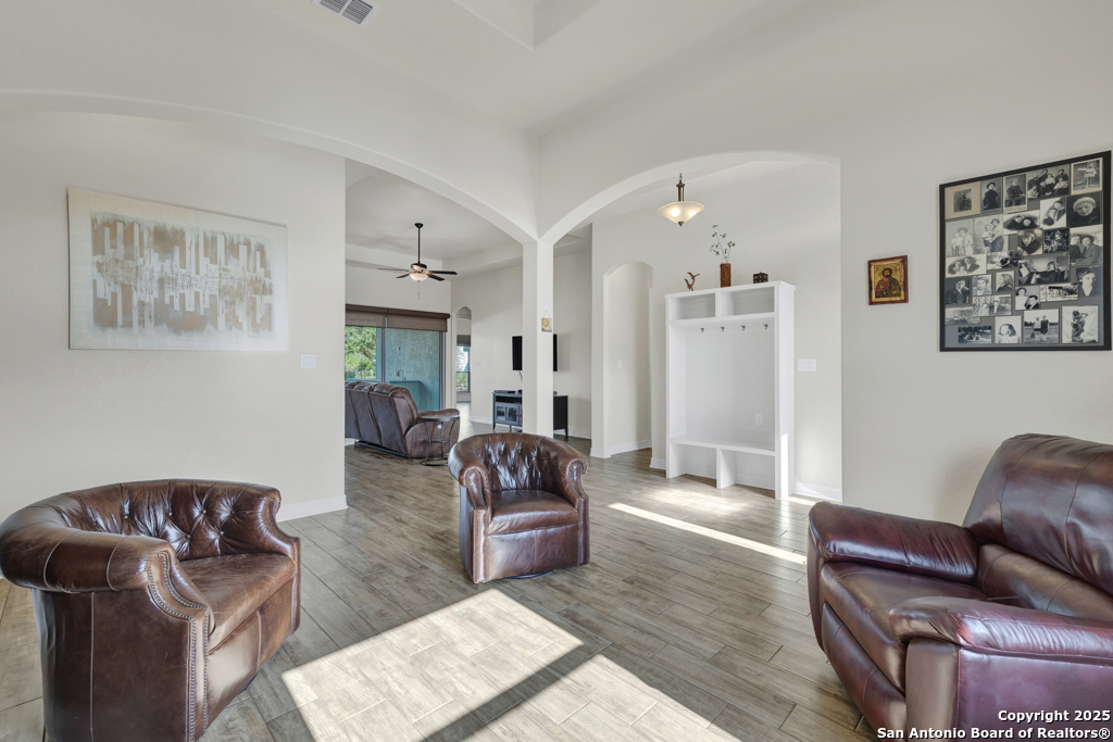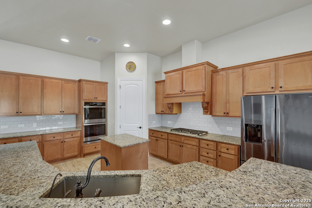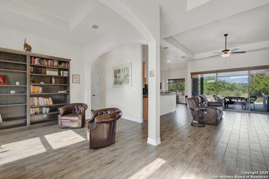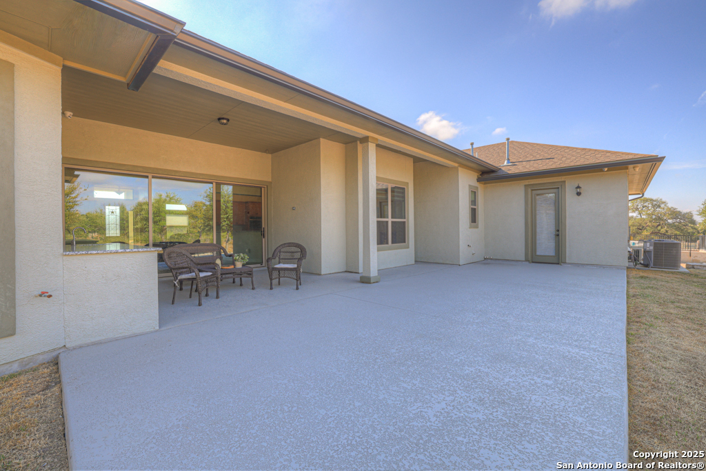 Welcome to this stunning 4-bedroom, 2.5-bathroom home nestled on 1.60 acres in the highly sought-after Vintage Oaks community in New Braunfels, Texas. Boasting 2,558 sq. ft. of elegant living space, this home features an impressive over-sized kitchen, beautiful tile flooring throughout, and a spacious covered patio perfect for relaxing or entertaining. 250 sq ft air conditioned bonus room is located off of the back patio. Surrounded by mature oak trees and scenic backyard trails, this property offers the perfect blend of comfort, style, and Hill Country charm. Enjoy all the Vintage Oaks has to offer, including resort-style amenities such as the community's signature Lazy River, a beautiful clubhouse, a state-of-the-art fitness center, and much much more.