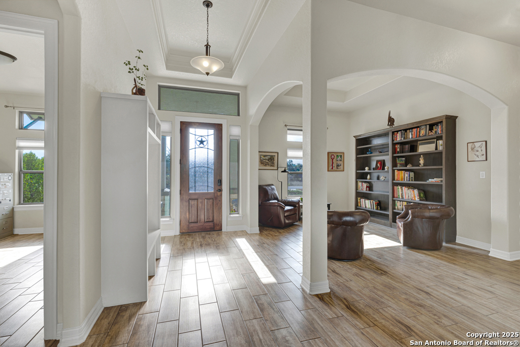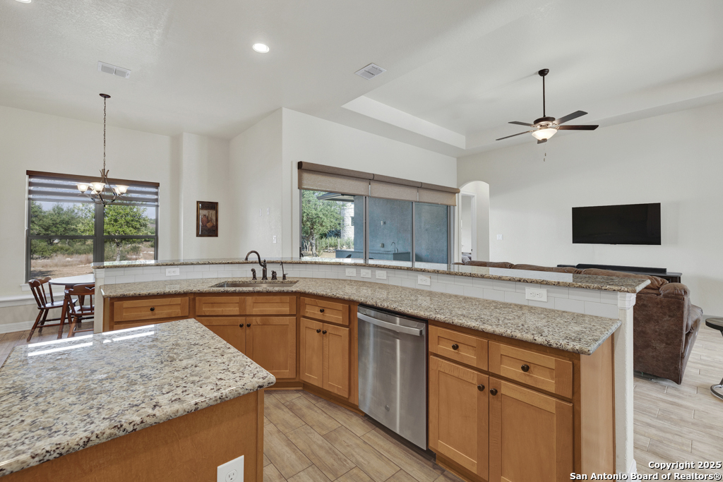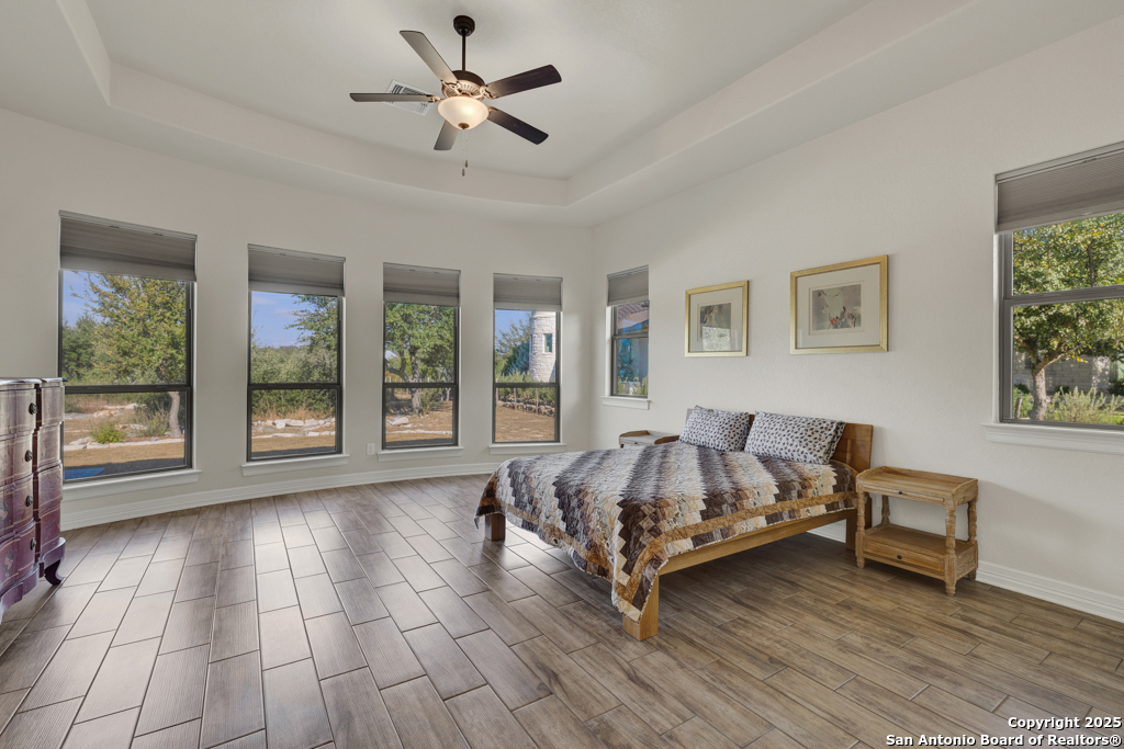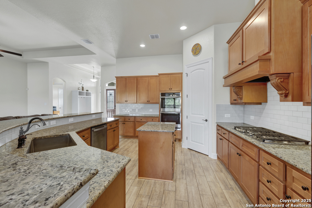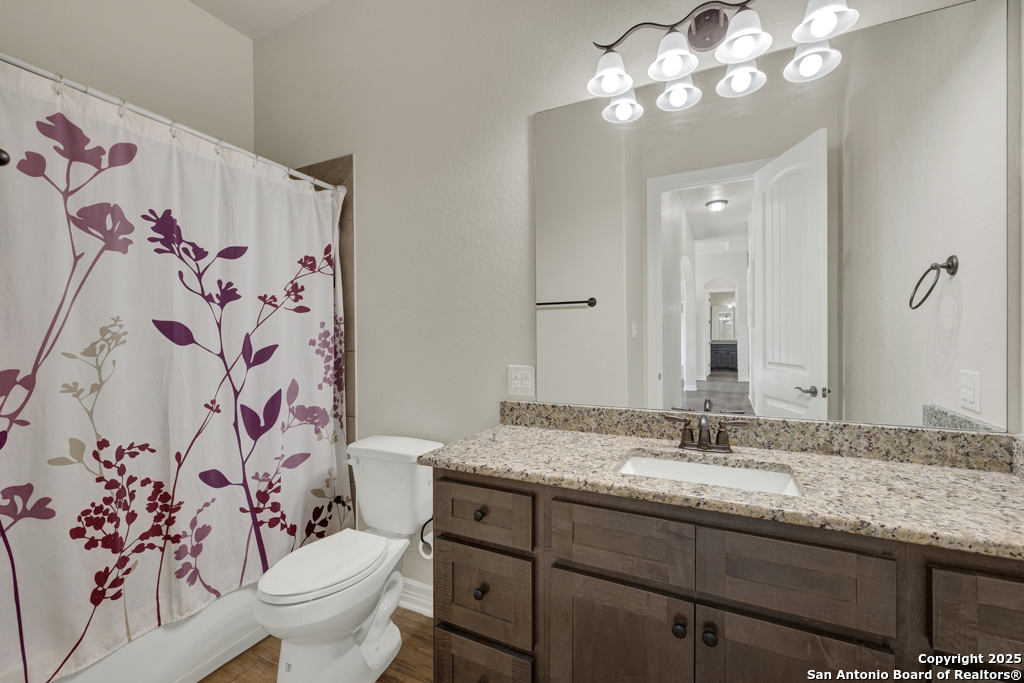 Welcome to this stunning 4-bedroom, 2.5-bathroom home nestled on 1.60 acres in the highly sought-after Vintage Oaks community in New Braunfels, Texas. Boasting 2,558 sq. ft. of elegant living space, this home features an impressive over-sized kitchen, beautiful tile flooring throughout, and a spacious covered patio perfect for relaxing or entertaining. 250 sq ft air conditioned bonus room is located off of the back patio. Surrounded by mature oak trees and scenic backyard trails, this property offers the perfect blend of comfort, style, and Hill Country charm. Enjoy all the Vintage Oaks has to offer, including resort-style amenities such as the community's signature Lazy River, a beautiful clubhouse, a state-of-the-art fitness center, and much much more.