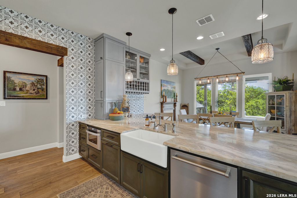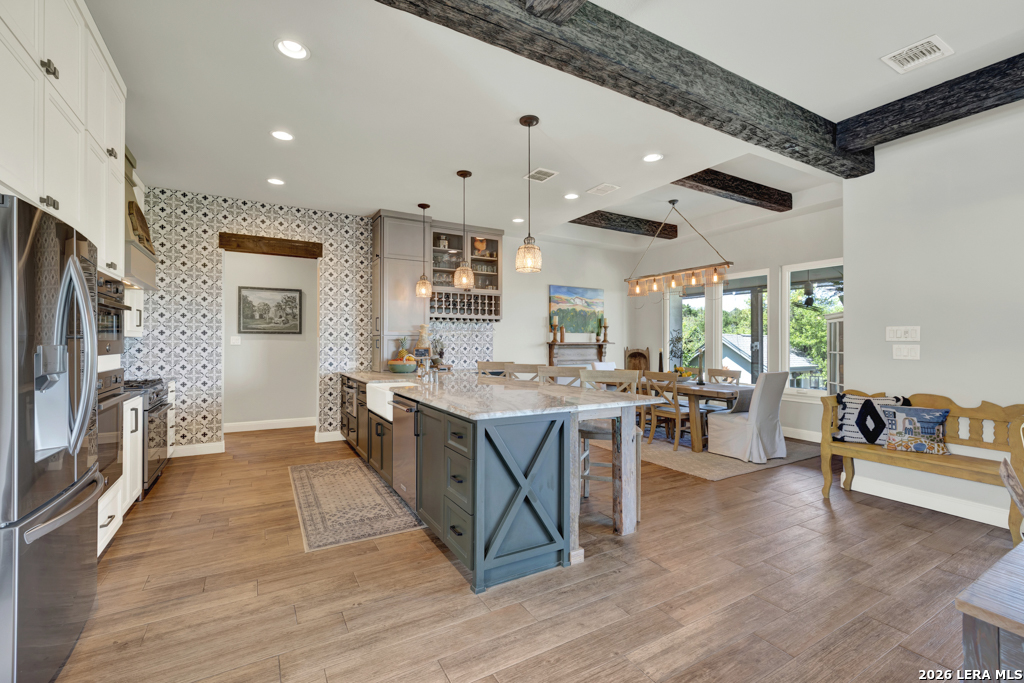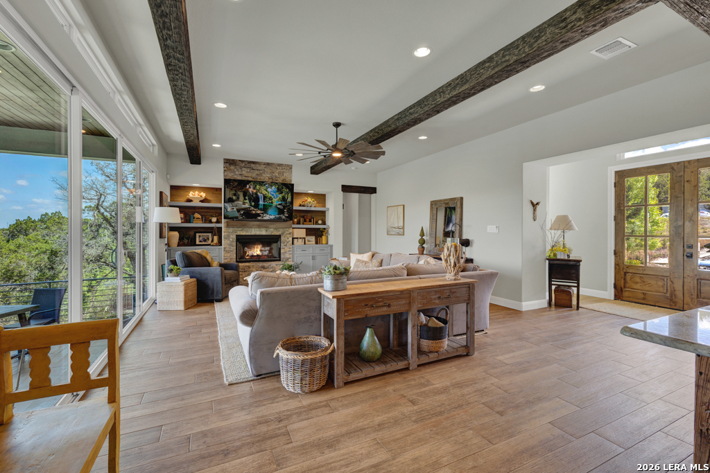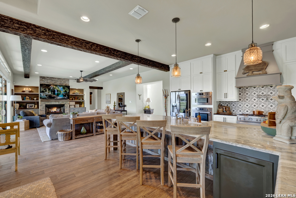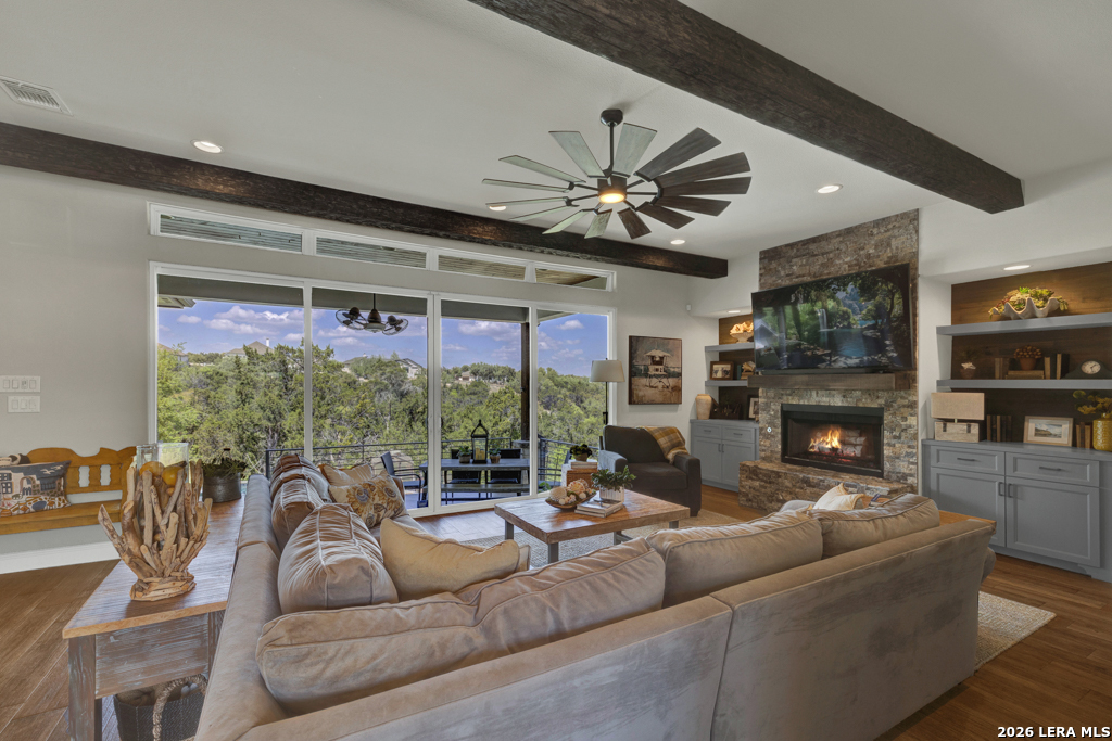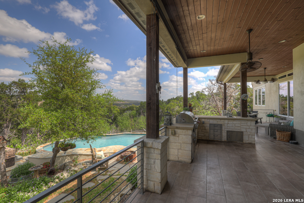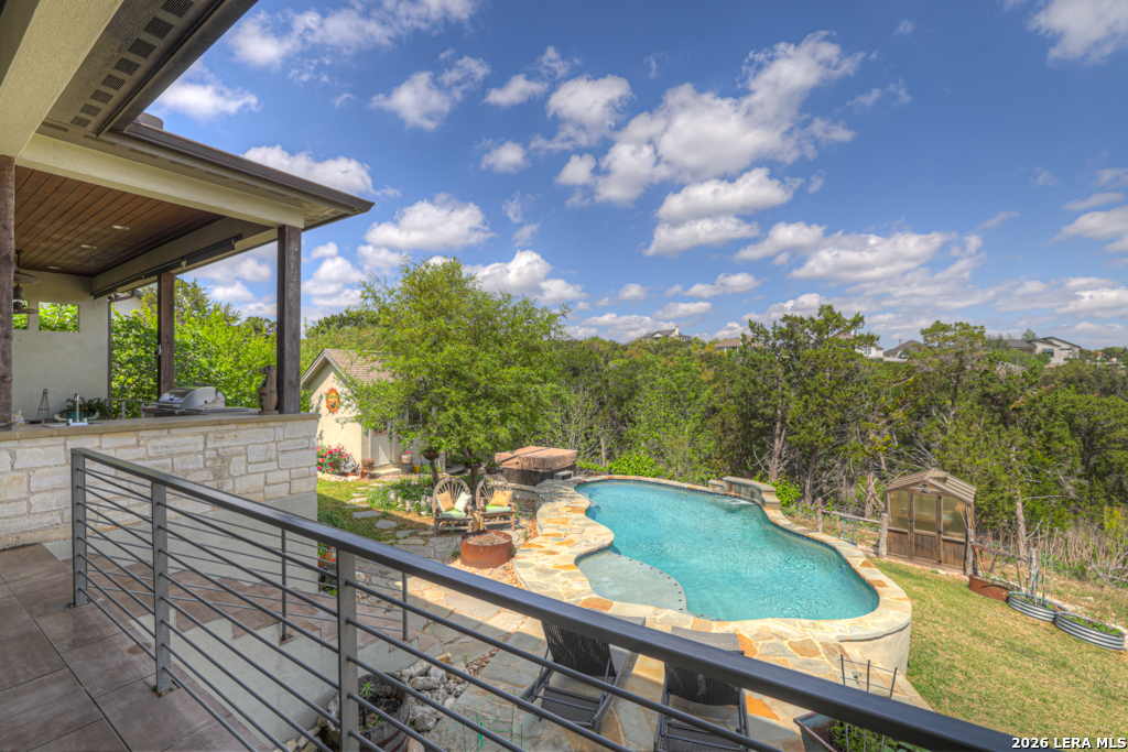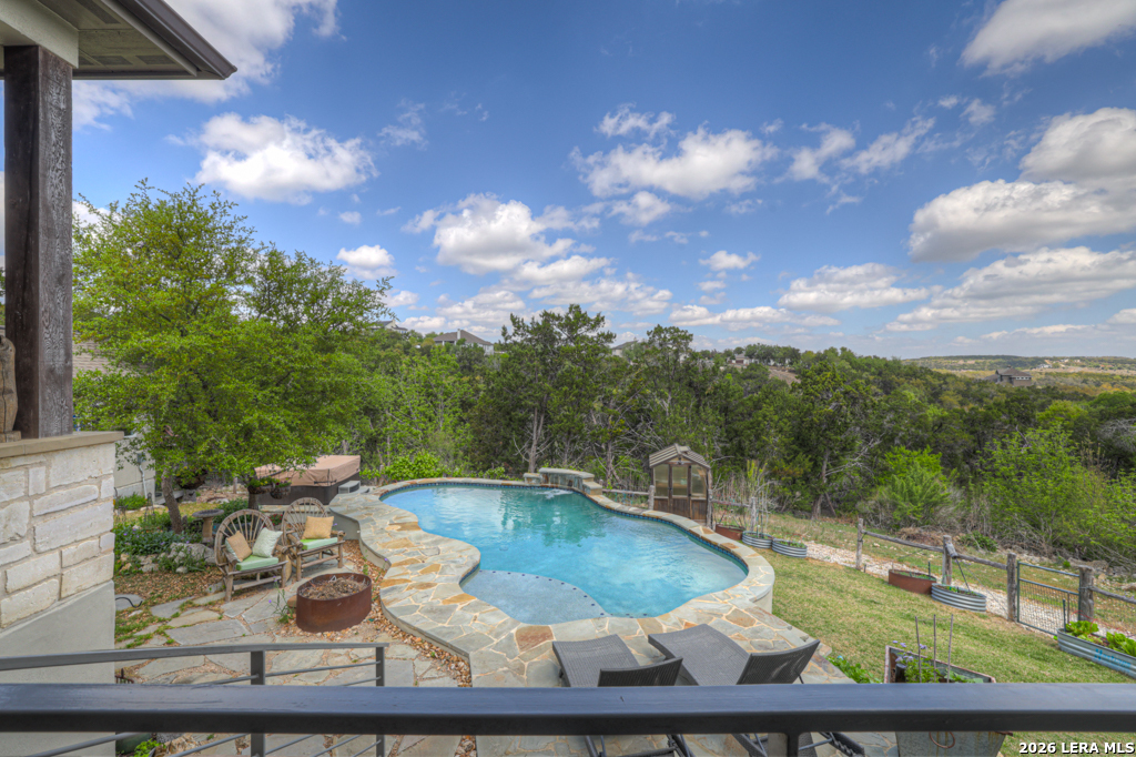 Perched in the heart of Vintage Oaks, 1993 Pinotage offers sweeping Hill Country views that truly set this home apart. With 3 bedrooms, 3 full baths, and a spacious second-floor loft, the layout is both functional and flexible. The loft can easily be converted into a fourth bedroom, additional living space, or a private retreat. Designed with both everyday living and entertaining in mind, the chef's kitchen features premium Bertazzoni appliances, including a 36-inch 6-burner gas range, electric wall oven, steam combi oven, and drawer microwave. An oversized island anchors the space and opens seamlessly to the main living areas. The owner's retreat is a true escape, complete with its own fireplace and a peaceful setting that complements the home's overall privacy and views. Step outside to enjoy your private backyard oasis, complete with a pool and panoramic views that stretch as far as the eye can see. The property also includes a matching storage shed, greenhouse, and thoughtfully planted fruit trees-including fig, peach, and plum-adding both privacy and charm. This is a rare opportunity to own a well-appointed home with unmatched views and unique outdoor features in one of New Braunfels' most sought-after communities.