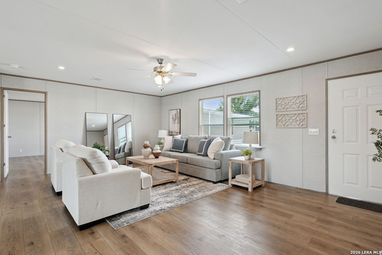 Brand-New Modular Home on 2 Acres - Under $215,000! Take advantage of this rare opportunity to own a new construction "to-be-built" modular home in a rural location, yet inside Loop 1604 - an ideal blend of country living with nearby conveniences! The home can be built on a concrete foundation and qualifies for FHA, VA, and Conventional financing. Enjoy the peace of mind that comes with all-new utilities, systems, and upgrades, paired with the freedom of living on a generously sized property. The proposed floor plan offers excellent living spaces including the open Living Room / Kitchen / Dining Room, plus a separate Family Room with nearby "Tech Space" Office, plus Mud Room! Custom finishes available - Buyers still have the chance to select interior finishes and personalize the home to their taste. This listing price is land and home only. Buyer has the option to install & connect utilities or add that to the total sales price. The land is ideal for country living and has space for your "mini farm", with a seasonal creek that renders some of the acreage in the 100-year flood plain. Home photos are for inspirational purposes only and are from similar nearby project. Final home placement, orientation, and features may vary.