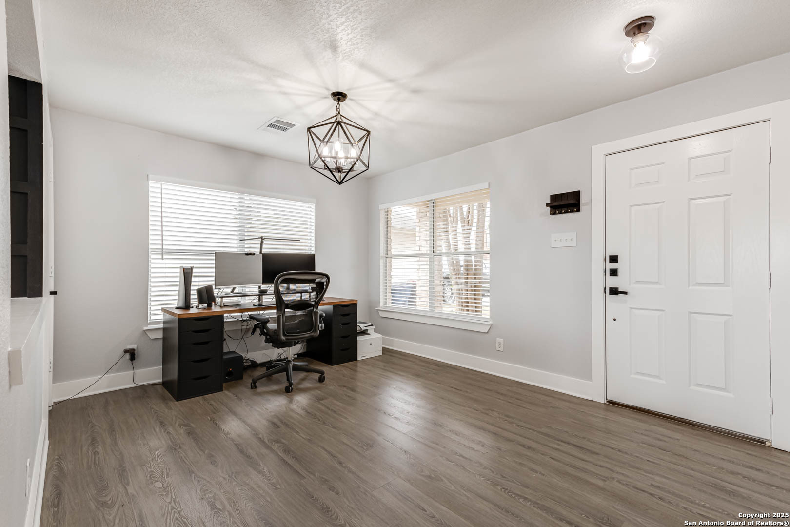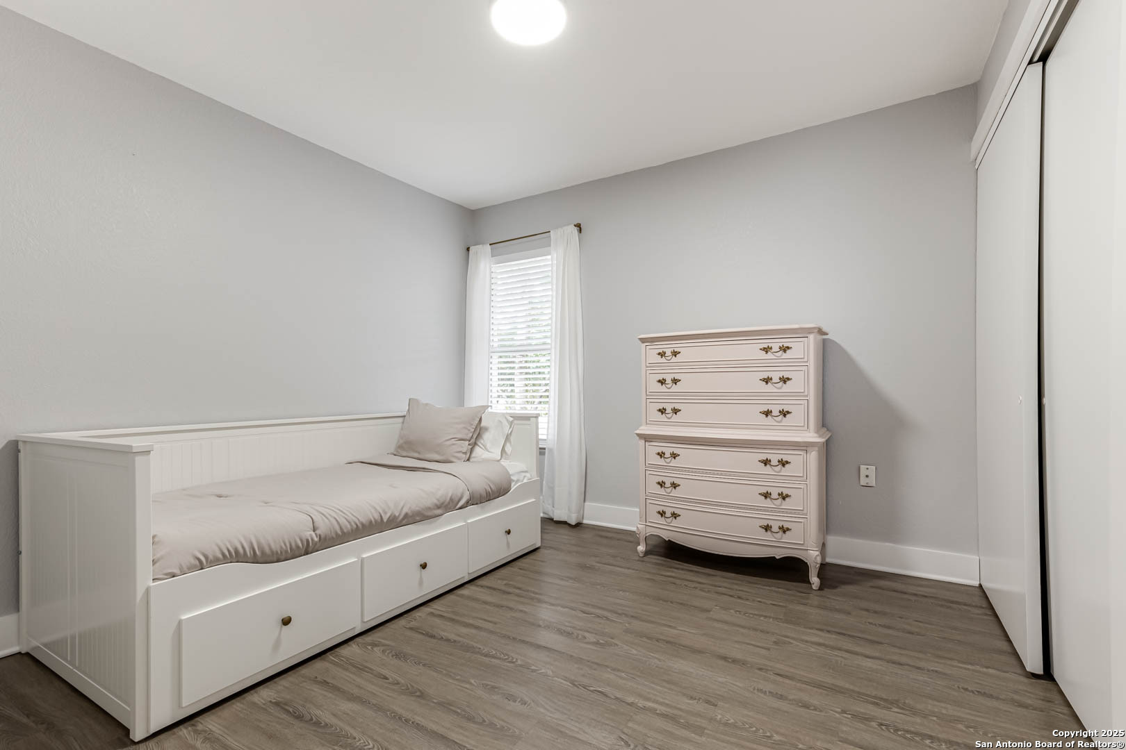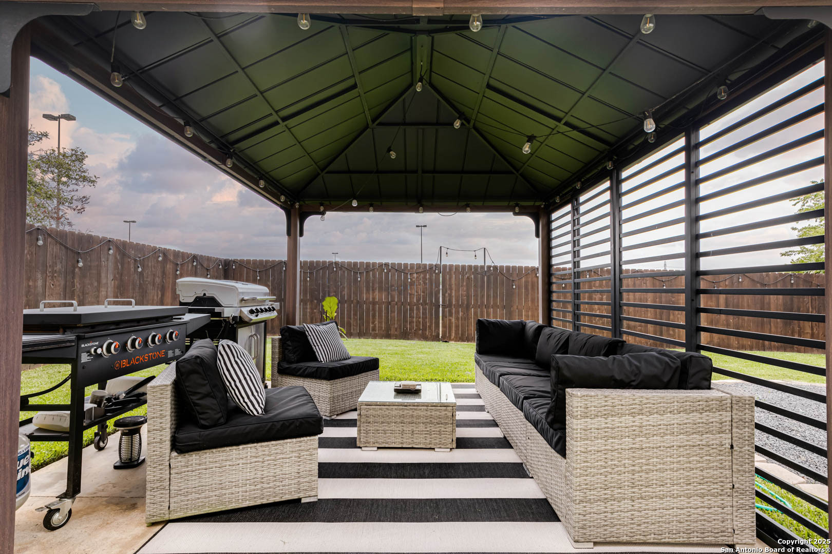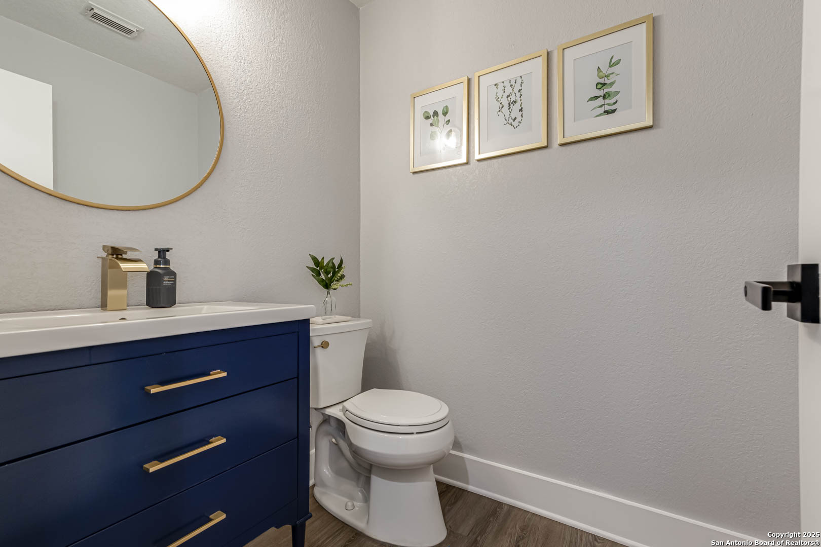 Step into this beautifully remodeled modern dream home offering 3 bedrooms, 2.5 bathrooms, and a 2-car garage. Centrally located off Thousand Oaks, this home offers convenient access to grocery stores, popular restaurants, and a great school district -making everyday living a breeze. The neighborhood has private access to McAllister Park as well. Inside, you'll find luxury vinyl plank flooring throughout, fresh interior paint, upgraded trim, and designer light fixtures that bring a stylish and cohesive feel to every room. The fully renovated kitchen is the centerpiece of the home, featuring a stunning marble waterfall island that perfectly blends elegance and functionality. Enjoy multiple living spaces ideal for both entertaining and everyday living, including a spacious family room and a flexible additional area perfect for a home office. The oversized laundry room with an attached walk-in pantry adds practicality and storage. Beautiful accent walls throughout the home add character and charm. Upstairs, all bedrooms are thoughtfully tucked away alongside a generous game room. The oversized primary suite includes an en suite bathroom with a sleek double vanity, tub/shower combo, and a large walk-in closet. Outside, relax under the pergola or gather around the fire pit with friends and family-ideal for weekend barbecues or quiet evenings under the stars. This move-in-ready home combines modern updates, functional spaces, and a prime location to deliver the full package.
