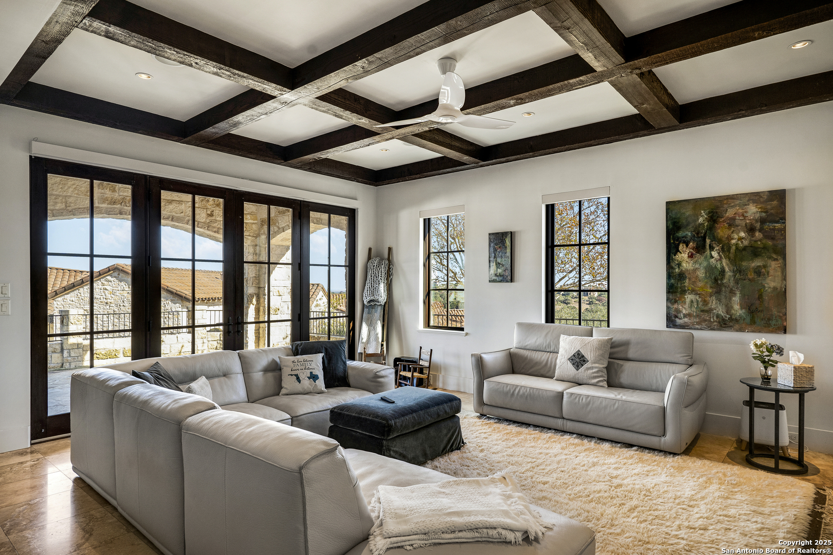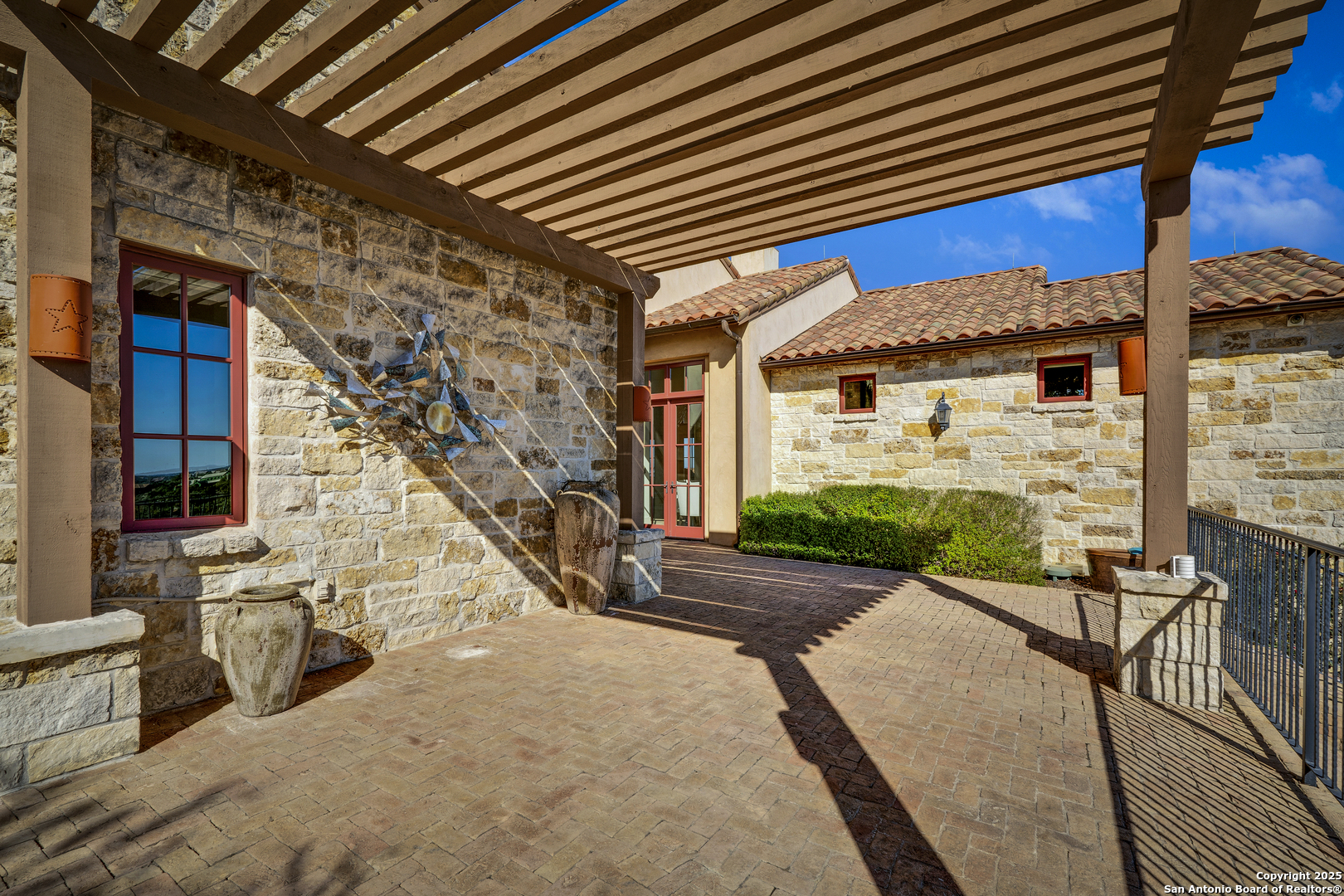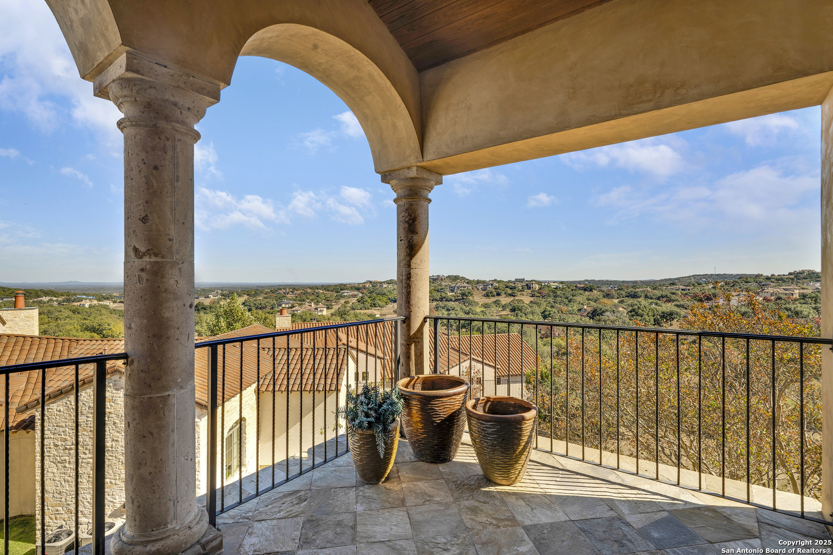 *THIS HOME HAS A FULL MASTER GOLF MEMBERSHIP AVAILABLE FOR PURCHASE* Perched atop a scenic hill, this Di Lusso Villa offers breathtaking panoramic views and an elevated lock-and-leave lifestyle, tucked behind a private gated entry within the prestigious, guard-gated community of Cordillera Ranch. Ideally located just minutes from the Golf Course, Clubhouse, and world-class amenities, the home is easily accessible by private golf cart. A grand, welcoming courtyard sets the stage as you enter the residence, immediately drawing your attention to the stunning vistas beyond. Inside, a dramatic foyer opens to a grand-scale family room, where refined Hill Country living and meticulous attention to detail are evident throughout. The open-concept floor plan features soaring ceilings, exposed wood beams, and generous living spaces, offering four bedrooms, each with its own ensuite bath. Designed for both beauty and function, the chef's kitchen is a culinary showpiece with Viking and Fisher & Paykel appliances, ample workspace, and seamless flow to the adjacent dining area-perfect for entertaining while enjoying sweeping Hill Country views. The luxurious primary suite, located on the main level, serves as a private retreat with expansive windows framing the surrounding landscape. The spa-inspired bath features radiant heated floors and an oversized soaking tub positioned to take in the rolling countryside. An additional guest suite on the main floor provides comfort and privacy for visitors. The second level offers a versatile great room or game room complete with a wet bar and access to an oversized patio-ideal for relaxing or entertaining while soaking in the dramatic scenery. Two additional bedrooms with ensuite baths complete this level, offering flexible living options. Designed for year-round enjoyment, the home features four spacious patios, perfect for entertaining or unwinding amid gentle Hill Country breezes. A Generac 24KW whole-home generator provides added peace of mind during inclement weather.