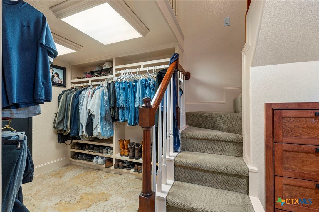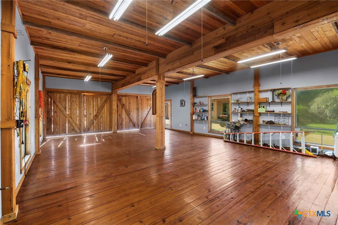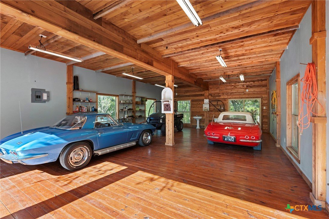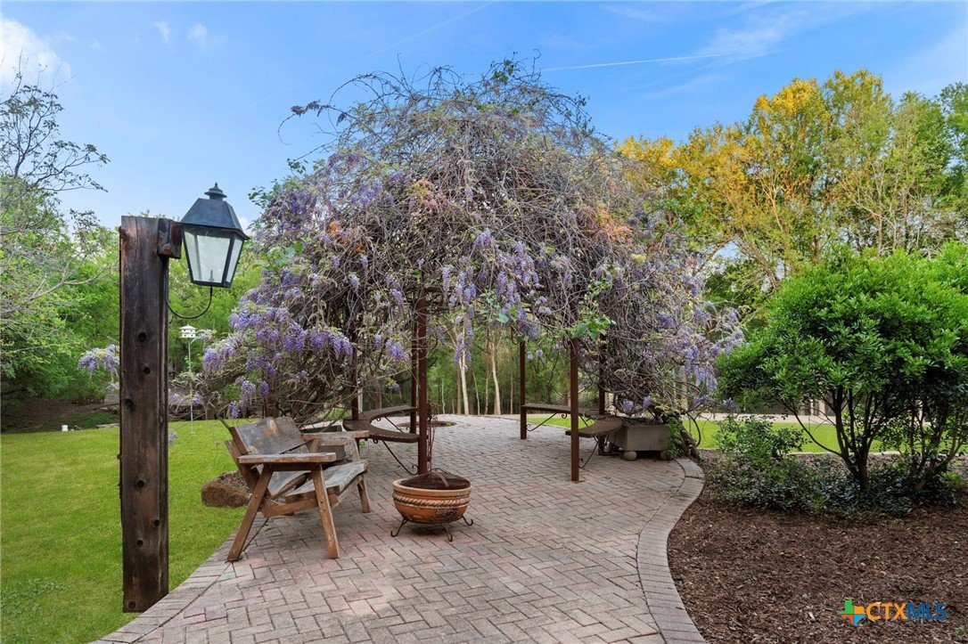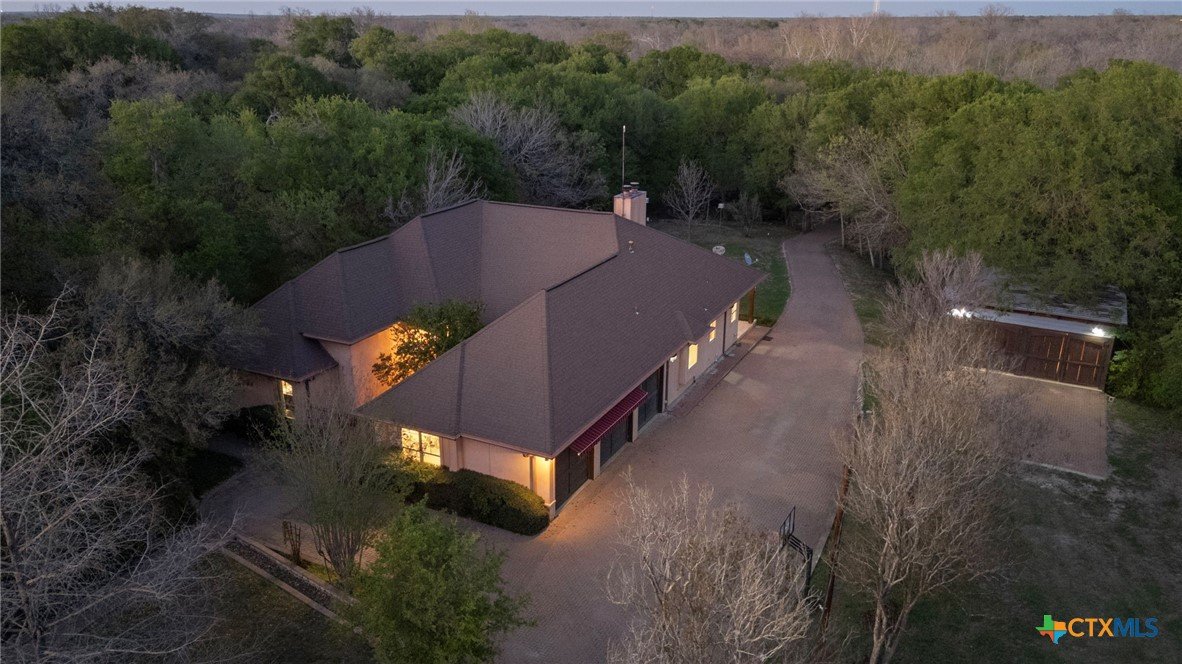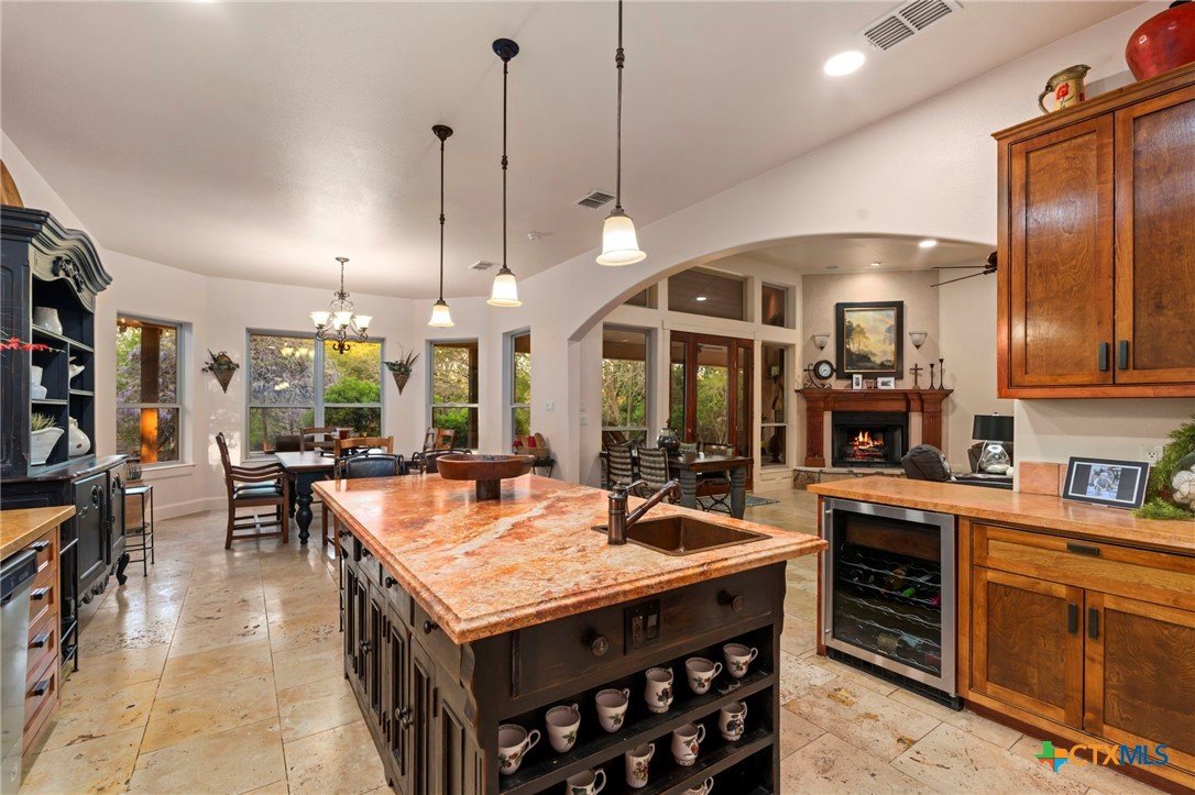 Mediterranean Inspired Riverfront Estate with Exceptional Grounds and Guest Accommodations Set on approximately 2.84 acres with direct San Marcos River frontage, this distinctive estate offers a rare combination of architectural character, expansive outdoor living, and guest accommodations. Thoughtfully designed, the property provides a private setting enhanced by natural surroundings. The main residence is a Mediterranean-style stucco home featuring three bedrooms and two and a half bathrooms with travertine flooring throughout. The kitchen includes a marble island and custom cabinetry. Two secondary bedrooms open to a private courtyard for seamless indoor-outdoor living. The primary suite offers a spacious retreat with a two-story closet, jetted tub with heating system, and reinforced safe room. Outdoor living includes a covered patio with fireplace, TV space, full outdoor kitchen, and fire pit. Additional features include a whole-home generator, leafguard gutters, and a two-car garage with extendable awning. The property also features a four-car garage with tongue and groove flooring, plumbing, and outdoor shower, plus an additional two to three car garage or workshop. A separate one-bedroom guesthouse with full kitchen and private balcony provides comfortable accommodations. A standout feature is the elevated treehouse retreat overlooking the river, designed as an efficiency with kitchenette, living area, outdoor shower, and deck with wood-burning pizza oven and fireplace. The grounds include approximately 18,000 square feet of brick pavers leading from the gated entrance to a riverfront deck, along with covered picnic areas and gathering spaces. Additional highlights include a water feature beneath a bridge, riverside sitting, and full RV hookup. Combining river frontage, architectural detail, and extensive amenities, this property offers a unique opportunity for private enjoyment, entertaining, or flexible living in a scenic Texas setting.
