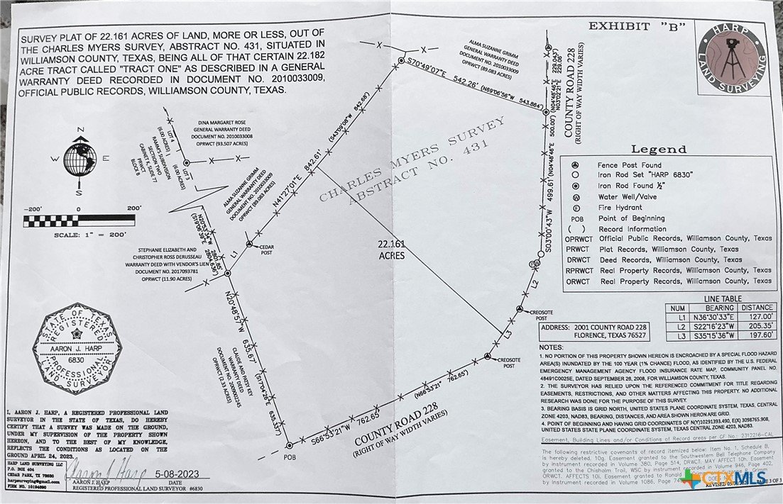 Exceptional Opportunity: Tranquil 22.161-Acre Gentleman's Ranch.. Discover the perfect canvas for your dream estate 11-acre parcel of land, just outside of Georgetown. Enjoy the benefits of agricultural exemption, ensuring low taxes and endless possibilities for your future home in Florence Texas ! Create your own private oasis or develop a family retreat. Benefit from essential amenities with a 6” City of Georgetown utilities line along CR 228, and PEC electricity for your future plans. A wet weather creek is along one property line , enhancing the natural beauty while offering a serene backdrop for leisure or outdoor activities. Seller-imposed deed restrictions maintain the charm of the area, ensuring no mobile homes or off-site structures are placed on the property. Whether you envision a tranquil ranch, a vibrant garden, or simply a peaceful retreat, this prime piece of land is ready for your vision. Schedule your visit today and unlock the potential of this property!