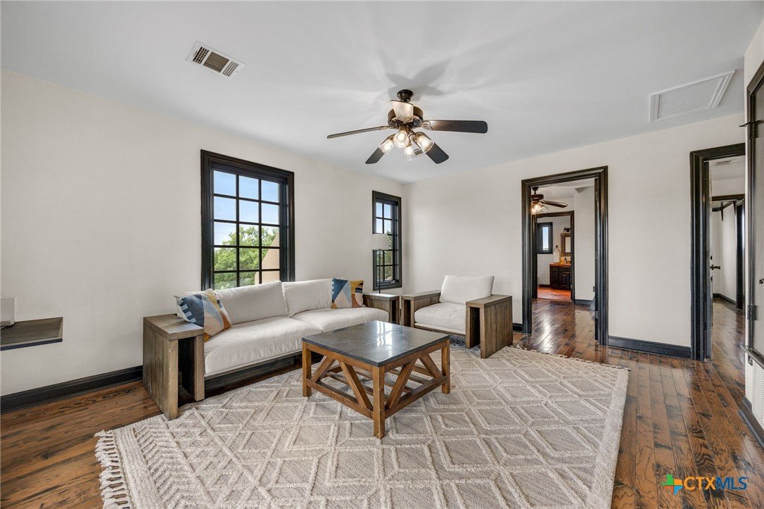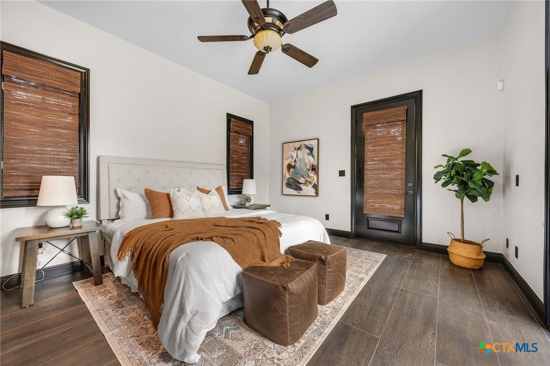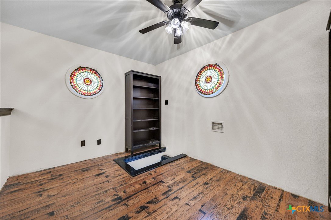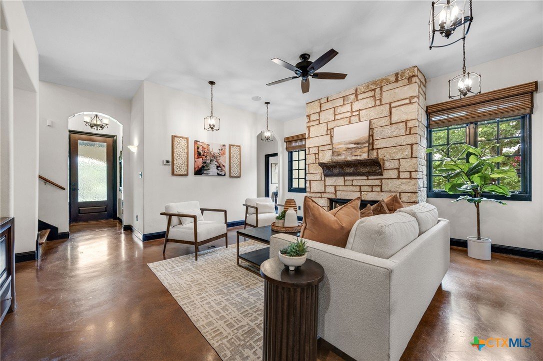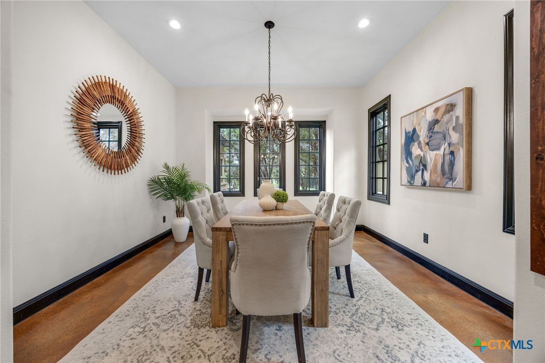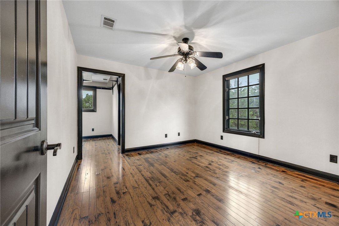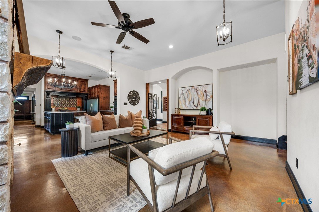 Set on 2.5 secluded acres in the Texas Hill Country, this Spanish villa is genuinely one of a kind. A private gated entrance welcomes you in, leading down a winding drive through mature live oaks before the home comes into view. The red tile roof, limestone and stucco exterior, arched entryways, and wrought iron details give it real character, and the sweeping paver walkway and manicured grounds make you feel right at home from the moment you arrive. The primary bath was recently renovated — freestanding soaking tub, floor-to-ceiling marble tile, herringbone walk-in shower, wood double vanity with backlit mirrors, and a crystal pendant chandelier over the tub. The kitchen feels right at home with dark wood cabinetry, hand-painted Talavera tile, and quartz countertops with a large commercial refrigerator. The attached glass greenhouse is one of those spaces you don't expect to find — cathedral glass panels, treetop views, and endless potential as a sunroom, studio, or plant lover's dream. If you're looking for something with real character, privacy, and acreage in Lago Vista, this is the one!