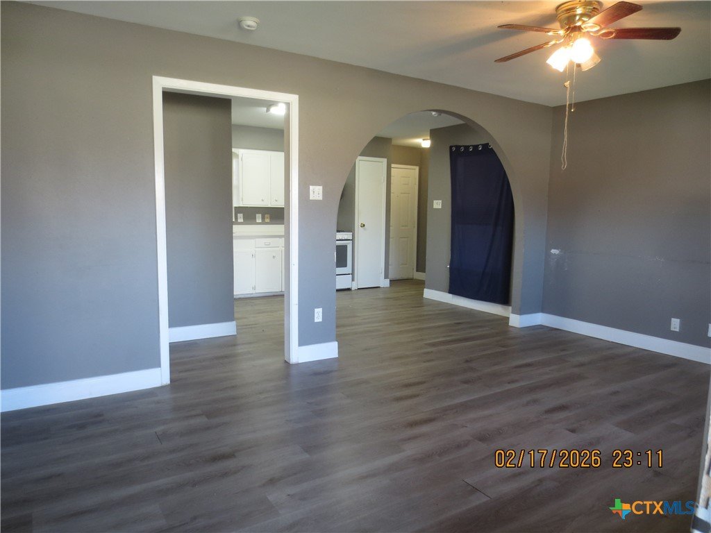 Welcome to this adorable 2 Bedroom 1 Bath home. This home features laminate flooring and granite counter tops in kitchen and bathroom. The living room area is an open concept with large arched entryway to the kitchen and breakfast area. The bathroom with vintage tile [which is making a comeback in 2026] has a shower tub combo and plenty of room for your towels and linens, the bedrooms are roomy with windows that offer great natural lighting. The backyard is spacious with a shed for your lawn mowers and tools. Call and come see your new residence.