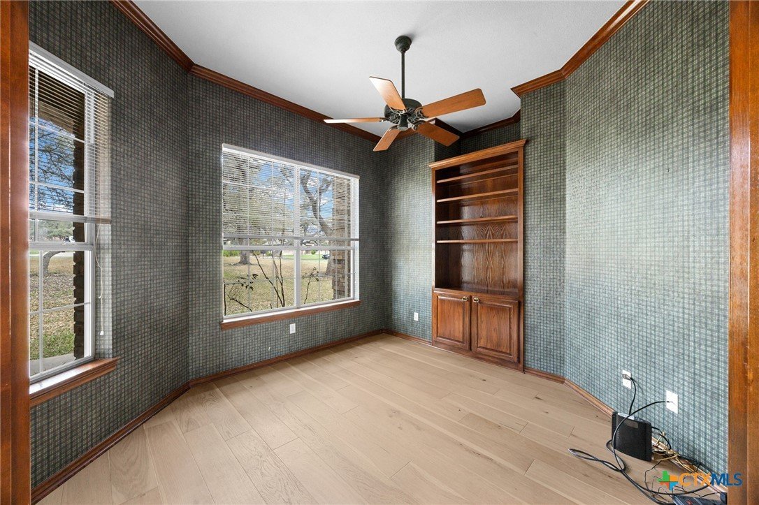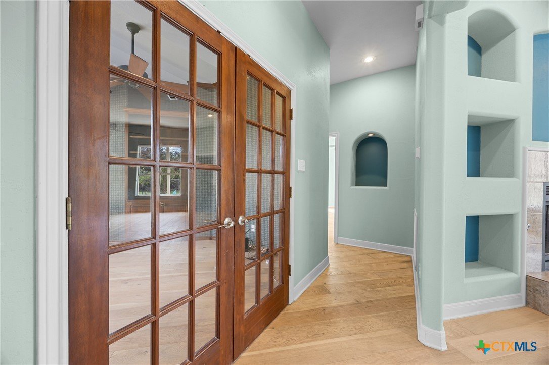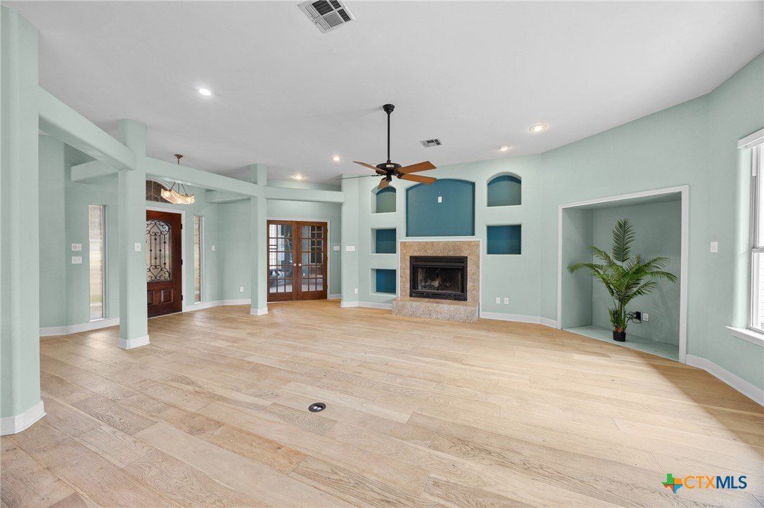 What a great find! single story 3 bedroom home on over 1 acre lot with fantastic space. It feels like it's larger with the open concept from pretty updated kitchen open to the living room and formal dining room and breakfast. Flooded with natural light and pretty art niches in living area with a wood burning fireplace. The main bedroom is separated from main areas and guest. It has high ceilings throughout and a private patio off the main bedroom. The primary bath is wonderful with dual vanities, soaking tub and separate shower and a closet that your friends will envy. The laundry room is spacious with a utility sink and near main bedroom. There is a separate study with french doors that could be easily converted to 4th bedroom, the 2 spacious guest rooms are on that wing with privacy and another full bath for the guests. Don't miss the spectacular large covered patio and extra open patio area for entertaining, plus the amazing back yard that goes beyond the fenced areas. Also, a covered walk way leads to a huge garage enough room for 3 or more vehicles with large double garage door entry. The shingles are current and you can make this home yours with minor updates. Pretty brick exterior and huge oak trees complete this beauty. Walk to shopping and near Jim Hogg Lake entry.