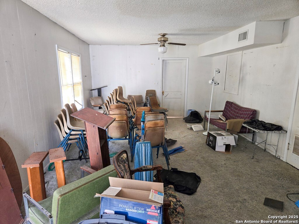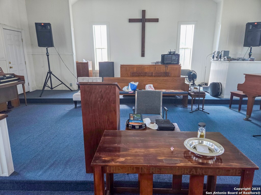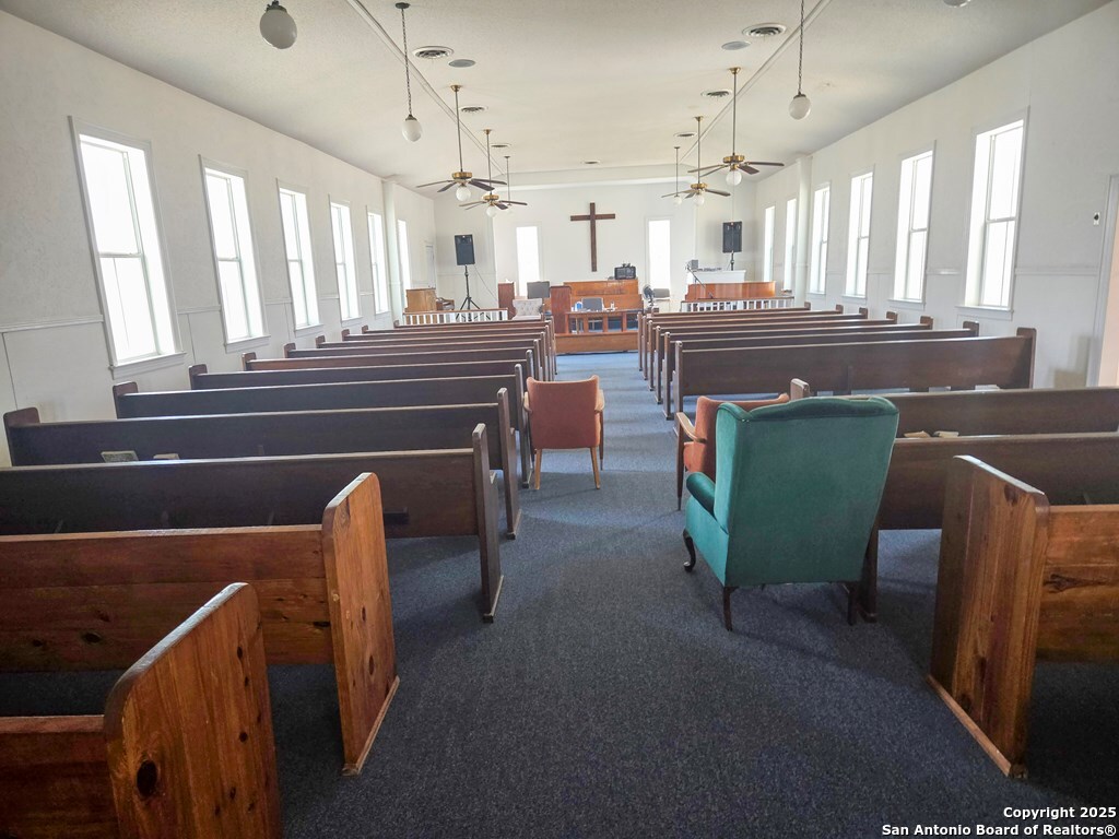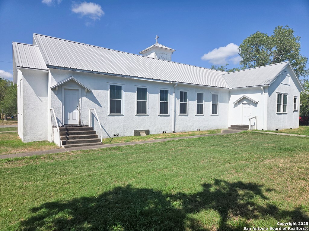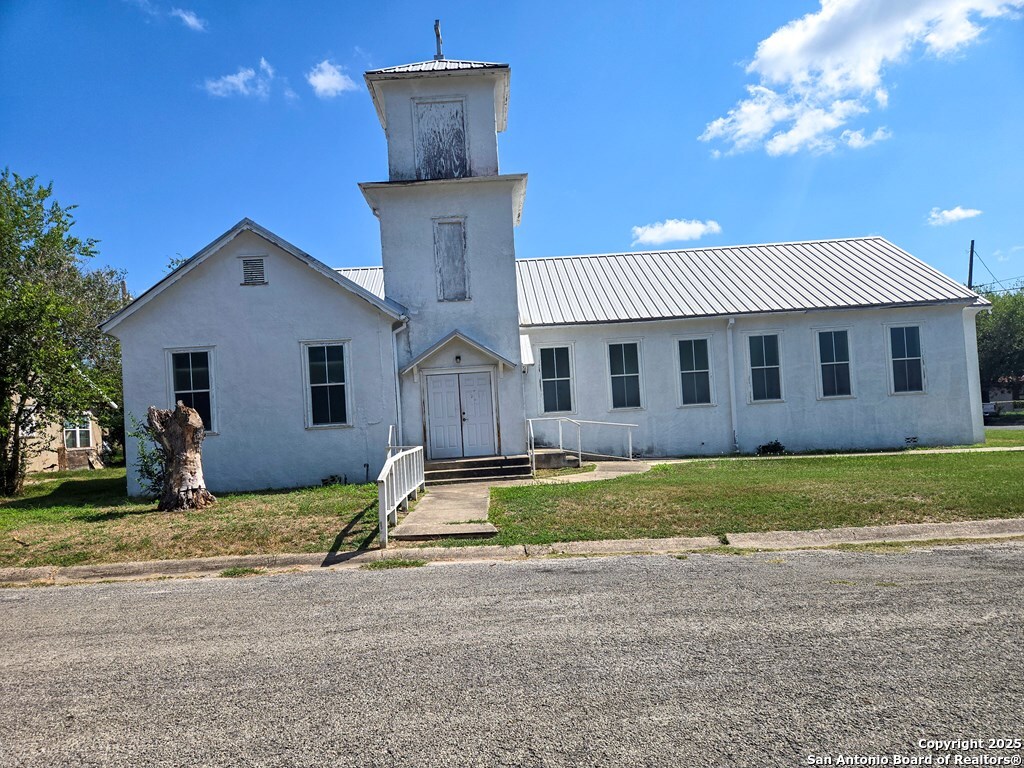 Corner property with Church and parsonage. Church is white stucco with new AC installed in May of this year and a nice metal roof. Ceilings soar in the sanctuary while 23 beautiful wooden pews provide ample seating. Mahogany flooring beneath the carpet in the church. Kitchen, bathroom and office in Church. Sidewalk leads to the 2 bedroom 1 bath parsonage/fellowship hall. Large room in front of house could be used for reception area, classroom study or living area if used for parsonage. Original kitchen in house and no bathtub in bath area. Needs some repair and updating.; Original MLS#: 113513; Features: Ceiling Fan; Land Dimensions: 100 X 140; Land Size Apx: .32 ac.; Occupancy: Vacant; Possession: Close Of Escrow; Road Front Ft: 240; Road Surface: Asphalt; Tax Year: 2024; Total Taxes: 0.00; Underground Tanks: No; Water: Public; Water District: Yes; Water Heater: None; Windows: Wood