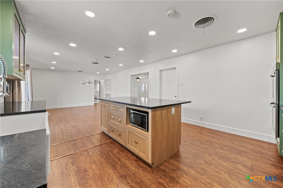 Tucked beneath a canopy of mature trees, this charming 3-bedroom, 2-bathroom home welcomes you with character at every turn. Step inside, where original charm meets modern convenience, and feel the warmth of a space designed for both comfort and connection. The heart of the home is the fully renovated kitchen—a dream for anyone who loves to cook or entertain. Custom soft-close drawers and display cabinets offer endless storage, while the gas cooktop and vent hood set the stage for culinary inspiration. A sunlit walk-in pantry adds a touch of charm, making every ingredient easy to find. Flowing living spaces invite gatherings both big and small, while large windows fill the home with natural light. Outside, the towering trees provide shade and serenity, creating a peaceful escape in your own backyard. Enjoy summer and winter nights relaxing around the outdoor fireplace. Perfectly situated in the heart of Temple, this home is just minutes from shopping, schools, and a quick 10-minute drive to Baylor Scott & White. Don’t just find a house—discover a home filled with history, warmth, and possibility.