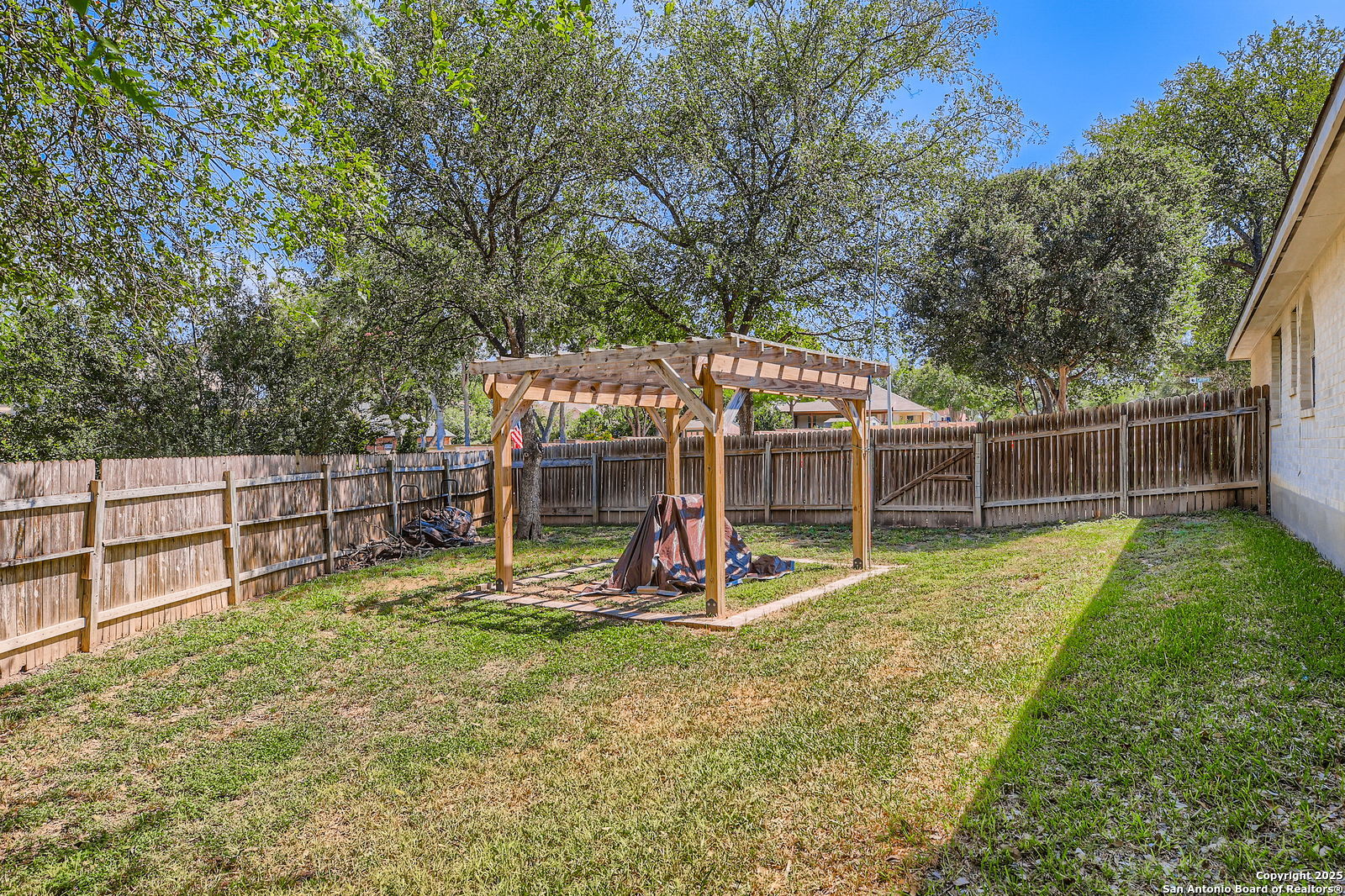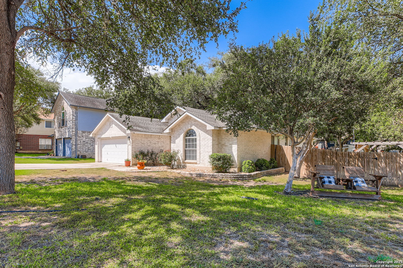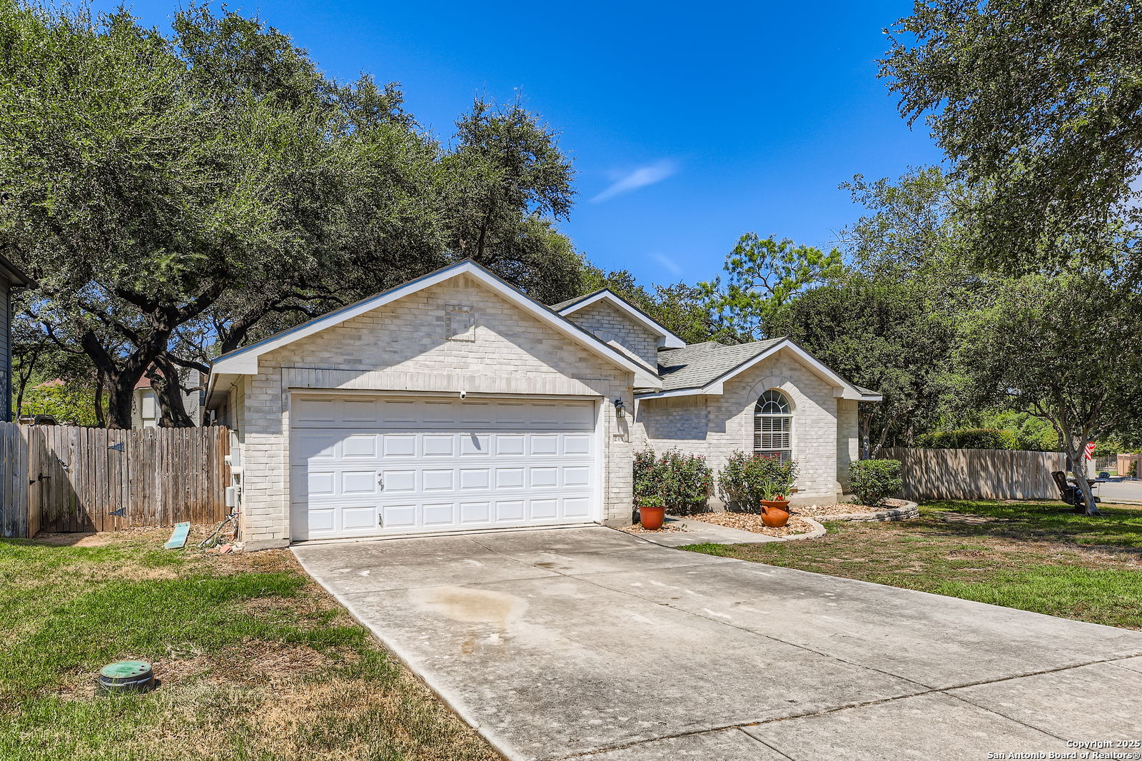 Welcome to this charming one-story home, nestled on a large corner lot in the desirable Deer Creek subdivision. The property offers great curb appeal with its mature oak trees and thoughtful landscaping. Step inside to find a freshly painted interior with soaring ceilings, hardwood flooring, and an open-concept layout. The kitchen has ample cabinetry, a new dishwasher, a center island, and a breakfast bar, making it great for family gatherings. The spacious primary suite offers a walk-in closet and en-suite bath. This home has been well-maintained and features several recent updates, including a new A/C and hot water heater, updated electrical and plumbing, and an air purifier installed in the air ducts. The home is also plumbed for a water softener. Located in Schertz-Cibolo-Universal City ISD, this property is just minutes from shopping, dining, and Randolph AFB. The neighborhood has jogging trails, a park, and sports courts for you to enjoy. Don't miss your chance to own a well-maintained home in this peaceful neighborhood.