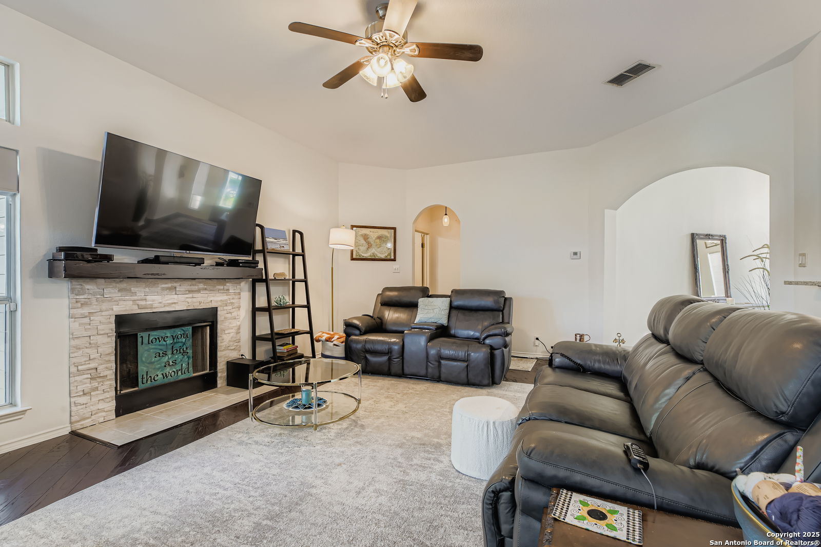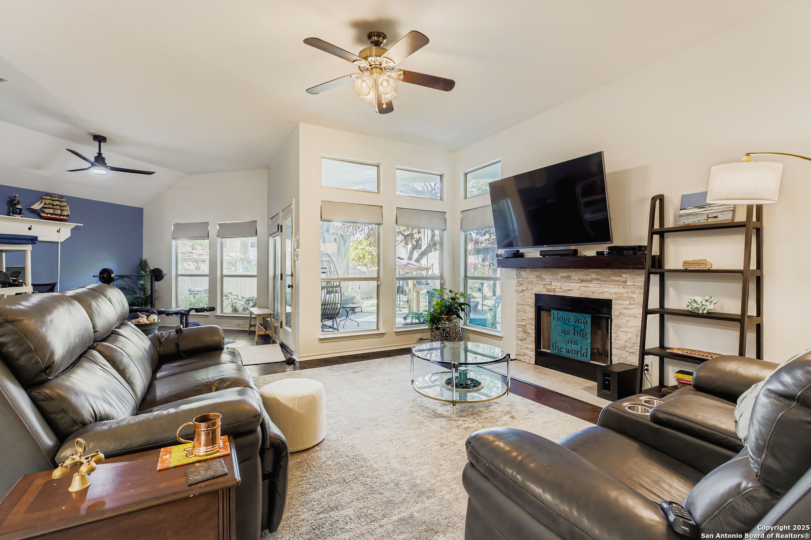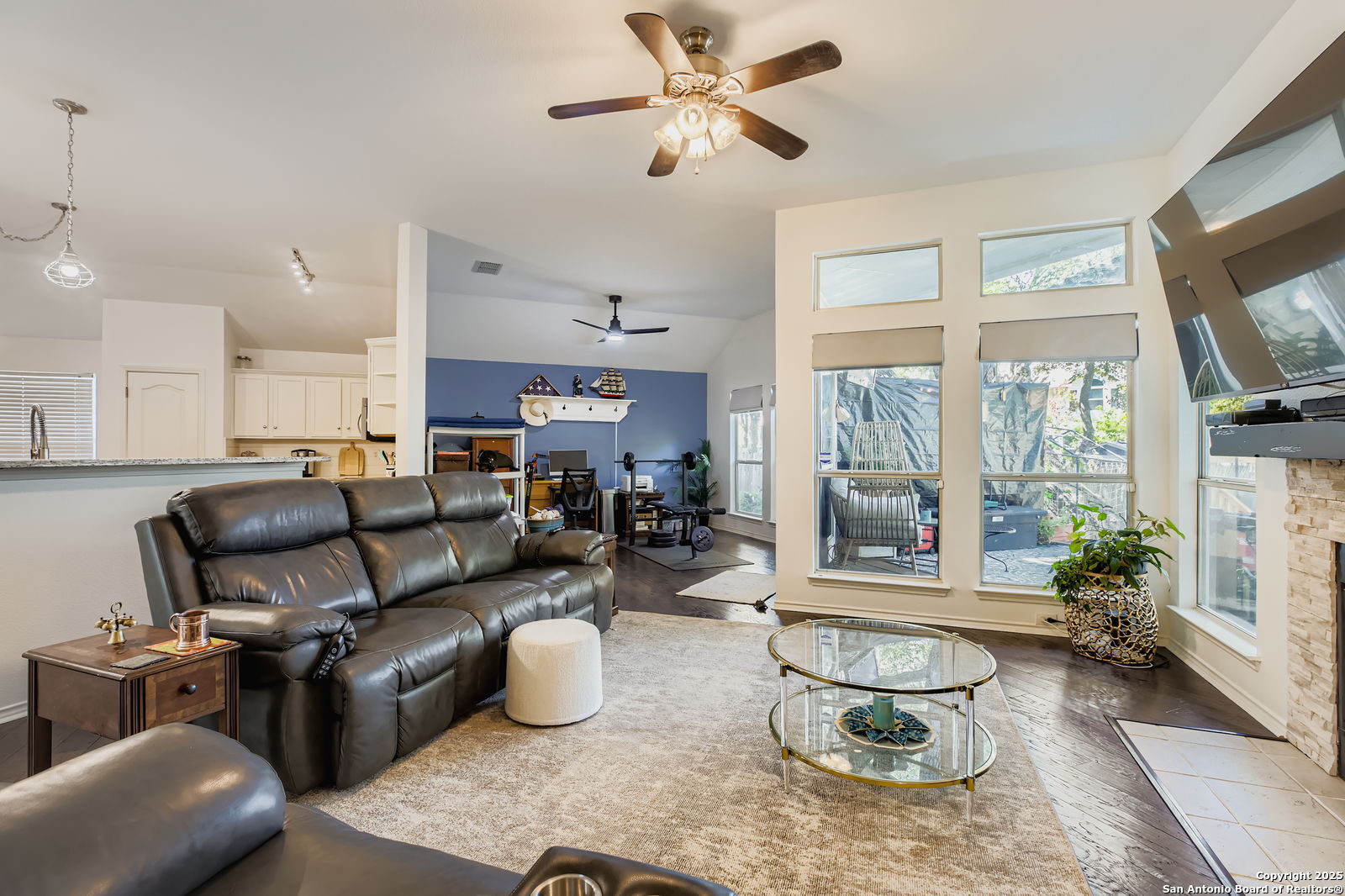 Welcome to this charming one-story home, nestled on a large corner lot in the desirable Deer Creek subdivision. The property offers great curb appeal with its mature oak trees and thoughtful landscaping. Step inside to find a freshly painted interior with soaring ceilings, hardwood flooring, and an open-concept layout. The kitchen has ample cabinetry, a new dishwasher, a center island, and a breakfast bar, making it great for family gatherings. The spacious primary suite offers a walk-in closet and en-suite bath. This home has been well-maintained and features several recent updates, including a new A/C and hot water heater, updated electrical and plumbing, and an air purifier installed in the air ducts. The home is also plumbed for a water softener. Located in Schertz-Cibolo-Universal City ISD, this property is just minutes from shopping, dining, and Randolph AFB. The neighborhood has jogging trails, a park, and sports courts for you to enjoy. Don't miss your chance to own a well-maintained home in this peaceful neighborhood.