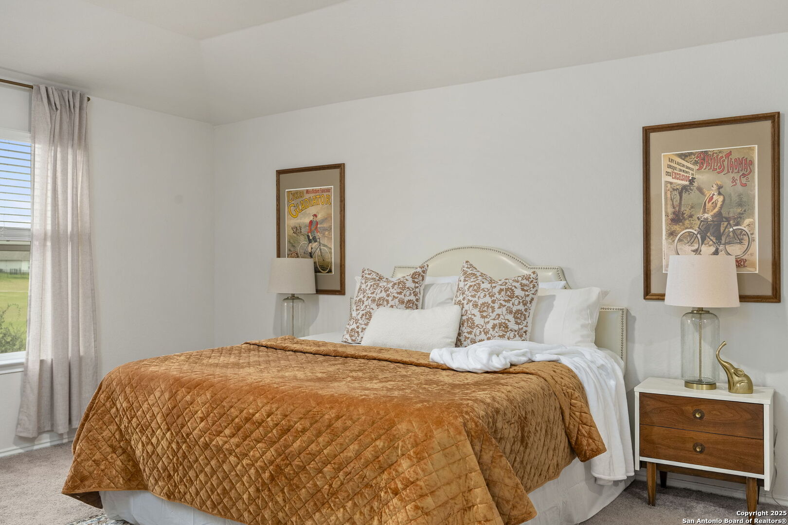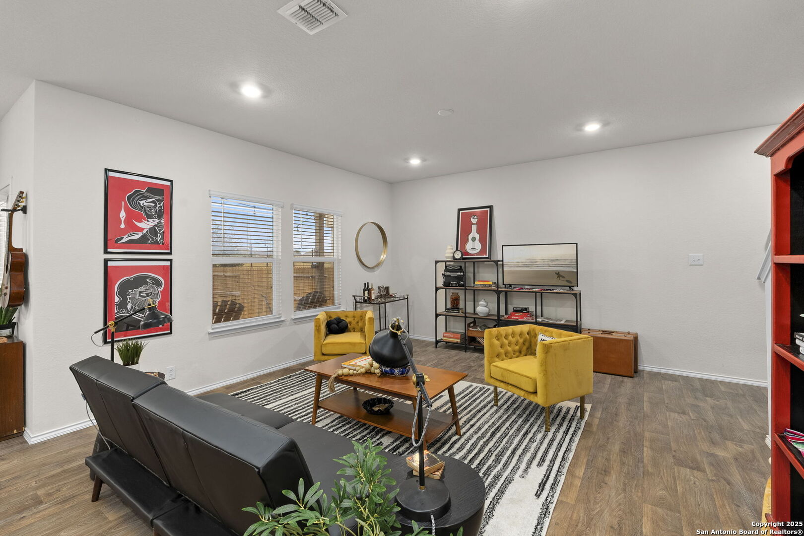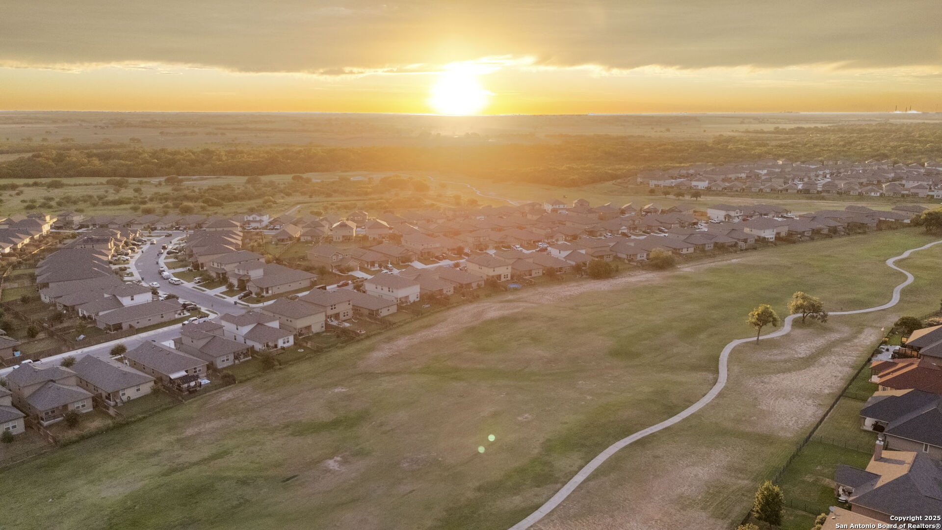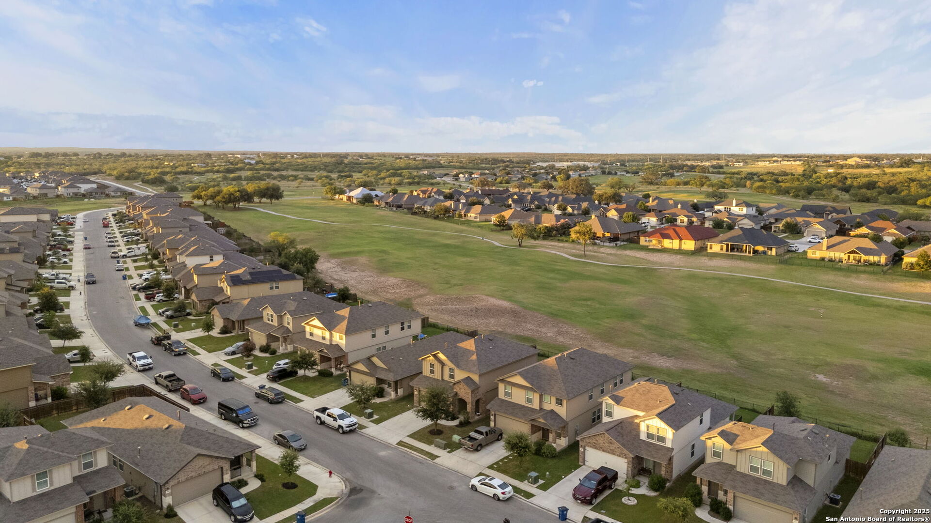 Take advantage of an assumable loan at an incredible LOW interest rate and enjoy golf course living at its finest. Wake up to panoramic golf course views and unforgettable Texas sunsets at The Links at River Bend in the heart of Floresville, Texas. This beautifully maintained 4-bedroom, 2.5-bath home offers a seamless blend of modern style and serene surroundings, backing directly onto the lush fairways for ultimate privacy. Step inside to an inviting open-concept floor plan featuring vinyl flooring, soft neutral tones, and designer accents. The spacious living room flows effortlessly into the dining area and gourmet kitchen, which is equipped with granite countertops, a large center island, sleek white cabinetry, and GE appliances. Perfect for entertaining, the main level showcases views of the backyard oasis and golf course beyond. Upstairs, discover generously sized bedrooms, including a private primary suite with a spa-like ensuite, and a walk-in closet. Additional rooms offer versatility for guest accommodations, a home office, or creative spaces. Outside, the backyard is a showstopper-string-lit patio, fire pit lounge area, and endless open skies set the stage for weekend barbecues and relaxing evenings. No rear neighbors-just fairway views and peace.