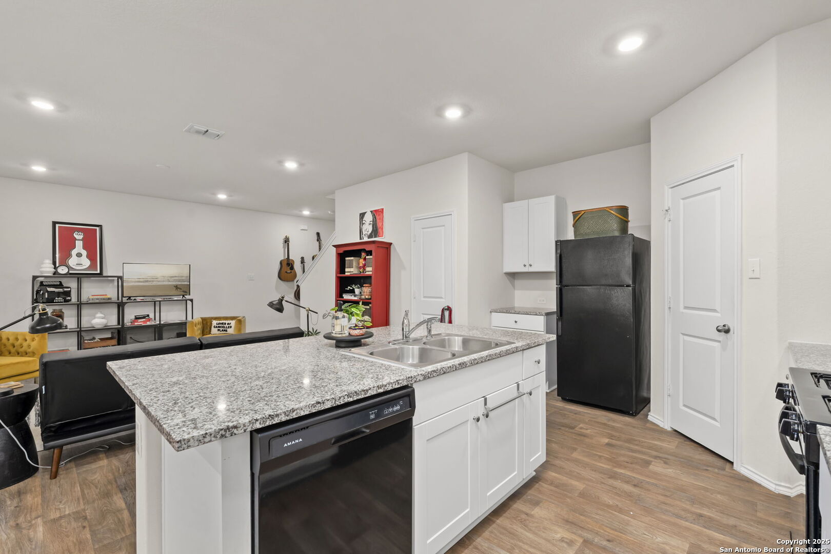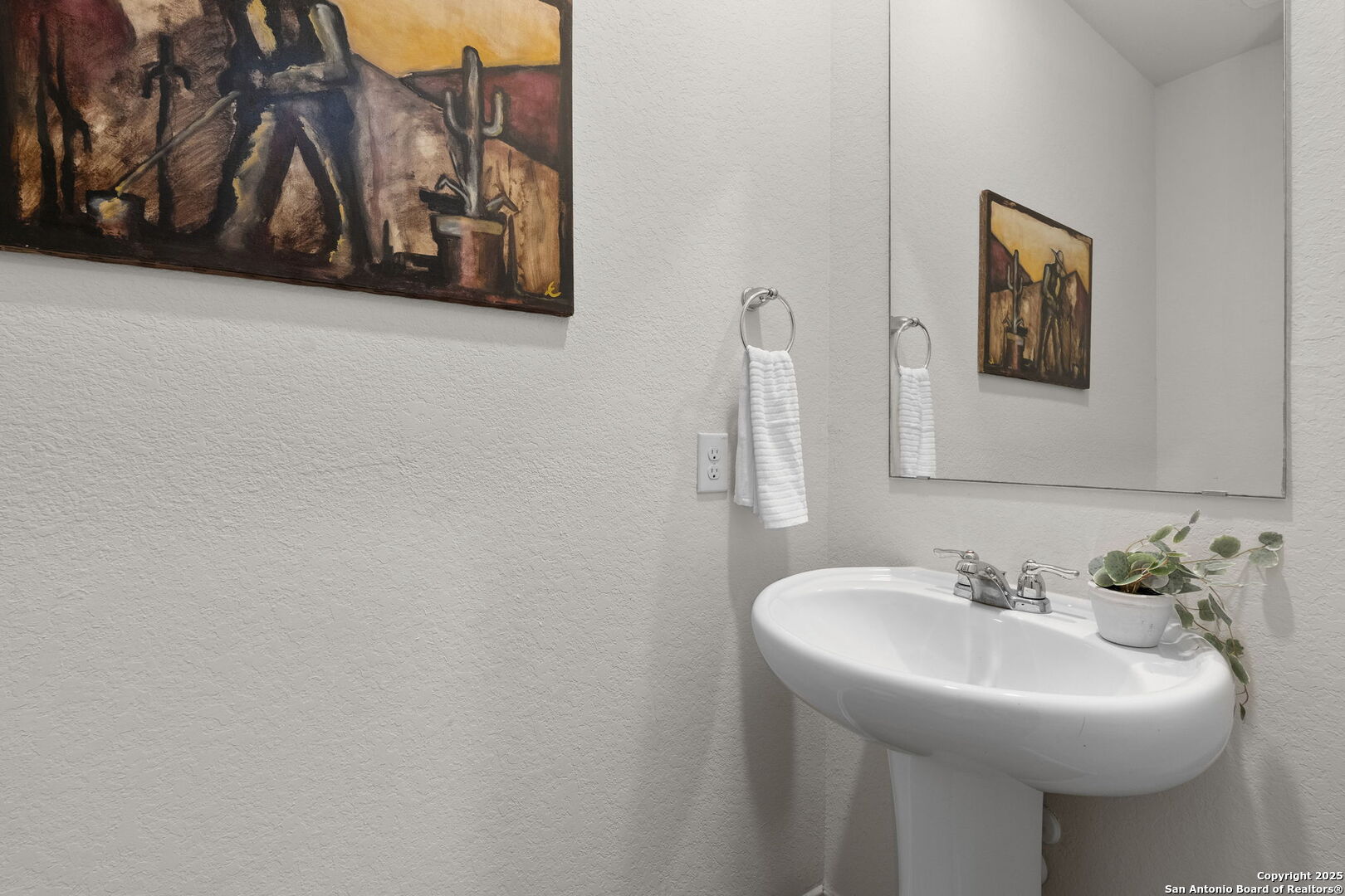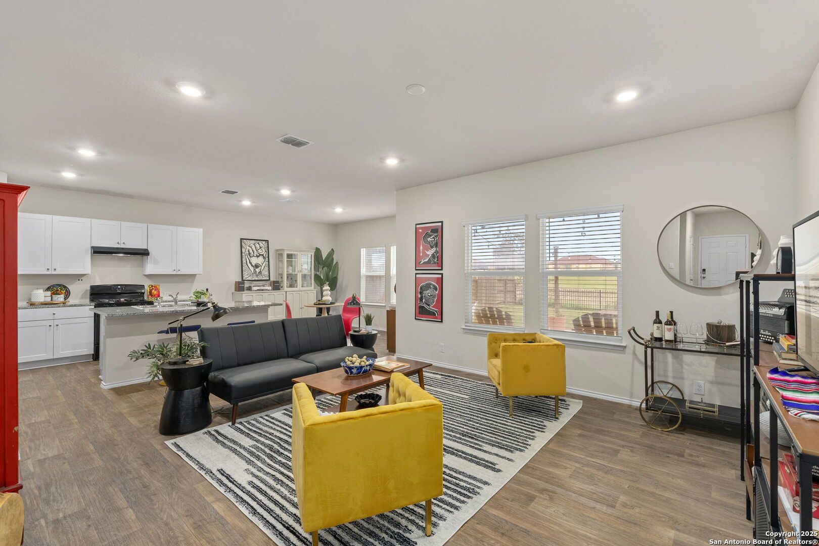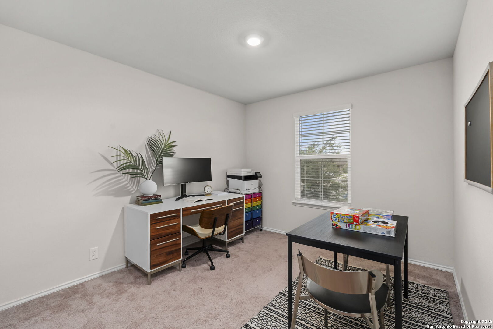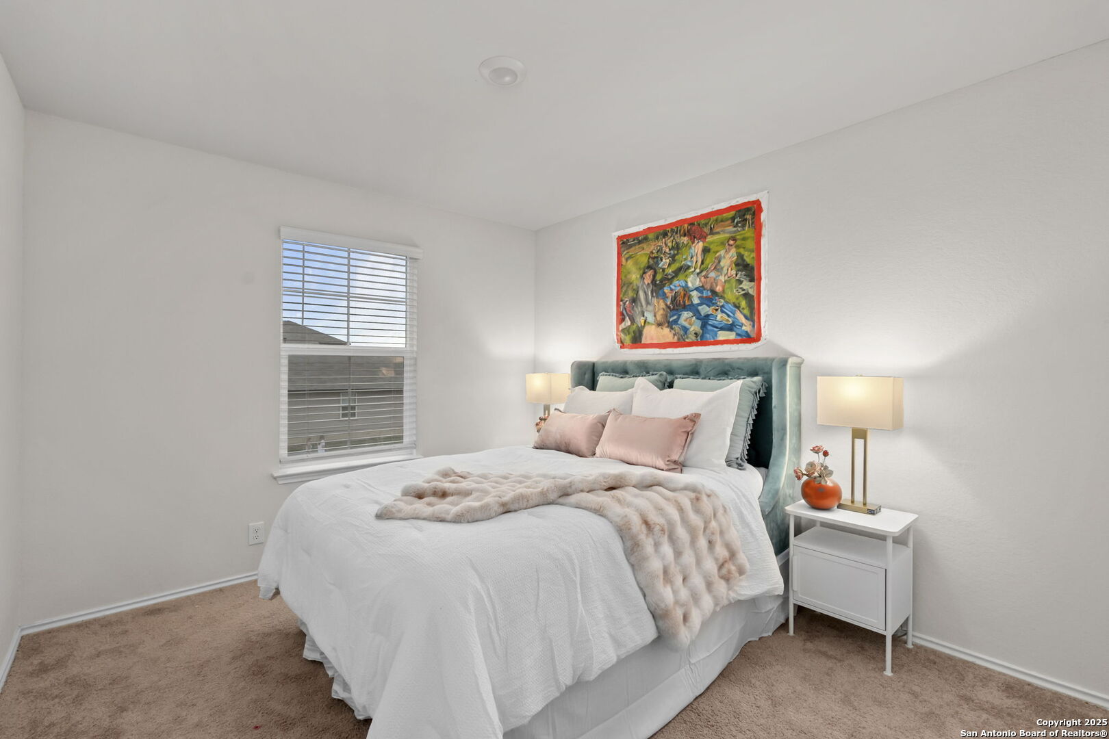 Take advantage of an assumable loan at an incredible LOW interest rate and enjoy golf course living at its finest. Wake up to panoramic golf course views and unforgettable Texas sunsets at The Links at River Bend in the heart of Floresville, Texas. This beautifully maintained 4-bedroom, 2.5-bath home offers a seamless blend of modern style and serene surroundings, backing directly onto the lush fairways for ultimate privacy. Step inside to an inviting open-concept floor plan featuring vinyl flooring, soft neutral tones, and designer accents. The spacious living room flows effortlessly into the dining area and gourmet kitchen, which is equipped with granite countertops, a large center island, sleek white cabinetry, and GE appliances. Perfect for entertaining, the main level showcases views of the backyard oasis and golf course beyond. Upstairs, discover generously sized bedrooms, including a private primary suite with a spa-like ensuite, and a walk-in closet. Additional rooms offer versatility for guest accommodations, a home office, or creative spaces. Outside, the backyard is a showstopper-string-lit patio, fire pit lounge area, and endless open skies set the stage for weekend barbecues and relaxing evenings. No rear neighbors-just fairway views and peace.