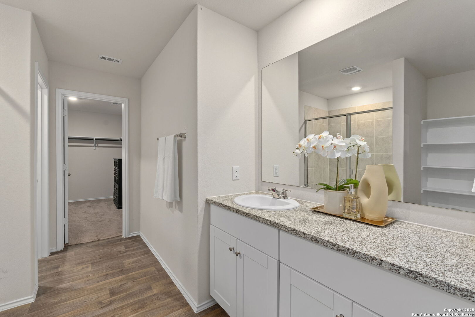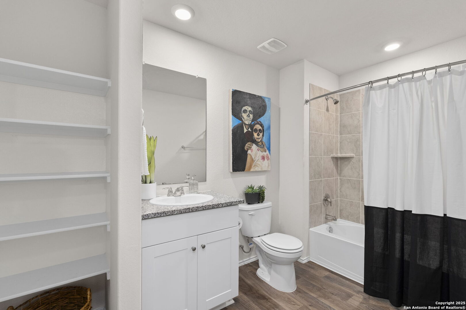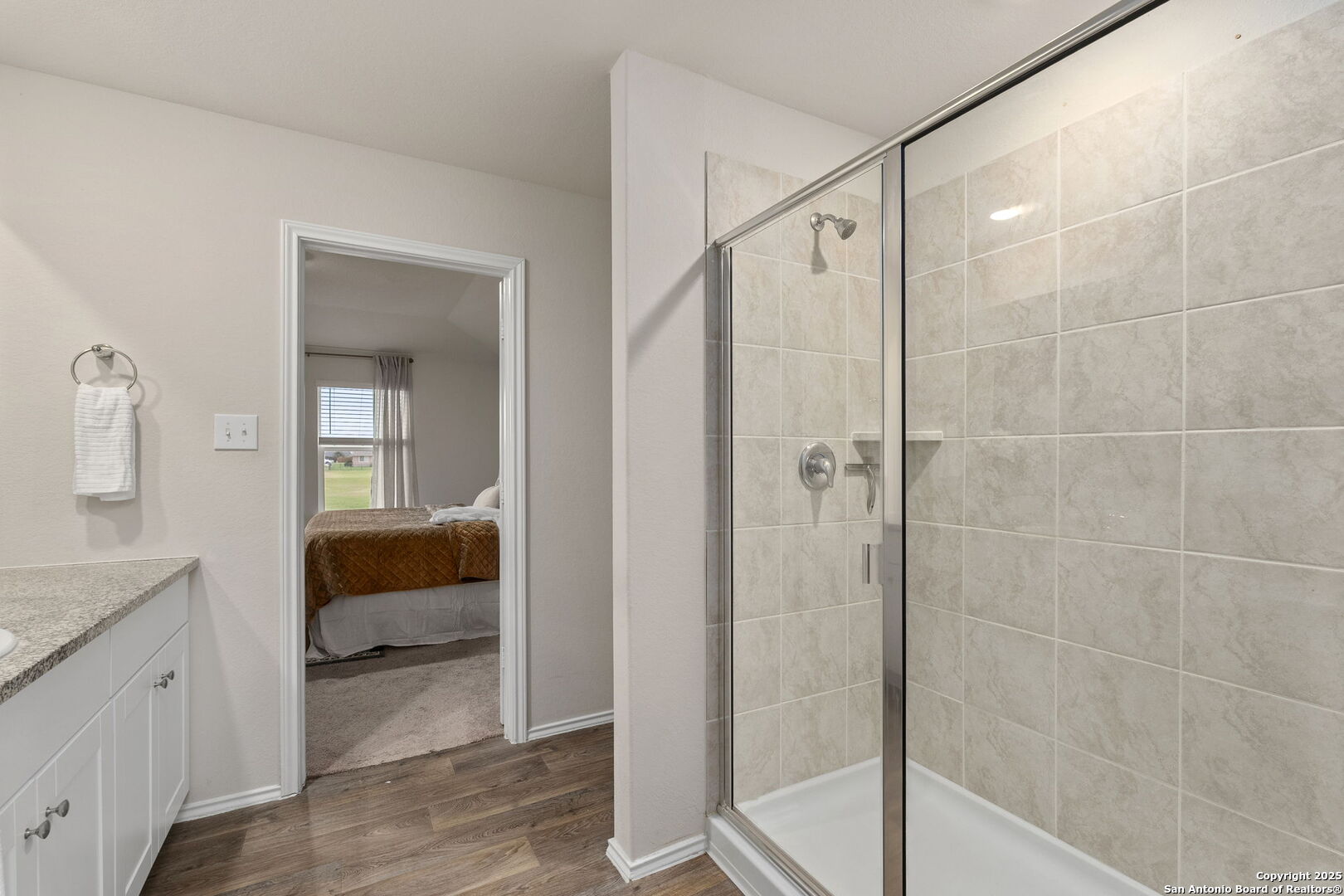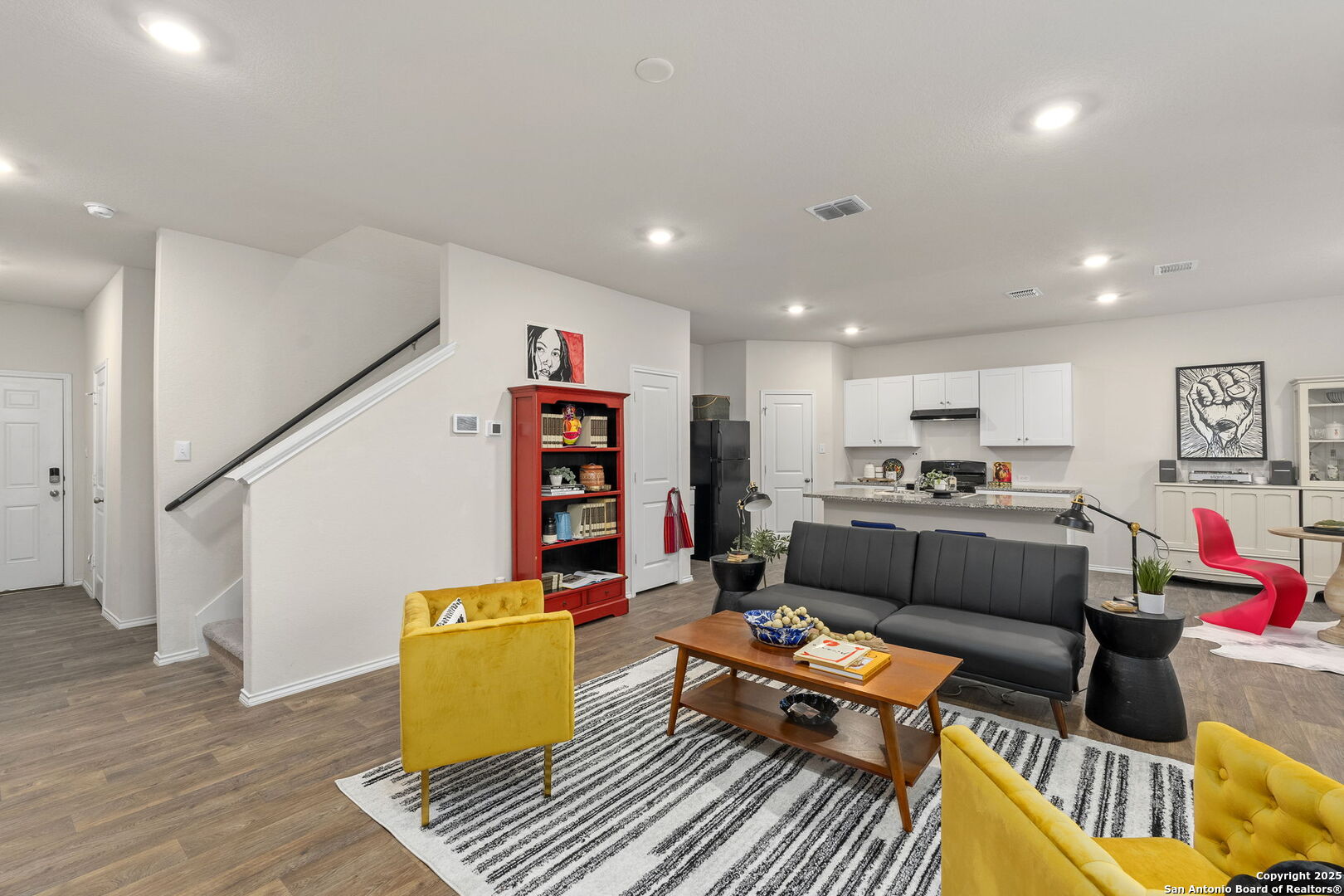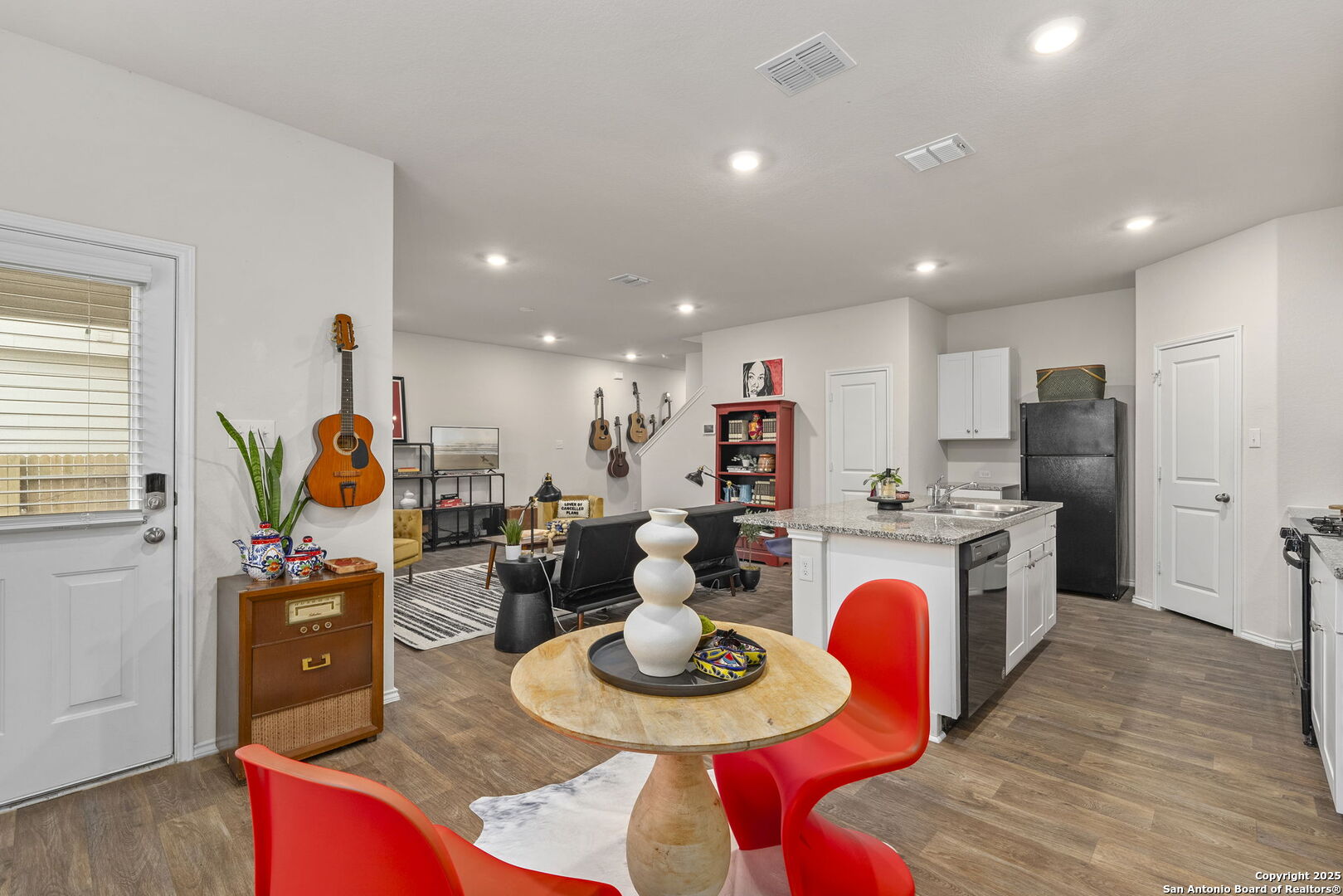 Take advantage of an assumable loan at an incredible LOW interest rate and enjoy golf course living at its finest. Wake up to panoramic golf course views and unforgettable Texas sunsets at The Links at River Bend in the heart of Floresville, Texas. This beautifully maintained 4-bedroom, 2.5-bath home offers a seamless blend of modern style and serene surroundings, backing directly onto the lush fairways for ultimate privacy. Step inside to an inviting open-concept floor plan featuring vinyl flooring, soft neutral tones, and designer accents. The spacious living room flows effortlessly into the dining area and gourmet kitchen, which is equipped with granite countertops, a large center island, sleek white cabinetry, and GE appliances. Perfect for entertaining, the main level showcases views of the backyard oasis and golf course beyond. Upstairs, discover generously sized bedrooms, including a private primary suite with a spa-like ensuite, and a walk-in closet. Additional rooms offer versatility for guest accommodations, a home office, or creative spaces. Outside, the backyard is a showstopper-string-lit patio, fire pit lounge area, and endless open skies set the stage for weekend barbecues and relaxing evenings. No rear neighbors-just fairway views and peace.