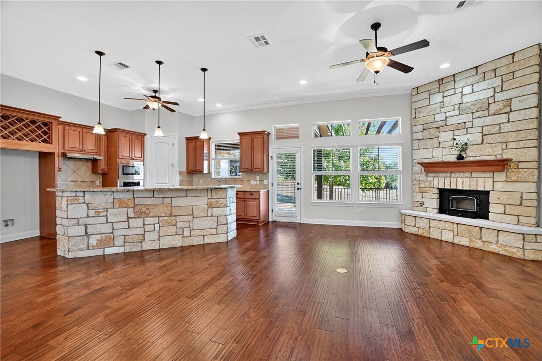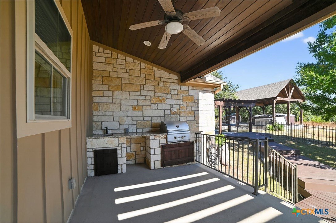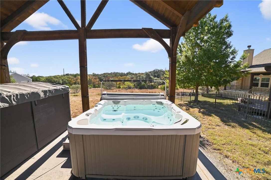 Best Kept Secret in the Hill Country. Custom Home, Guest House Casita, Metal Workshop, Huge Pavilion, Almost 5 Tree-Filled Acres. Welcome to 201 Thomas Ridge in Burnet, TX, a true Hill Country secret offering serenity, craftsmanship, and convenience just minutes from town. This beautiful custom 3-BED, 2-BA single-story home plus 1-BED, 1-BA guest house casita rests on 4.99 peaceful acres surrounded by mature oaks and native landscaping. Inside, enjoy 10’ ceilings, 8’ doors, crown molding, arches, hand-scraped hardwood floors, and granite counters throughout. The open plan offers seamless living where dining, living and kitchen meld into one. Featuring custom cabinetry, wine rack, tiered breakfast bar, large pantry, stainless steel appliances include glass cooktop, built-in oven, microwave, and dishwasher. Floor-to-ceiling stone fireplace with wood-burning insert and light-and-bright windows make the living room a cozy indoor retreat. The primary suite features a cathedral ceiling, bay window, and a spa-inspired ensuite with a corner soaking tub, tile walk-in shower, makeup counter, and a spacious Texas-sized closet. Step outside to a covered back porch and outdoor kitchen, or host guests in the 22x34 cedar pavilion with power and a hot tub—perfect for entertaining. The 30x46 Mueller steel workshop, featuring roll-up doors to drive-thru, is ideal for RV, boat, classic collector, or all the above. Plus, there’s a 10x12 storage shed, extended concrete drive, and fenced backyard. Impact-resistant shingles (2024), high-efficiency HVAC systems with air purification (2024), 2,800-gal tank for well, security system, and in-wall pest control. Electrical service is on hospital grid for added reliability. Located just 5 miles to Burnet, 18 mi. to Marble Falls, 30 mi. to Liberty Hill, and 60 mi. to Austin, this home combines quiet country living with nearby modern conveniences. Close to the five Highland Lakes for endless outdoor fun. See Notable Features list!