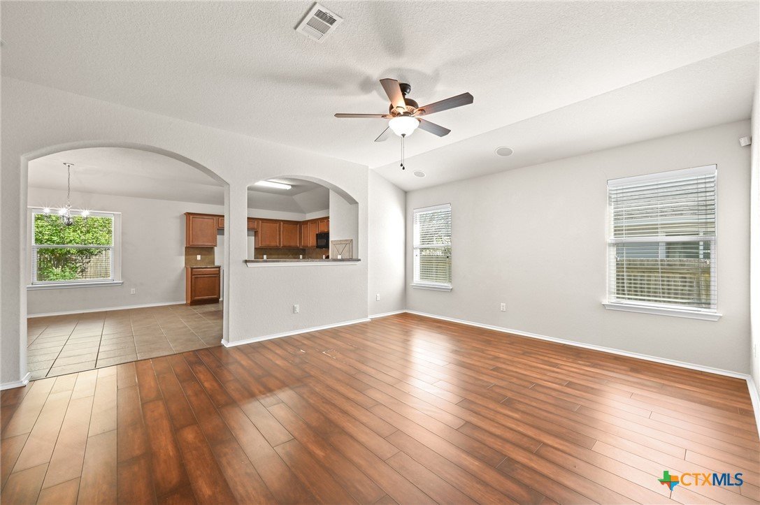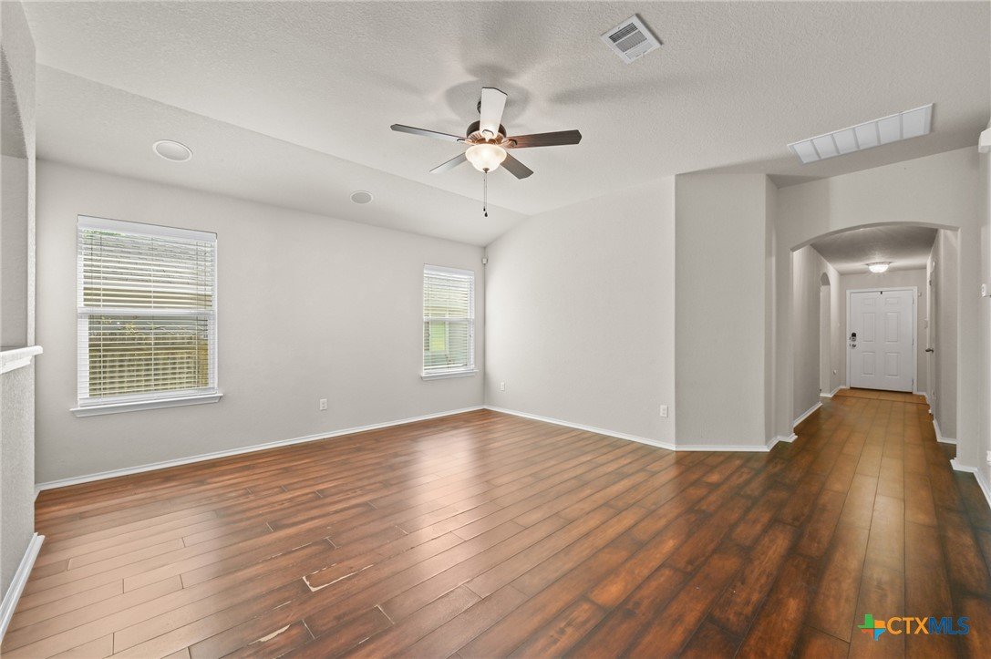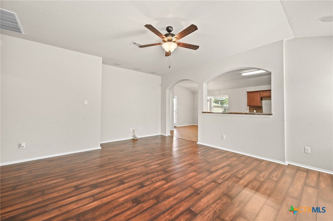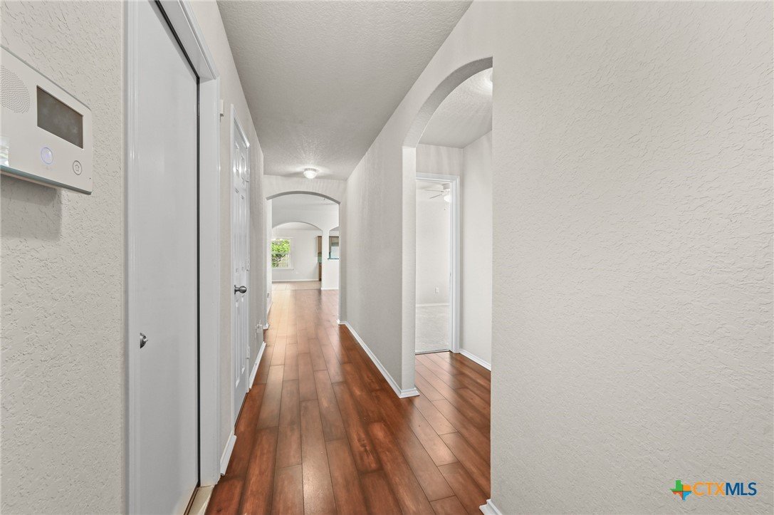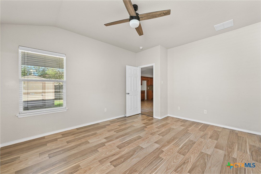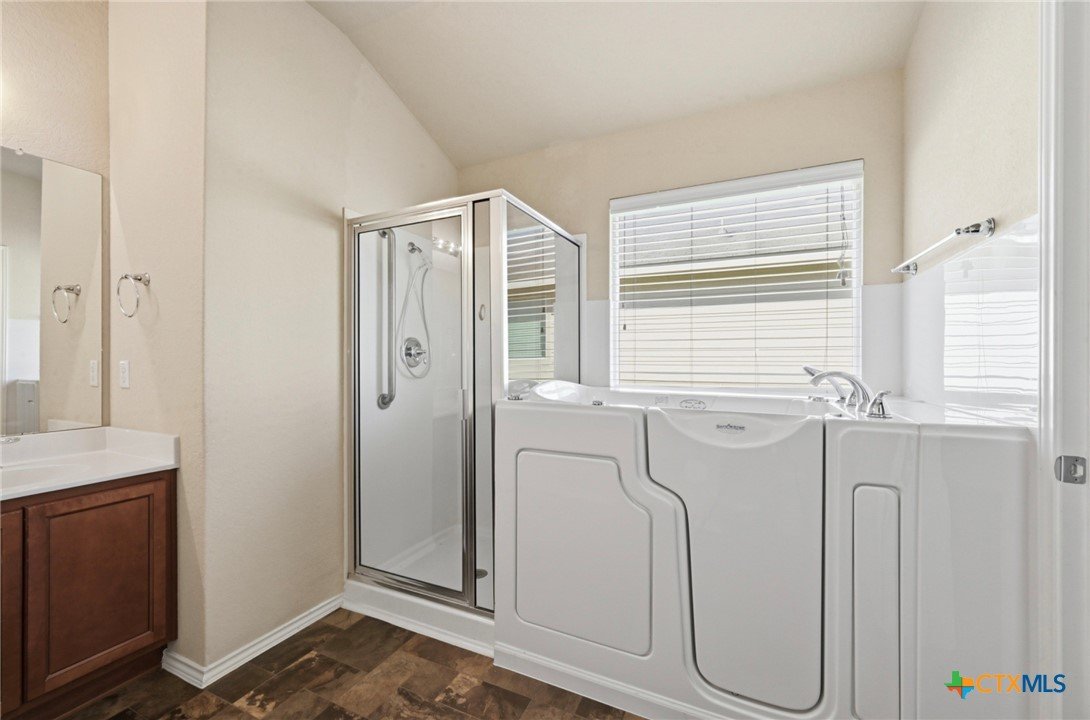 Welcome to 201 Wisteria Way in Cottonwood Creek! This inviting 4-bedroom, 2-bath home offers over 1,600 square feet of thoughtfully designed living space, just steps from Bowie Elementary and Seguin High School—talk about convenience that actually matters. Step inside to an open-concept layout with high ceilings and natural light that doesn’t quit. The split floor plan keeps the primary suite tucked away for privacy, while three additional bedrooms offer flexibility for family, guests, or that “I finally get a home office” moment. The kitchen is practical and functional, flowing easily into the main living area—perfect for everyday living or casual get-togethers. The oversized primary suite features updated vinyl plank flooring, double vanities, a spacious walk-in closet, and a walk-in soaking tub designed for comfort and accessibility. Outside, you’ll find mature oak trees that bring shade and character, a covered patio for laid-back evenings, and a backyard dotted with fruit trees and a storage shed for all your extras. There’s even a flagpole out front ready for your personal touch. Complete with a 2-car attached garage and located in an established neighborhood, this home delivers comfort, function, and location without the fuss.