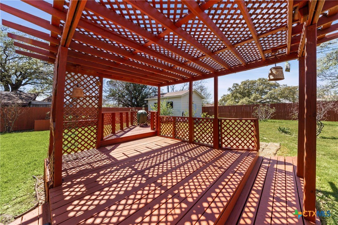 This home is built for relaxation and family entertainment with an ample yard and back patio area. Inside, in addition to 3 bedrooms and 2 bathrooms, there are two living areas giving extra space for family fun, a home office, personal gym, or a cozy guest suite, adapting to your needs. A library or game area supports developing young minds. The expansive living area has ample space, making it ideal for a growing family. Step outside onto the covered patio, where a serene view of the backyard unfolds, complete with a privacy fence and raised flower bed (or possible garden area). Here, a deck adorned with a charming pergola invites you to enjoy al fresco dining, tranquil afternoons or a relaxing time in the hot tub. Beyond the pergola, a sizeable outbuilding holds endless possibilities—be it for storage, a workshop, or an artistic studio. The vast backyard is a haven for entertainers, offering abundant space for barbecues, garden parties, or sun-drenched gatherings with loved ones. Within walking distance to an elementary school and public pool, this home is a harmonious blend of comfort and adaptability, perfect for those seeking convenience, extra space and a lovely backyard.