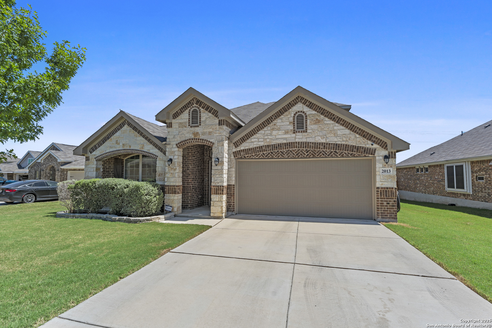 Offering $5,000 in seller concessions! Welcome to 2013 Carter Ln, a beautifully designed 2-story home in the desirable Voss Farms Community. With 4 bedrooms and 3.5 bathrooms, this stone-and-brick residence combines elegance, space, and quiet living, perfectly situated on a greenbelt-facing double cul-de-sac with minimal traffic and a peaceful atmosphere. Step into the elegant entryway and be greeted by soaring ceilings, natural light, and a warm, inviting layout. The main living area features a cozy fireplace and a striking wrought iron stair railing, while the formal dining room adds a touch of sophistication. The kitchen offers a center island with seating, ample cabinetry, and plenty of room to cook and gather. The primary suite is spacious and private, complete with its own bathroom featuring a garden tub, walk-in shower, and dual vanities. Each additional bedroom is generously sized, providing flexible living options. Outside, the fully fenced backyard includes a large deck, perfect for outdoor relaxation or entertaining under the trees. As a resident of Voss Farms, you'll enjoy access to two pools, a splash pad, park, charcoal grills, and a community center-all just minutes away!