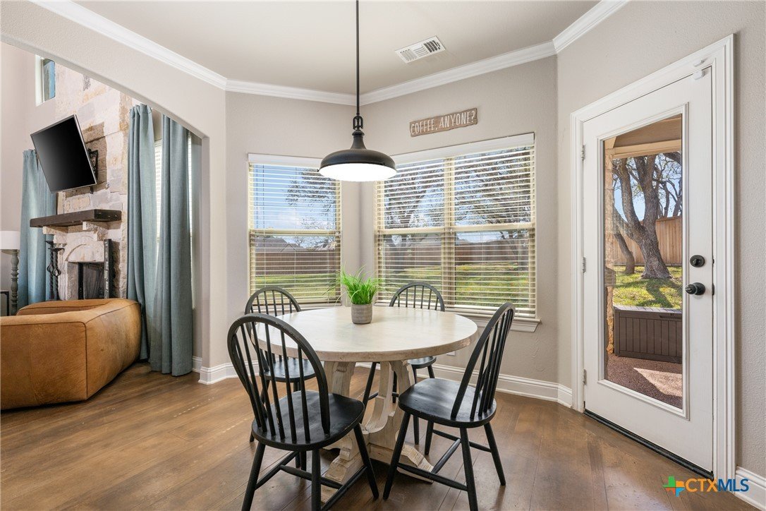 Check out this stunning two-story home nestled in the highly sought-after Salado Mills subdivision—where comfort, efficiency, and style come together effortlessly. With 4 spacious bedrooms and 2.5 beautifully designed bathrooms, this home is built for both everyday living and unforgettable entertaining. From the moment you step through the grand entrance, you're greeted by a warm, inviting fireplace that sets the tone for the cozy yet sophisticated atmosphere throughout. The gourmet kitchen is a chef’s dream, perfectly positioned to overlook the oversized dining area—ideal for family meals, holiday gatherings, or hosting friends. Built with spray foam insulation throughout, this home ensures year-round energy efficiency, keeping your heating and cooling costs low without sacrificing comfort. Located just minutes from Mill Creek and its picturesque golf course, you'll also enjoy the perks of a community swimming pool and park right in your own neighborhood. This is more than a house—it's a place where life happens, memories are made, and every detail has been thoughtfully designed with you in mind. Welcome home to Salado Mills.