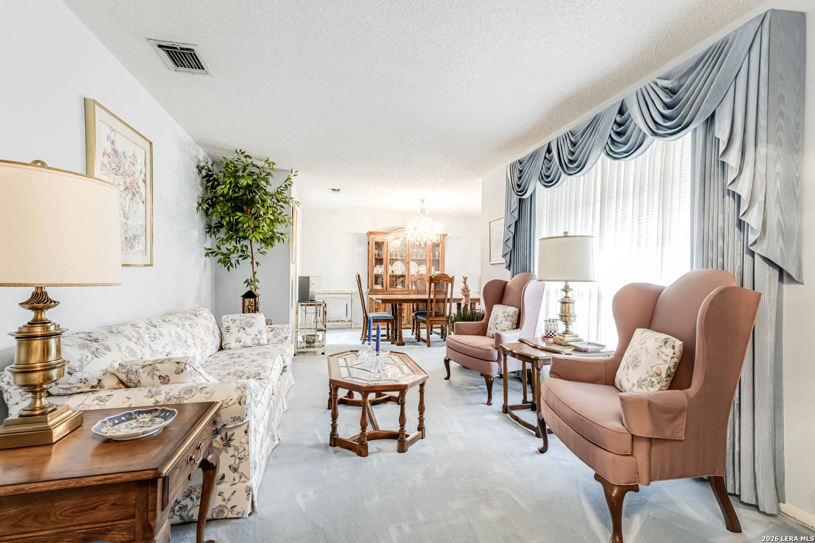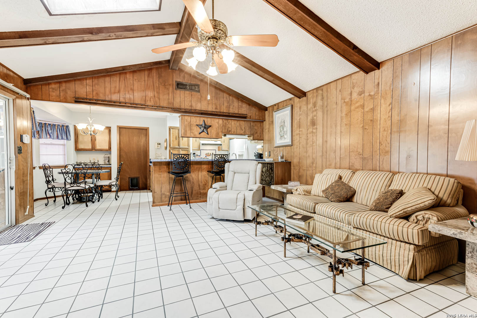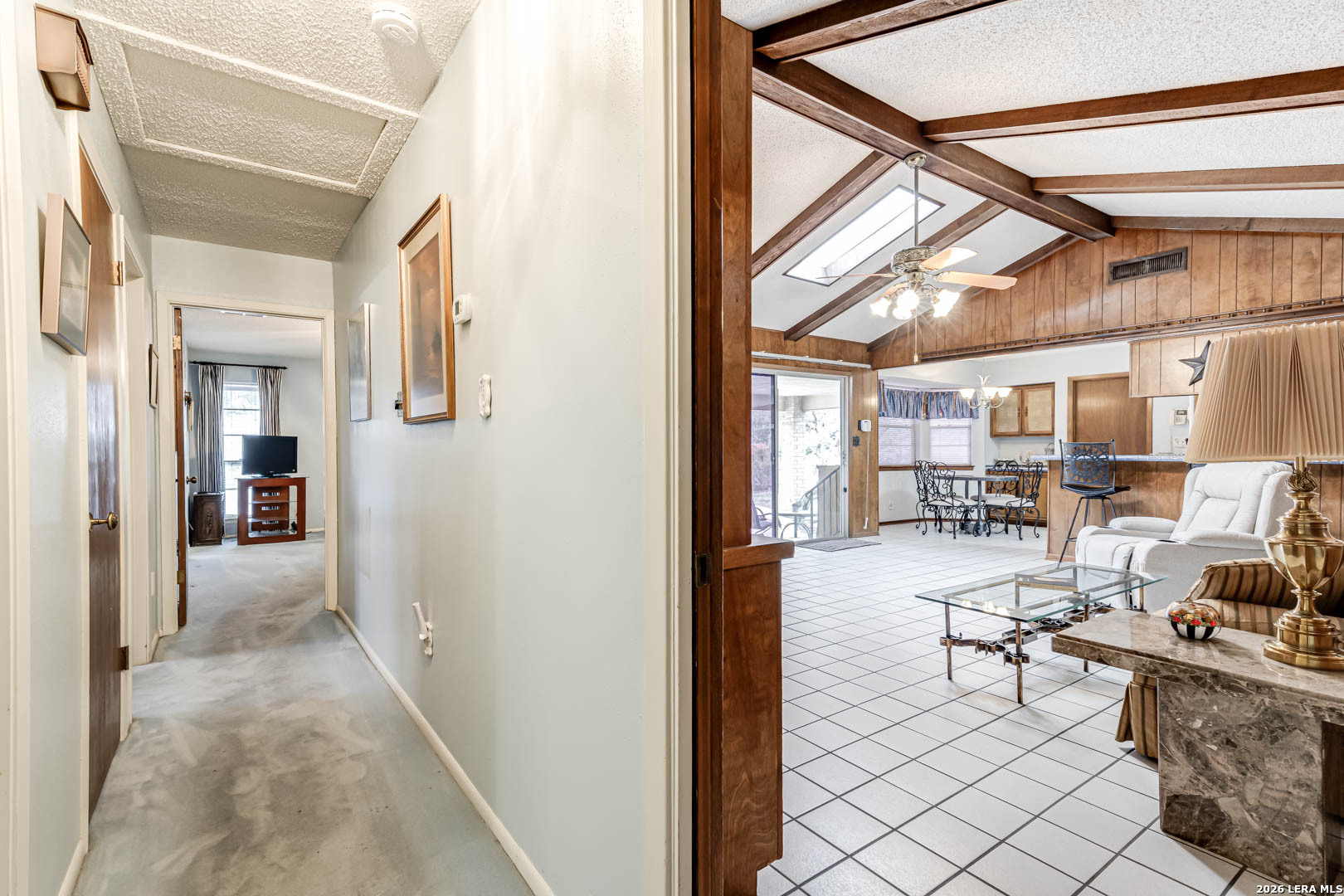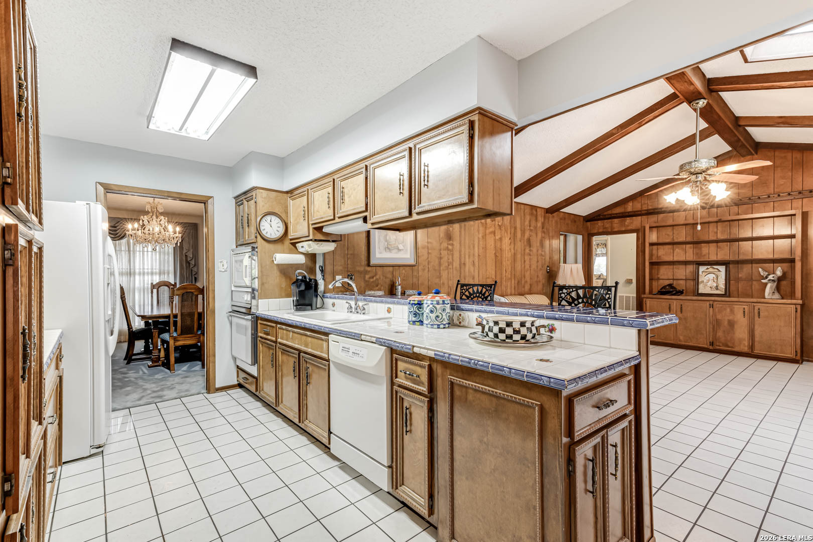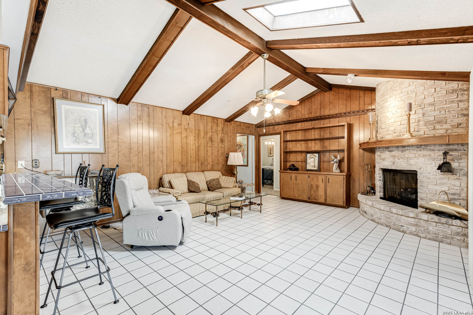 Nestled under mature trees in North San Antonio's Thousand Oaks community, this charming single-story home offers space, character, and endless potential. Inside, soaring ceilings with exposed beams and a floor-to-ceiling brick fireplace create a warm and inviting family room. With 4 bedrooms (or 3 plus an office) and 2 full baths, the secondary bedrooms allow flexibility for guests, hobbies, or a home office. The kitchen opens to the living and dining areas, provides abundant natural light, and offers generous cabinet space and a functional footprint ready for your modern updates. Step outside to your private backyard retreat, complete with a sparkling in-ground pool, covered patio, and mature trees, perfect for summer gatherings, weekend barbecues, or peaceful evenings at home. The A storage shed provides additional space for tools and outdoor equipment, while the two-car garage includes extra room for a workbench or added storage. Well-maintained and priced to allow for personalization and improvements, this home offers a great opportunity to customize in an established neighborhood with excellent schools and convenient access to major roadways, shopping, and dining.