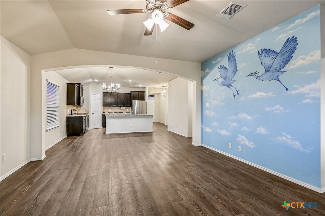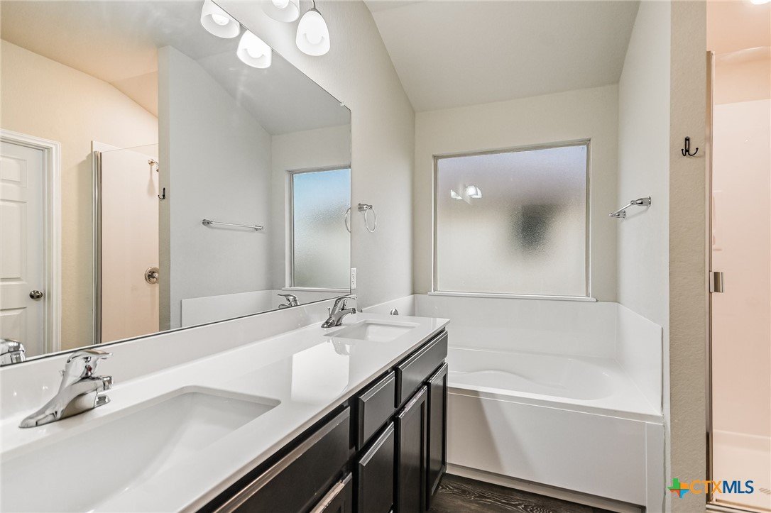 Welcome to this well-maintained single-story home in the desirable Creekside Hills community of Copperas Cove. This thoughtfully designed 4-bedroom, 2-bath home features an open-concept layout with a spacious living area that flows seamlessly into the kitchen, complete with granite countertops, a large island, and ample cabinet space—perfect for everyday living and entertaining. The private primary suite offers a relaxing retreat with dual vanities, a soaking tub, and separate shower. 3 additional bedrooms provide flexibility for your needs. Step outside to enjoy a covered patio and a backyard ideal for unwinding, with the added benefit of a north-facing orientation that helps reduce harsh afternoon sun—perfect for Texas evenings. Located in a quiet, well-kept neighborhood, residents enjoy access to a community pool—one of only two in all of Copperas Cove—making this a rare and valuable amenity for both homeowners and future resale appeal. Conveniently situated near Fort Cavazos, schools, and local amenities, this home offers comfort, functionality, and strong value in a growing area.