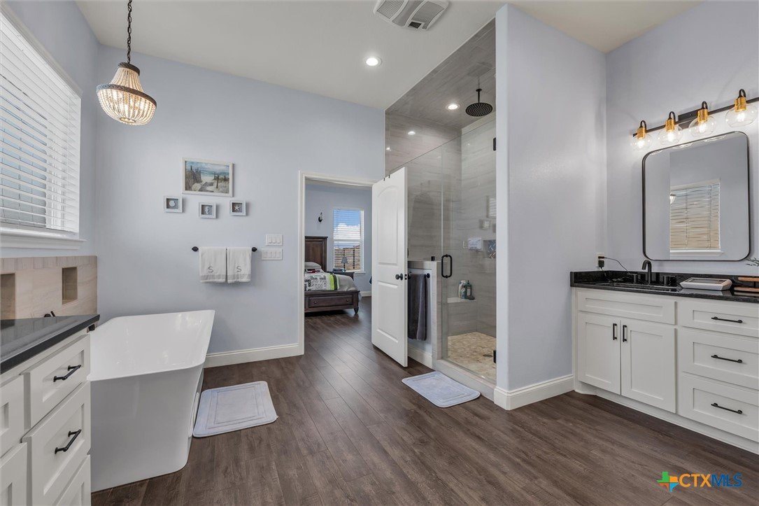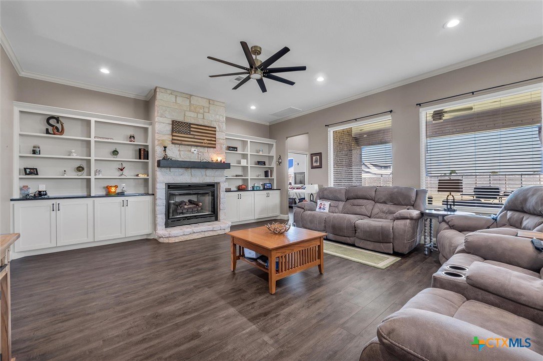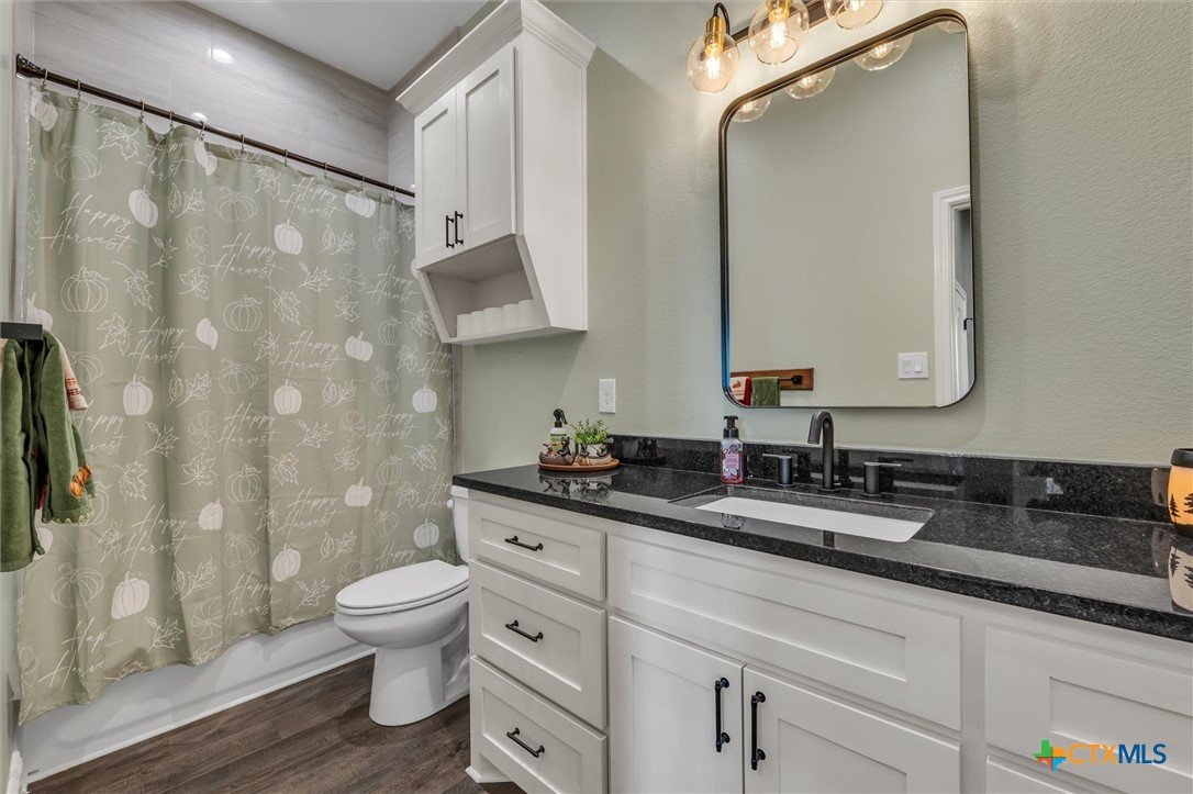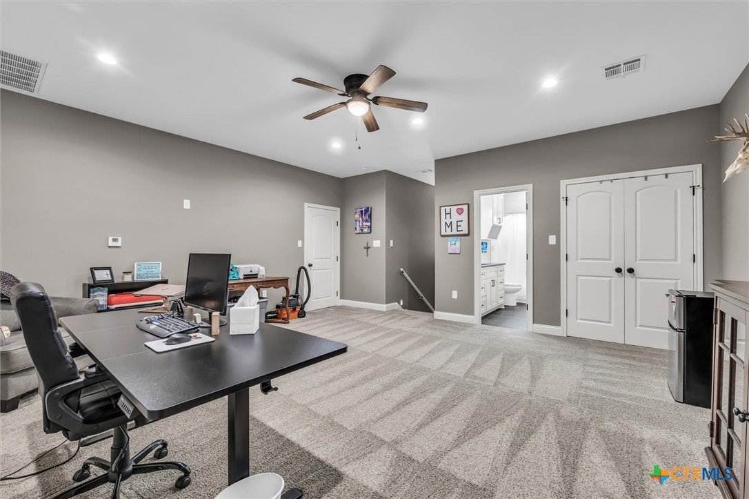 Come check out Cotton Ridge Addition in Moody, Texas! This beautiful two-story home, built in 2022, spans approximately 3,014 square feet and sits on a one-acre lot. With four bedrooms, three bathrooms and a extra room upstairs, this residence delivers modern comfort and plenty of space both inside and out. Inside to an inviting open concept living and dining area anchored by a gas fireplace, creating a warm gathering space for family and friends. The kitchen is designed for both functionality and style, showcasing an island, pantry, and electric appliances—perfect for meal prep and entertaining. The primary suite provides a true retreat with a garden tub, double shower, and dual vanities, blending relaxation and convenience. Upstairs, a spacious room with a full bathroom with flexibility as a game room, or guest suite, complete with closet storage. Other interior highlights include a utility room with built-in cabinetry, a separate laundry area, and energy-efficient systems throughout. Outside, enjoy brick and stone veneer construction, a covered patio for outdoor enjoyment, wood fencing for privacy, and an attached two-car garage. The 20’ x 30’ workshop with electricity adds even more versatility for hobbies, storage, or projects. The home is served by city water, co-op electric, and an aerobic septic system, all within the Moody ISD. If you are looking for quick access to Temple or Waco it's only a 15 minutes in either direction, with a short drive to I-35 or just few minutes to FM 317. Schedule your showing today!