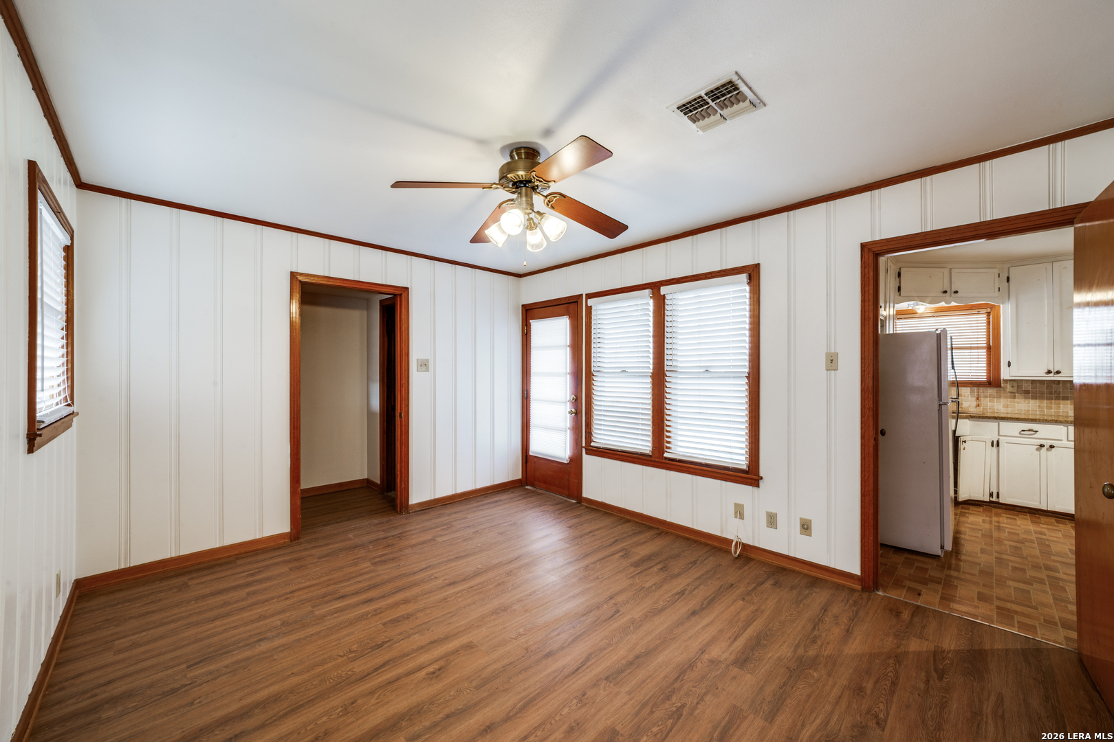 Beautiful Mid-Century 3-Bedroom, 2-Bathroom Single Story Home in Dellview Neighborhood. Great Location with Easy Access to I-10 & I-410, Minutes to Downtown, Airport, Major Employers, & More. Charming Curb Appeal on Large Corner Lot with Inviting Covered Front Porch. Enter to Spacious Living Area with Rich Hardwood Flooring & Fresh Neutral Paint. Living Area open to Dining Area with Outdoor Access, Adjacent to Well-Equipped Kitchen with Ample Cabinet Space. Flexible Floorplan, with 2 Full Bedrooms & Bathroom along Hallway, Large Primary Suite with Full Bathroom Could Serve as Home Office or Secondary Living Area. Charming, Vintage Bathroom Finishes in Nice Condition, One with Walk-In Shower & Other with Tub/Shower. One-Car Attached Garage, Side Entry with Additional Pad Parking Area. Manageable Backyard & Patio Area with New Privacy Fence. Washer/Dryer Connections in Garage. Pets Case-by-Case, Subject to Landlord Approval. North East ISD Schools.