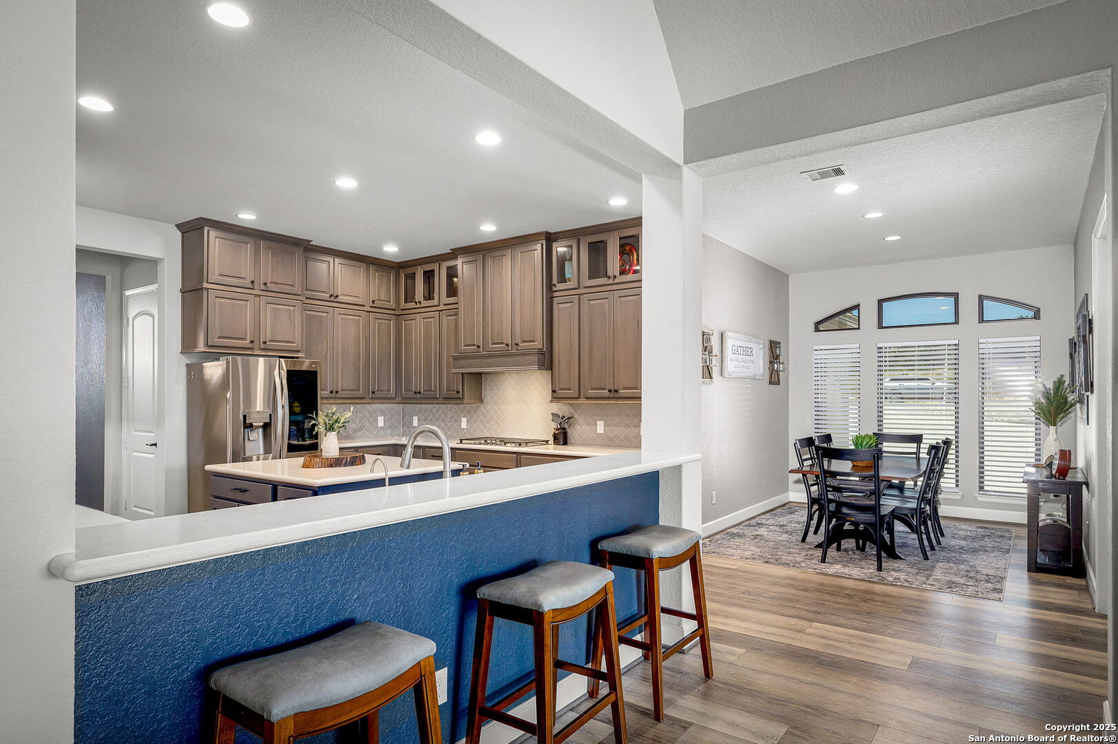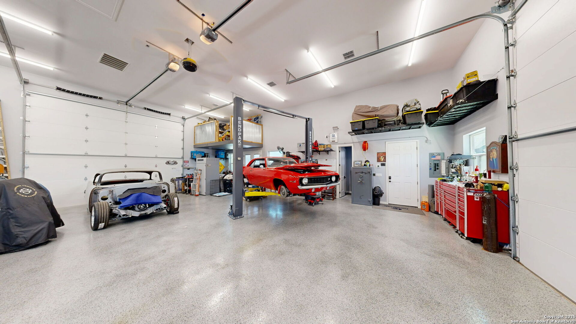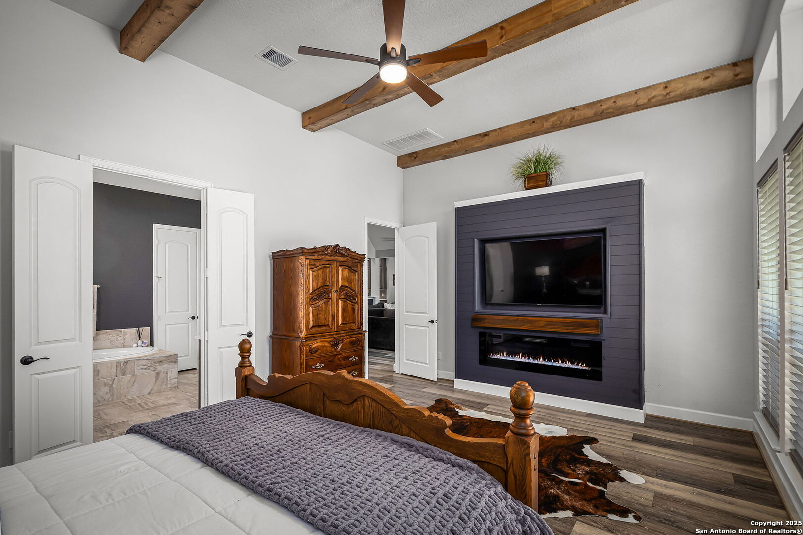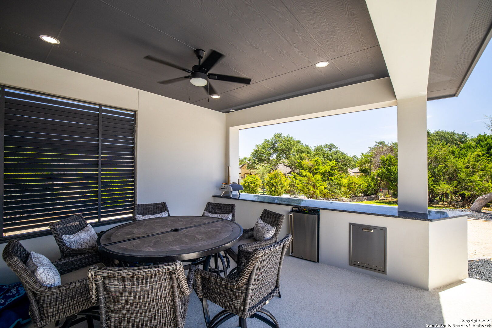 Welcome to an extraordinary Hill Country estate in the heart of the coveted Vintage Oaks community of New Braunfels, Texas-where luxury meets lifestyle and every inch is built for unforgettable entertaining. Spanning 3,856 square feet, this custom-designed residence is a true showpiece of refined design, comfort, and high-end functionality, set on a beautifully manicured lot that offers both privacy and grandeur. From the moment you arrive, you'll be captivated by the striking curb appeal, enhanced by warm stone accents, wooden beams, and inviting outdoor spaces that hint at the resort-style experience waiting inside. Step through the grand entryway and into a spacious open-concept layout filled with natural light, soaring ceilings, and exquisite finishes throughout. Rich wooden beams and not one, but two fireplaces bring warmth and architectural elegance, while a separate dining room and dedicated office provide ideal spaces for work, celebration, and everything in between. Designed with the entertainer in mind, the chef's kitchen is a culinary dream. Outfitted with beautiful appliances, gorgeous cabinetry, stone countertops, a spacious island, and thoughtful storage, it effortlessly blends form and function. Whether you're preparing an intimate dinner or hosting a festive gathering, this space delivers the style and flow to make it all seamless. The layout includes four spacious bedrooms, three full bathrooms, and two half baths, perfectly designed to accommodate guests while maintaining personal comfort. The primary suite is a retreat unto itself, offering spa-like serenity with an expansive ensuite bathroom, walk-in shower, dual vanities, and large walk-in closet. A dedicated media room provides the ultimate spot for movie nights or game day, rounding out the luxurious indoor experience. But the real magic begins when you step outside. Welcome to your personal backyard paradise-a true entertainer's dream. At the heart of it all is the resort-style pool, complete with swim-up barstools, a sun ledge, and an adjacent spa, all surrounded by thoughtfully designed multiple patios, a gazebo, and lush landscaping. The outdoor kitchen is ready for Texas-sized barbecues, complete with ample prep space and bar seating. Whether you're relaxing in the sun or hosting under the stars, this space offers the perfect balance of leisure and luxury. Car enthusiasts, hobbyists, or RV travelers will love the incredible 1,512-square-foot drive-through RV garage and workshop-a rare and coveted feature that adds significant value and versatility. In addition to that, you'll enjoy the convenience of a 4-car attached garage, giving you more than enough space for vehicles, gear, and storage. Situated in one of New Braunfels' most desirable neighborhoods, this home gives you access to all the award-winning Vintage Oaks amenities-resort-style pools, a state-of-the-art fitness center, sports courts, scenic nature trails, and a vibrant social calendar that makes this community feel like home the moment you arrive. Whether you're enjoying a quiet morning coffee under the patio beams, gathering around the pool for sunset cocktails, or simply soaking in the tranquil Hill Country setting, this one-of-a-kind home offers a lifestyle unlike any other. Schedule your private showing today and experience what it means to live, entertain, and unwind in true Hill Country luxury.