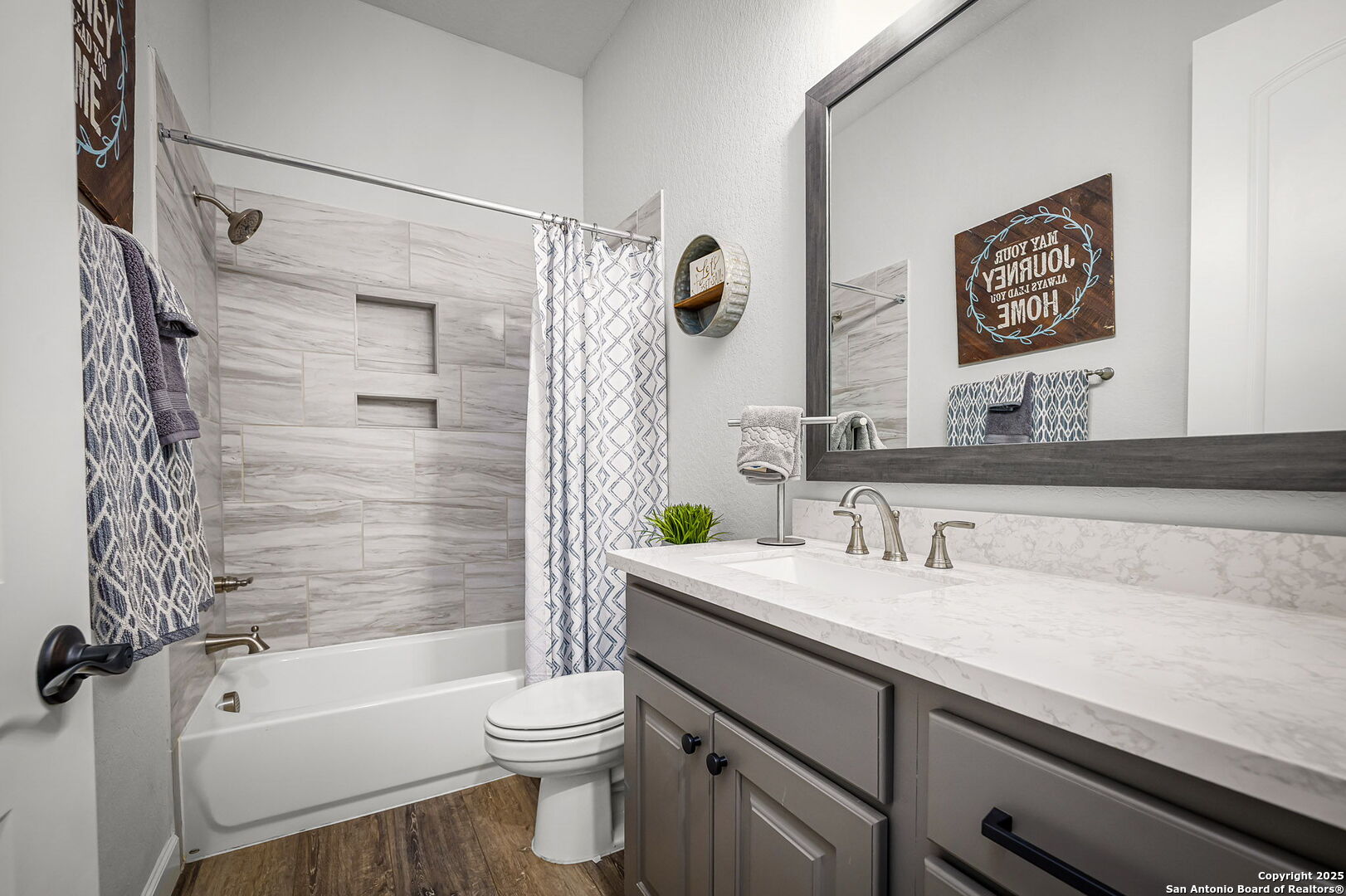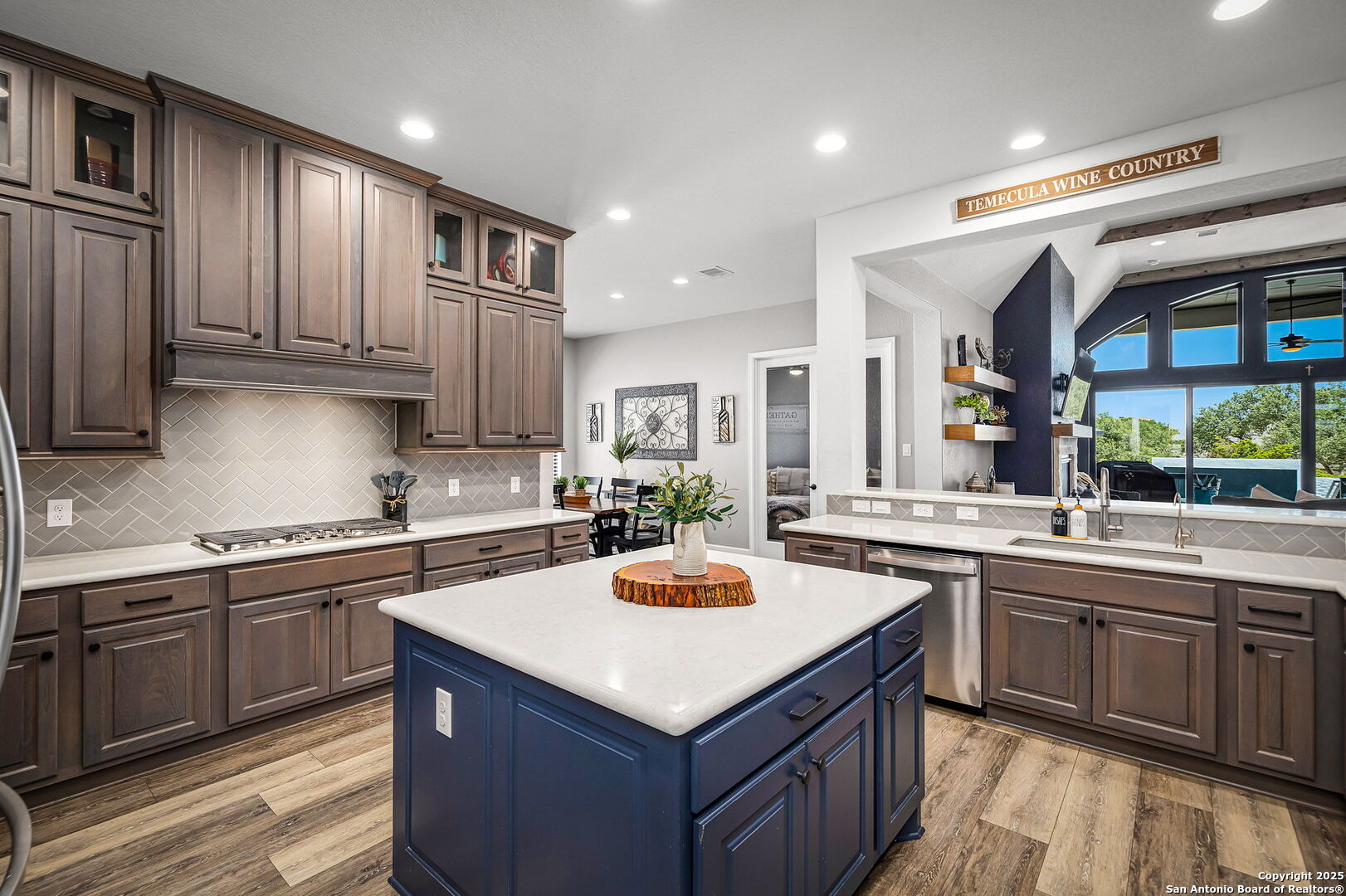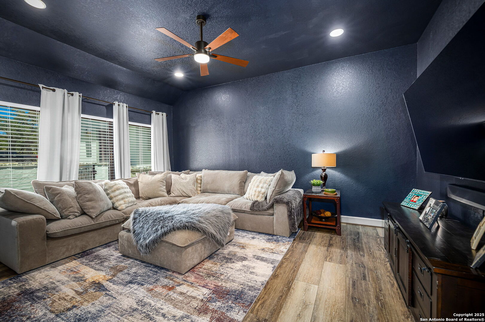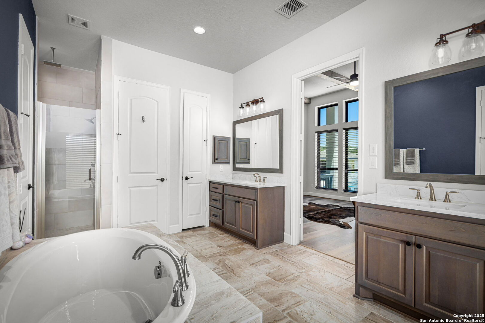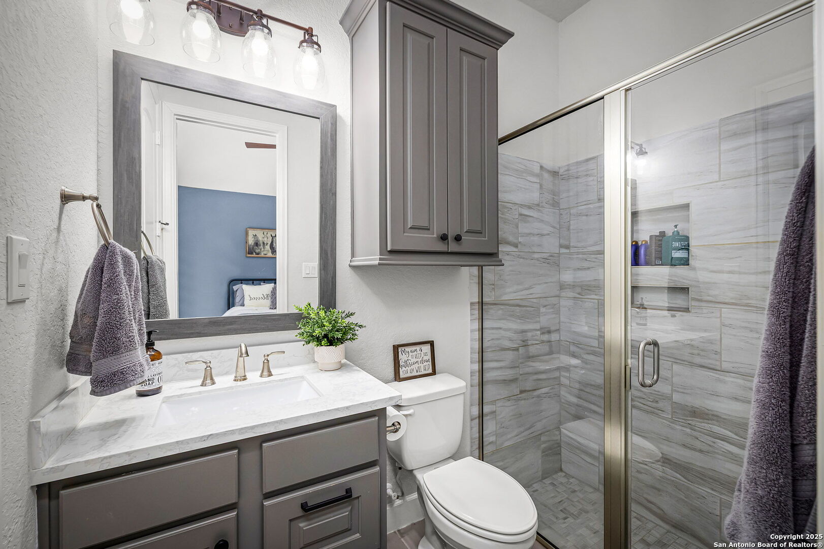 Welcome to an extraordinary Hill Country estate in the heart of the coveted Vintage Oaks community of New Braunfels, Texas-where luxury meets lifestyle and every inch is built for unforgettable entertaining. Spanning 3,856 square feet, this custom-designed residence is a true showpiece of refined design, comfort, and high-end functionality, set on a beautifully manicured lot that offers both privacy and grandeur. From the moment you arrive, you'll be captivated by the striking curb appeal, enhanced by warm stone accents, wooden beams, and inviting outdoor spaces that hint at the resort-style experience waiting inside. Step through the grand entryway and into a spacious open-concept layout filled with natural light, soaring ceilings, and exquisite finishes throughout. Rich wooden beams and not one, but two fireplaces bring warmth and architectural elegance, while a separate dining room and dedicated office provide ideal spaces for work, celebration, and everything in between. Designed with the entertainer in mind, the chef's kitchen is a culinary dream. Outfitted with beautiful appliances, gorgeous cabinetry, stone countertops, a spacious island, and thoughtful storage, it effortlessly blends form and function. Whether you're preparing an intimate dinner or hosting a festive gathering, this space delivers the style and flow to make it all seamless. The layout includes four spacious bedrooms, three full bathrooms, and two half baths, perfectly designed to accommodate guests while maintaining personal comfort. The primary suite is a retreat unto itself, offering spa-like serenity with an expansive ensuite bathroom, walk-in shower, dual vanities, and large walk-in closet. A dedicated media room provides the ultimate spot for movie nights or game day, rounding out the luxurious indoor experience. But the real magic begins when you step outside. Welcome to your personal backyard paradise-a true entertainer's dream. At the heart of it all is the resort-style pool, complete with swim-up barstools, a sun ledge, and an adjacent spa, all surrounded by thoughtfully designed multiple patios, a gazebo, and lush landscaping. The outdoor kitchen is ready for Texas-sized barbecues, complete with ample prep space and bar seating. Whether you're relaxing in the sun or hosting under the stars, this space offers the perfect balance of leisure and luxury. Car enthusiasts, hobbyists, or RV travelers will love the incredible 1,512-square-foot drive-through RV garage and workshop-a rare and coveted feature that adds significant value and versatility. In addition to that, you'll enjoy the convenience of a 4-car attached garage, giving you more than enough space for vehicles, gear, and storage. Situated in one of New Braunfels' most desirable neighborhoods, this home gives you access to all the award-winning Vintage Oaks amenities-resort-style pools, a state-of-the-art fitness center, sports courts, scenic nature trails, and a vibrant social calendar that makes this community feel like home the moment you arrive. Whether you're enjoying a quiet morning coffee under the patio beams, gathering around the pool for sunset cocktails, or simply soaking in the tranquil Hill Country setting, this one-of-a-kind home offers a lifestyle unlike any other. Schedule your private showing today and experience what it means to live, entertain, and unwind in true Hill Country luxury.