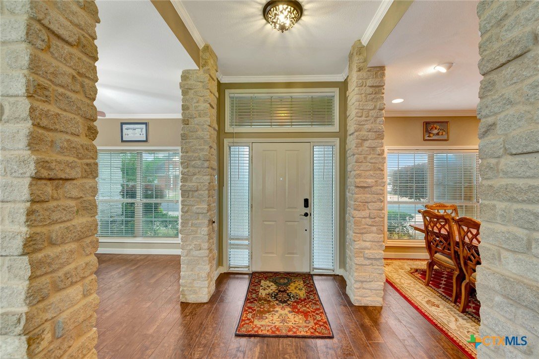 Welcome home to 204 Crosswind Drive 4-bedroom, 2-bathroom residence where thoughtful design, modern security, and everyday comfort come together seamlessly. Curb appeal sets the tone from the start, with lush landscaping and a sweeping U-shaped driveway that offers generous guest parking and a grand arrival every time. Inside, warm vinyl plank flooring flows throughout the home, creating a cohesive and low-maintenance foundation for daily life. Two flexible dining areas provide the perfect backdrop for everything from casual family dinners to holiday entertaining. At the heart of the home, the remodeled kitchen impresses with refinished cabinetry, elegant countertops, double ovens, a gas range, and a large walk-in pantry — a dream setup for the home chef and busy household alike. Peace of mind comes standard here. The home features a Vivint Smart Home Alarm System and Blink exterior security cameras for 24/7 property monitoring, plus a full irrigation system to keep the yard pristine year-round. Step outside to a cozy covered patio and a fully fenced backyard — a private retreat ideal for relaxing evenings and weekend gatherings. Nestled in a quiet, established neighborhood just minutes from local shops, dining, and schools, this move-in ready gem won't last long. Schedule your private showing today.