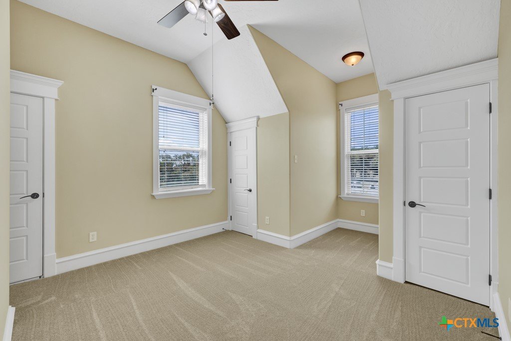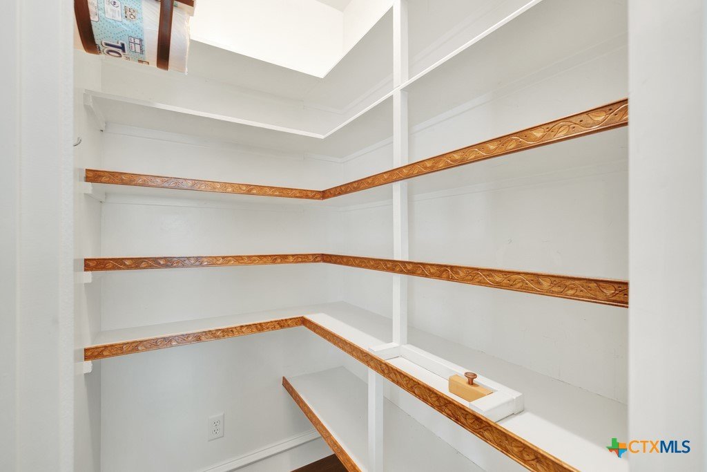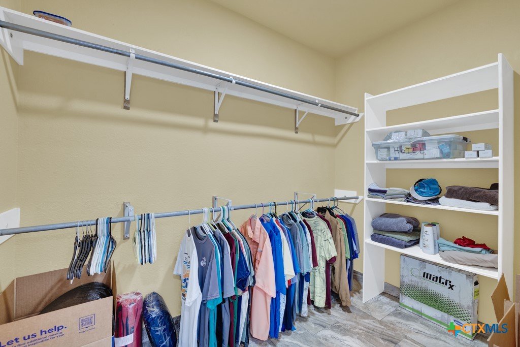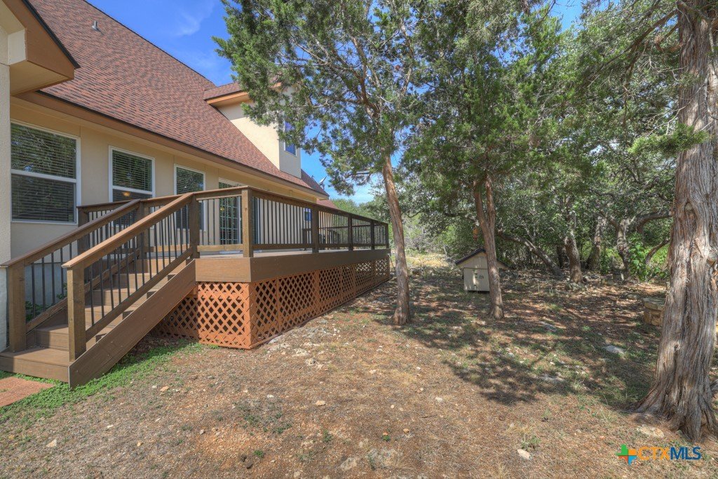 Nestled in the heart of the Texas Hill Country, a welcoming covered front porch leads you into this lovely 4-bedroom, 2.5-bath home that combines timeless craftsmanship with modern convenience. Designed with both comfort and accessibility in mind, the home features a spacious primary suite on the main floor, complete with a double vanity, whirlpool tub, and spacious walk-in shower with dual showerheads. An exterior door from the suite opens to a private ramp, offering easy outdoor access without compromising the home's elegant design. Inside custom cabinetry, built-ins, and exquisite trim work throughout give this home character. Custom cabinets, a large granite kitchen island and double ovens are ready for entertaining. The open living area has soaring ceilings, hardwood floors, and a see-through fireplace that creates a cozy yet refined atmosphere. The main level also includes a formal dining or living room and a study with French doors when you enter the home. A curved staircase leads to three additional bedrooms with brand new carpet, a large bathroom w/double vanity, and a versatile extra room above the garage. An oversized two-car garage w/built-in cabinets and work benches plus an air conditioned workshop has all the storage you need. Additional highlights include 2x6 exterior walls, radiant barrier roofing, 80-gallon water heater, and TREX composite decking on the back patio. There are two fruit trees plus a shady backyard offers both privacy & potential, ready to be transformed into your ideal outdoor retreat. River Chase amenities: 2 parks, a 58-acre park on Guadalupe River w/pavilion, hiking trails, camping grounds, and sports courts, plus a 32-acre clubhouse park w/pools, fitness center, walking trails, tennis courts, disc golf, fishing pond, & Veteran's garden. Minutes to Gruene, restaurants, shopping, music venues, theatres, and health care, and convenient to both Austin & San Antonio.