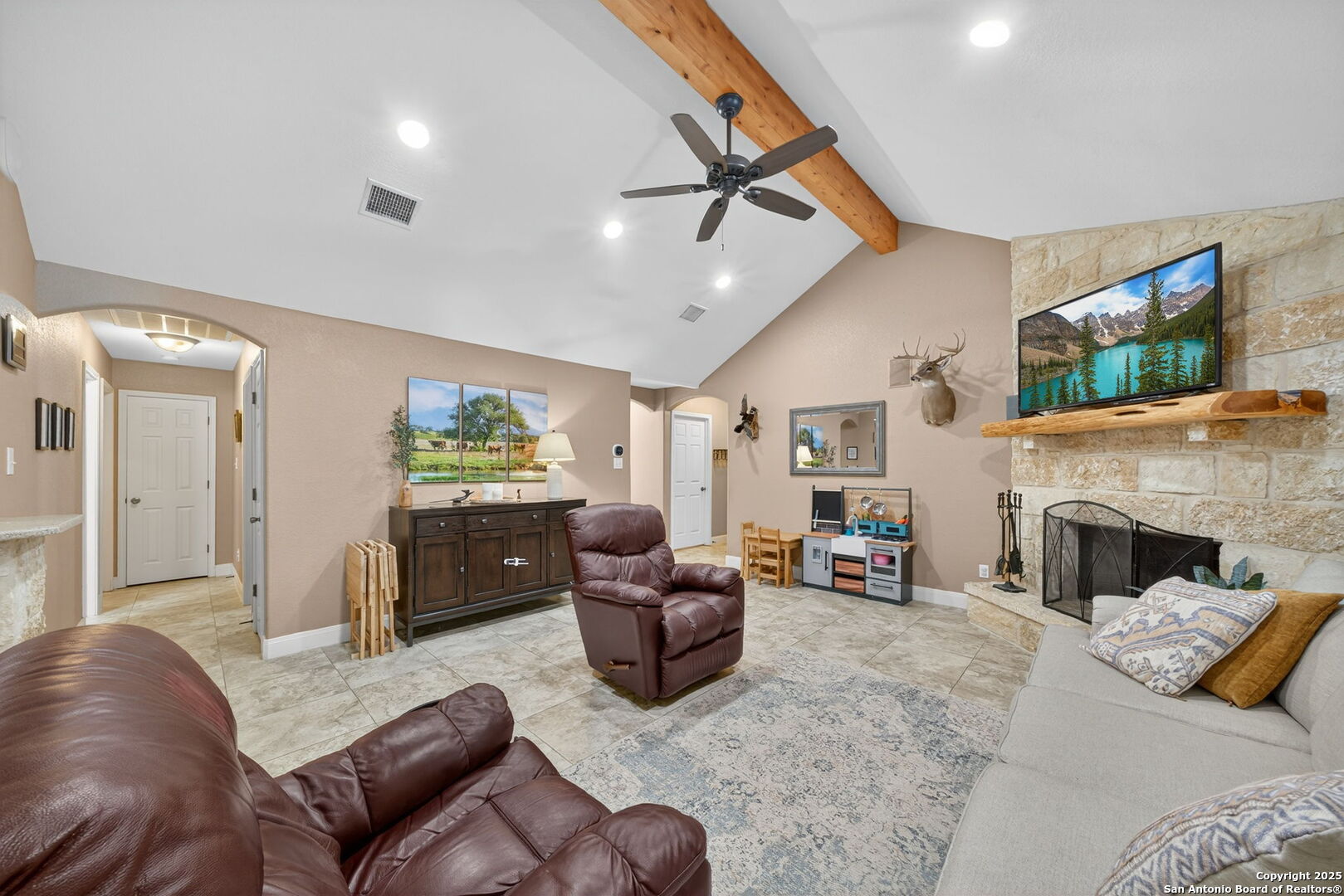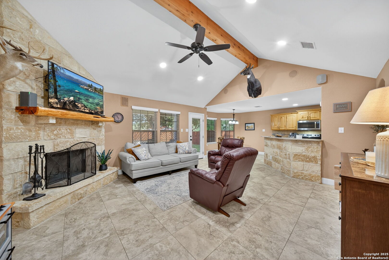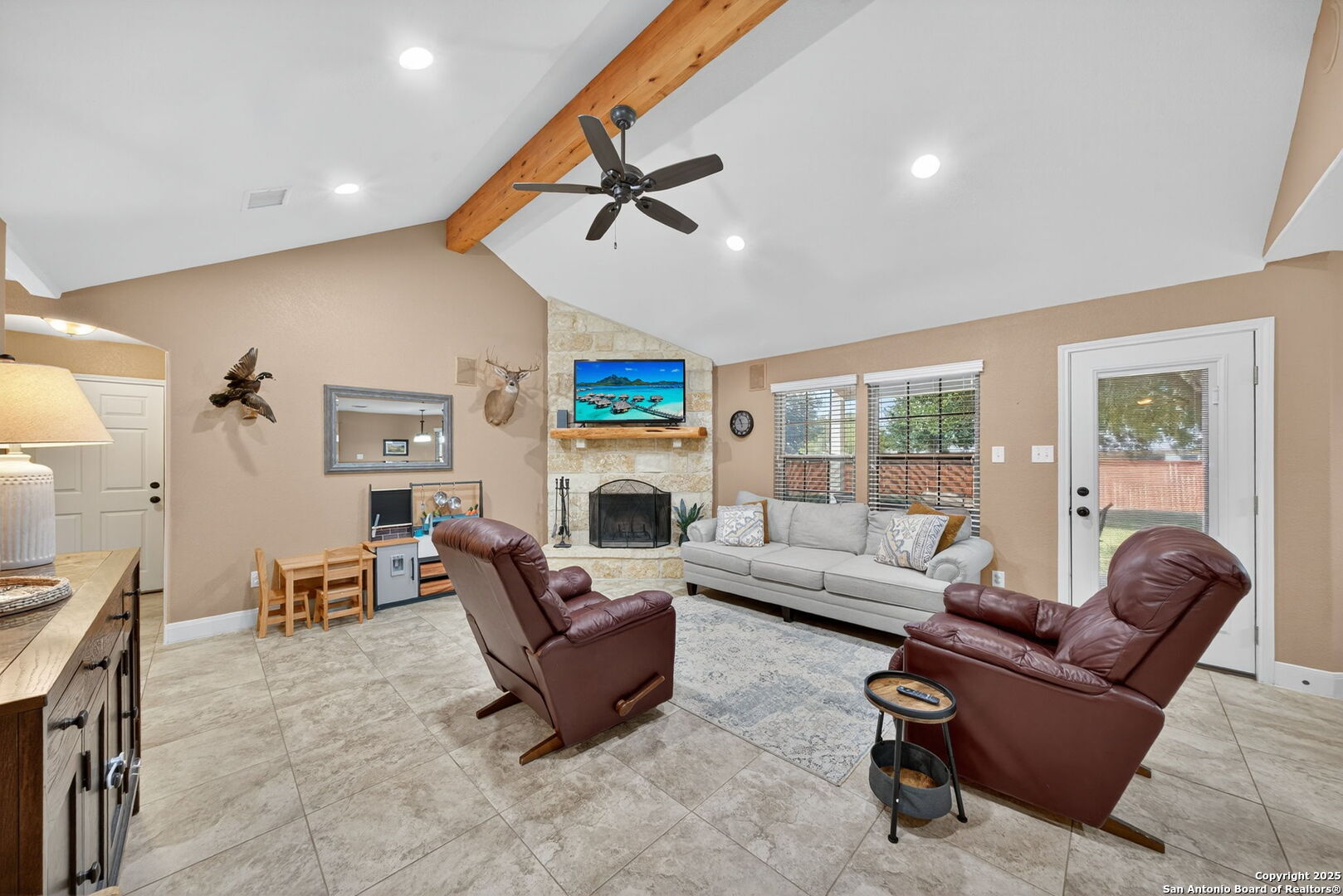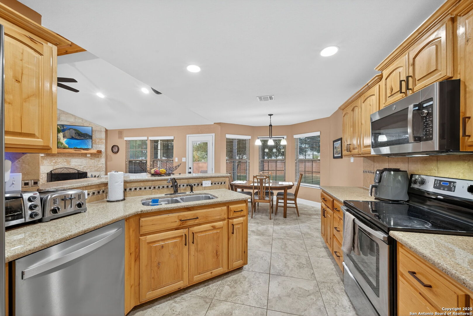 Beautiful 3 bed 2 bath home nestled on a culdesac in the desirable and limited La Parita Neighborhood. This Home Boasts high vaulted ceilings, large rocked wood burning fireplace, oversized tile and vinyl flooring throughout. Granite Countertops in kitchen with recently installed stainless steel appliances, double vanity and double walk-in closets, large soaker tub, tiled walk-in shower in primary bath. Stepping outside you'll find a manicured lawn, multiple mature trees, extended and covered back and front patio, newly stained privacy fence, solar screens, and fresh exterior paint. Come see how this house can become your home.