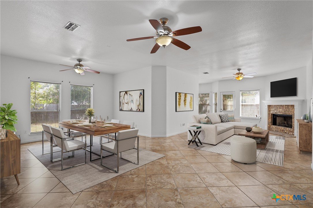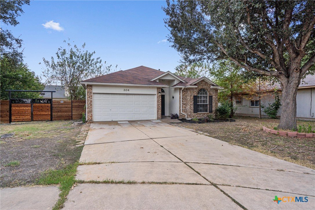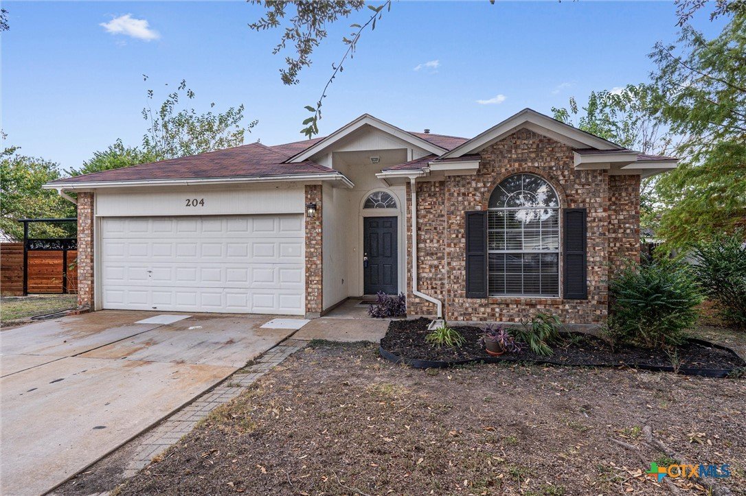 Practical and conveniently located, this move-in ready home is tucked away in a quiet cul-de-sac in the Clarks Crossing neighborhood of Hutto, offering comfort, functionality, and the added convenience of no HOA! Recent updates provide peace of mind, including a new HVAC system installed in 2021 with a transferable service contract, and a foundation repair in 2025 with a transferable warranty. The inviting curb appeal is enhanced by a mature front yard tree, while the 2-car garage is equipped with a 240V outlet, perfect for EV charging. Inside, an open floor plan welcomes you with expansive windows that flood the home with natural light. The spacious living area is anchored by a cozy brick fireplace, while the kitchen offers laminate countertops, timeless white cabinetry with pull-out drawers, stainless steel appliances, a pantry, and a breakfast nook framed by a charming bay window. A nearby dining area can also serve as a versatile flex space. The primary suite is a retreat, complete with its own bay window and an ensuite bath featuring dual vanities, a soaking tub, a separate shower, and a walk-in closet, Two additional bedrooms, each with its own closet, provide flexibility for guests, office space, or hobbies, sharing a well-appointed full bath. Outdoors, the large fenced backyard is perfect for entertaining or relaxing, with a patio and a storage shed for added convenience. This prime location offers walking distance to the elementary school, along with easy access to major highways including US 79, TX 130, I-35, and State Hwy 95. Nearby shopping, dining, and recreational options make everyday living convenient and enjoyable.