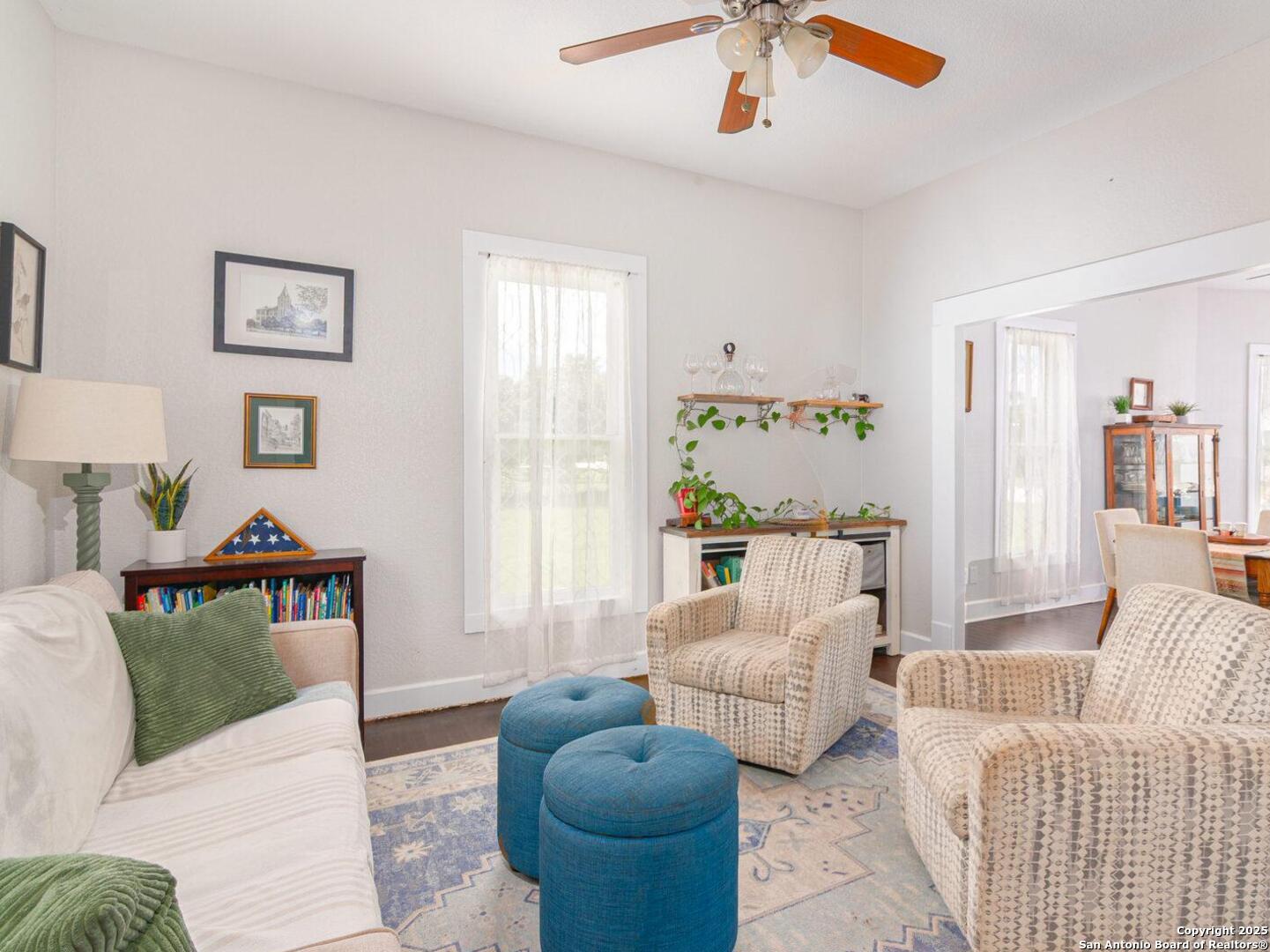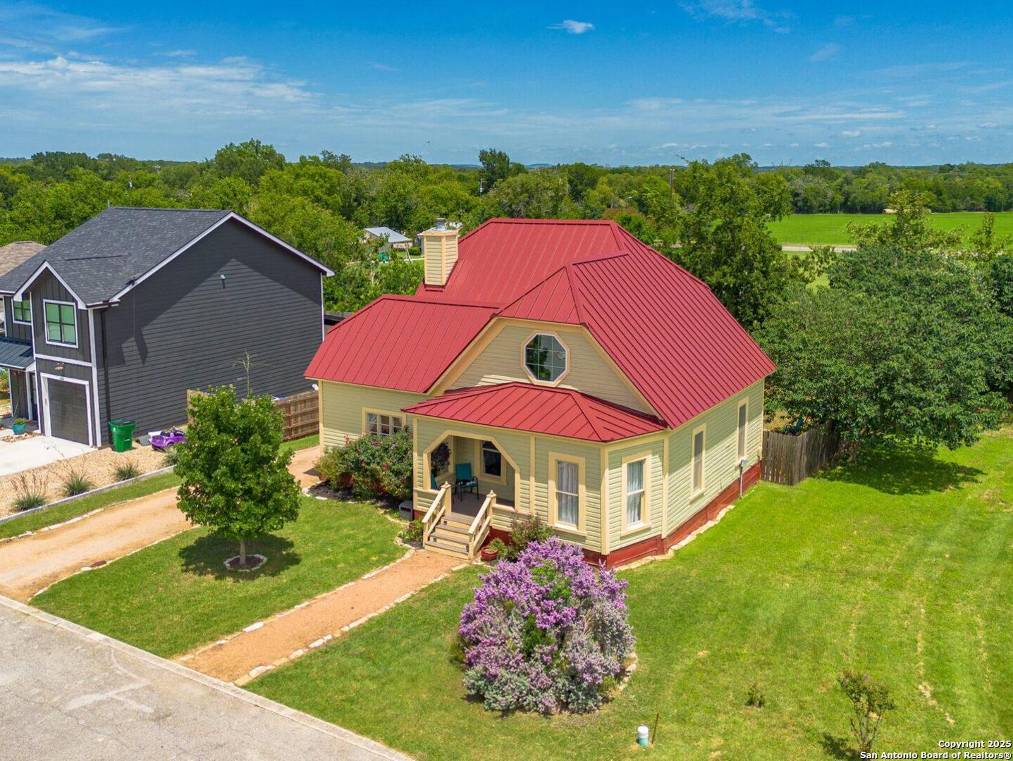 Renovated 3-bed, 2-bath + bonus room historic 1920s home that was once the Blanco Library. Enjoy Hill-Country living with the benefits of being in-town.The home is in charming Calico Meadows cul-de-sac neighborhood and is just blocks to the Blanco State Park, downtown, and Blanco schools. Well-maintained home, with recent updates in the last two years: standing seam roof; siding replaced along front and back of house; remodeled upstairs bath; new Trex front and back porch. Plenty of storage. Laundry and mudroom off the kitchen.